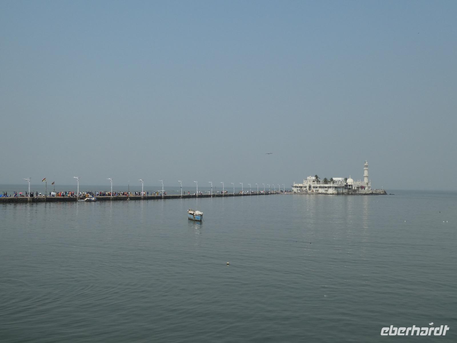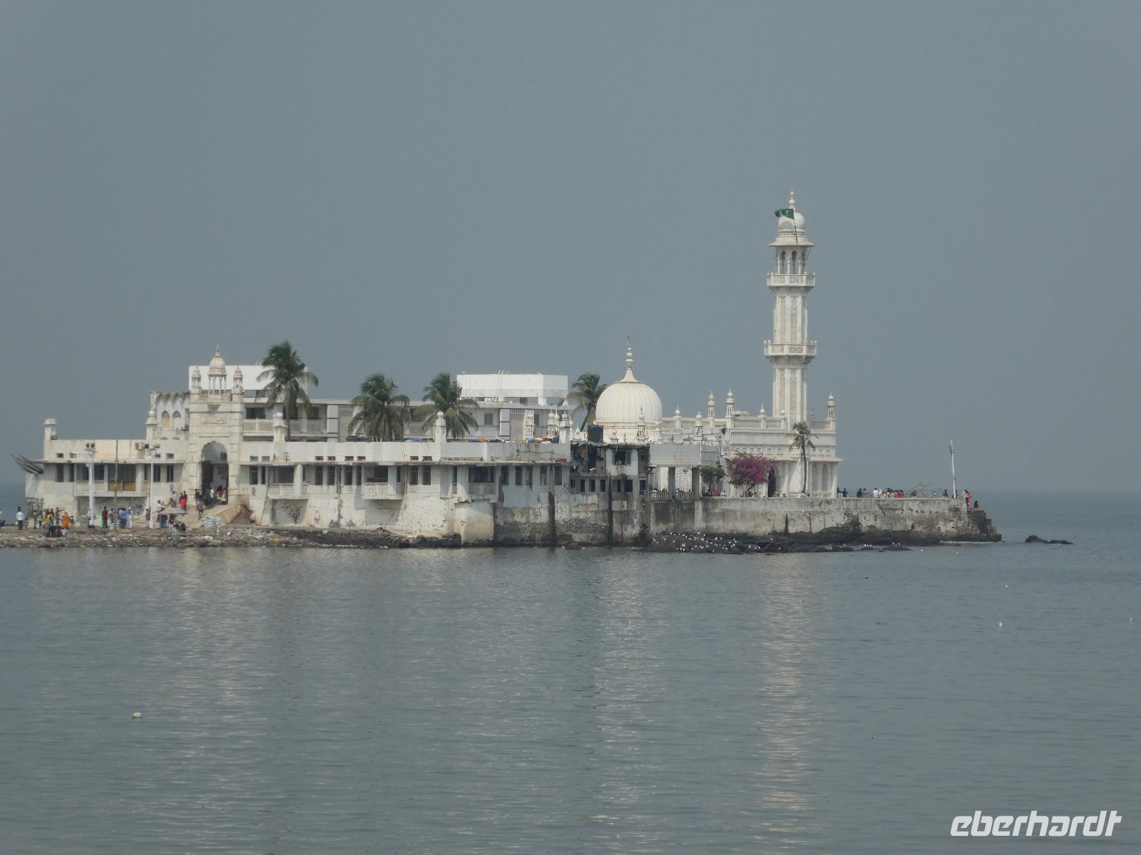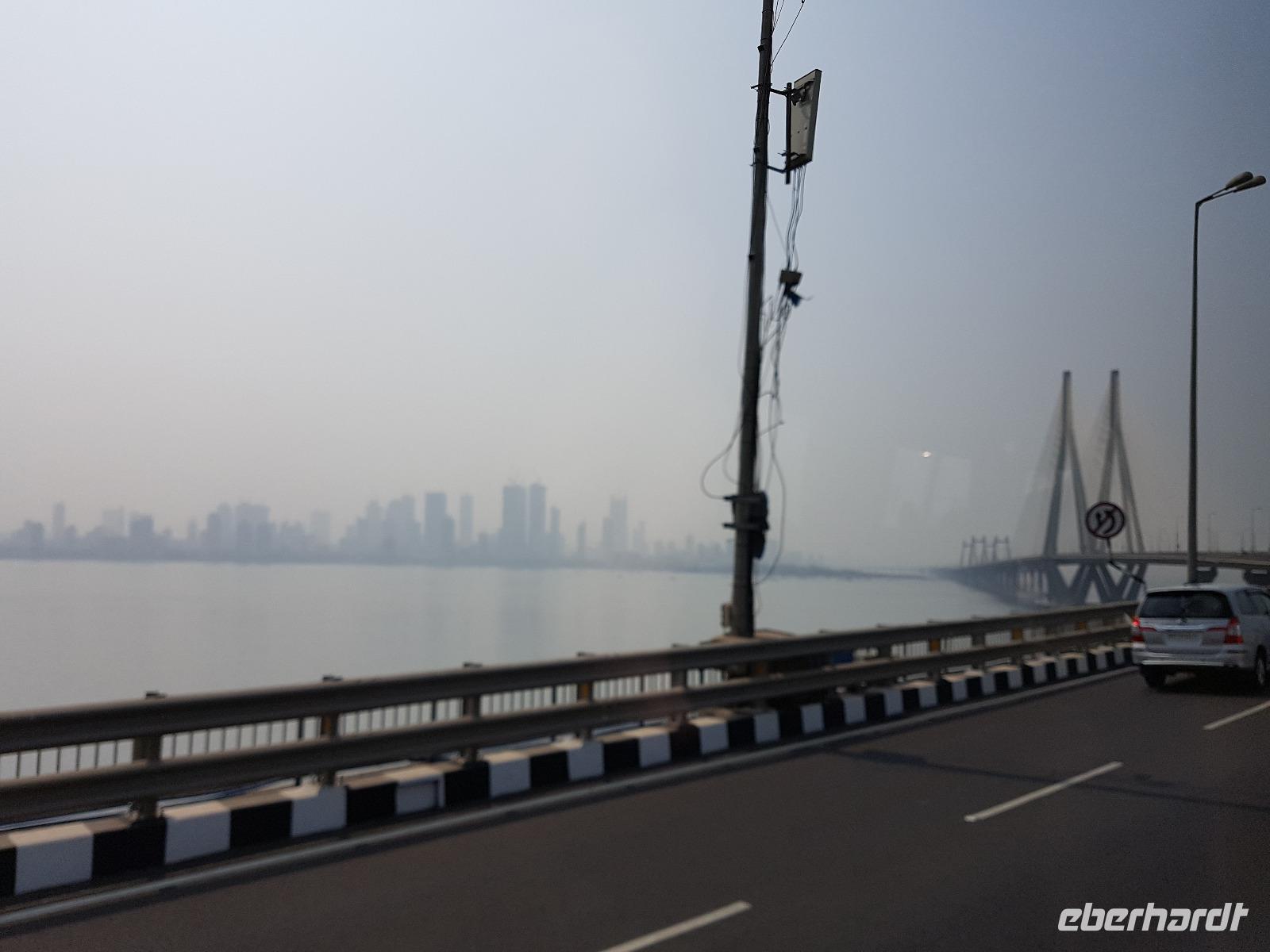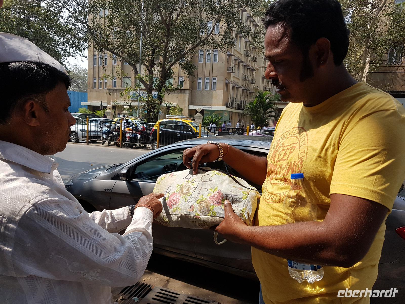 Sehr früh mußten wir unser Hotel verlassen und bekamen eine Frühstücksbox mit auf den Weg. Am Flughafen trafen wir Bhawani und checkten gemeinsam ein. Überraschenderweise gab es auf dem nur 1,5 Stunden dauernden Flug ein gutes warmes Frühstück mit Getränken. So konnten wir in Mumbai gut gestärkt gleich mit der Stadtrundfahrt beginnen. Die Stadt liegt auf der Insel Salsette und so fuhren wir über die 2010 eröffnete Rajiv Ghangi Sea Link Brücke hinüber zu den vielen Wolkenkratzern. Es herrschte starker aber geregelter Verkehr im Finanzzentrum Indiens und im Gegensatz zu den anderen bislang gesehenden Städten gab es viele Taxis, Müllbehälter und auch eine Müllabfuhr, so wie wir sie von Europa kennen. Zuerst sahen wir von einer Brücke die weltgrößte Wäscherei Dhobi Ghat. Unvorstellbar für uns, wie da jeder "seine" Wäschestücke zurück bekommt. Danach spazierten wir zur Haji Ali Moschee am Meer und sahen dort auch eine Inderin, die Früchte des Tamariskenbaumes verarbeitete. Weiter fuhren wir zu einem Park und dann zu den Dabawala. Dabawala ist die neueste Attraktion von Mumbai-ein Essenszustelldienst der besonderen Art. Das von den Ehefrauen oder Mamas frisch zubereite Essen wir in Behältern angeholt und dem "Werktätigen" an seinen Arbeitsplatz gebracht. Dann werden die leeren Behälter wieder abgeholt und nach Hause zurück geliefert. Wir erlebten das Eintreffen der Dabawala mit ihren Fahrrädern und die Sortierung der leeren Essensbehälter - unfaßbar wie das alles klappt !