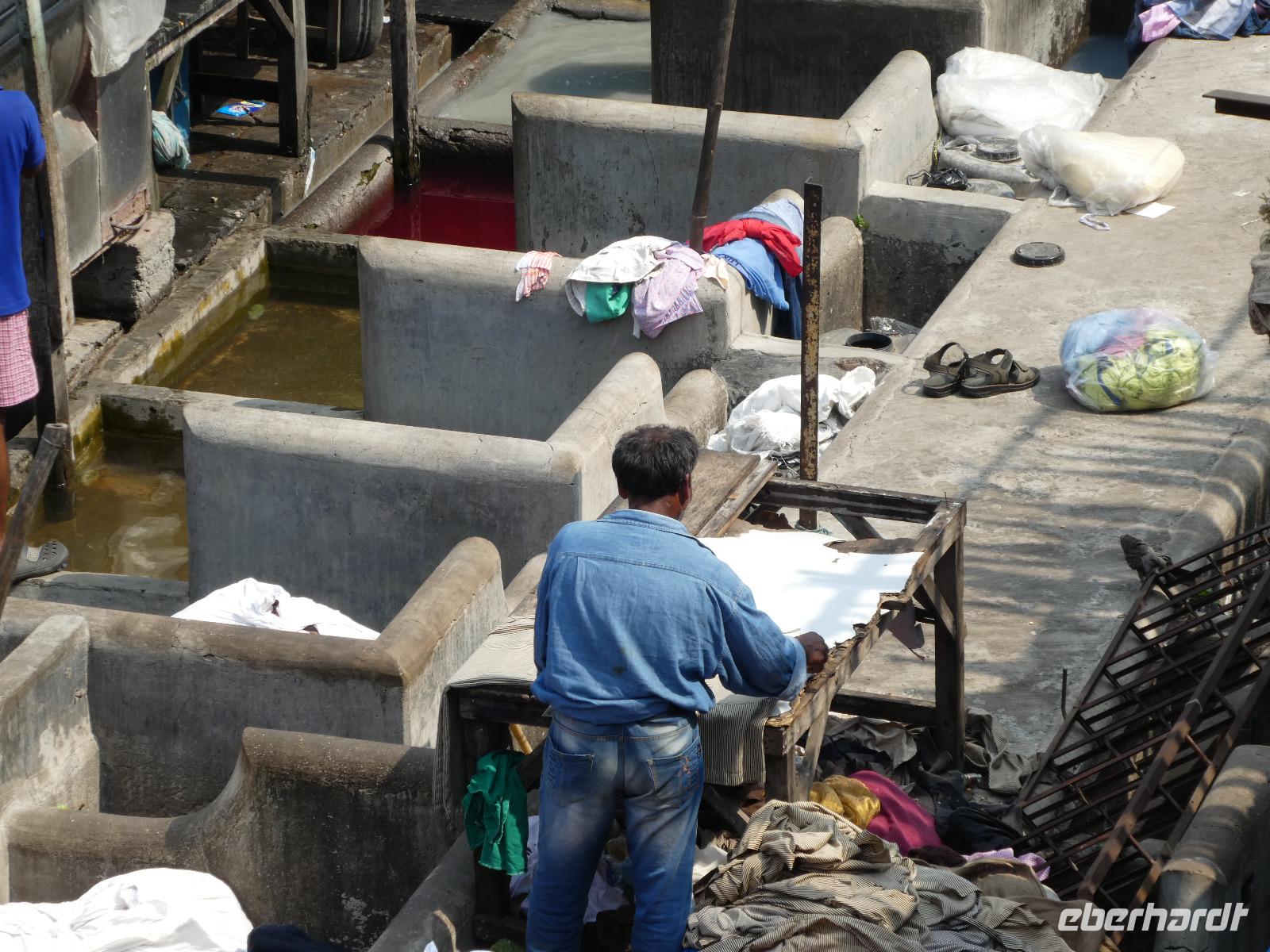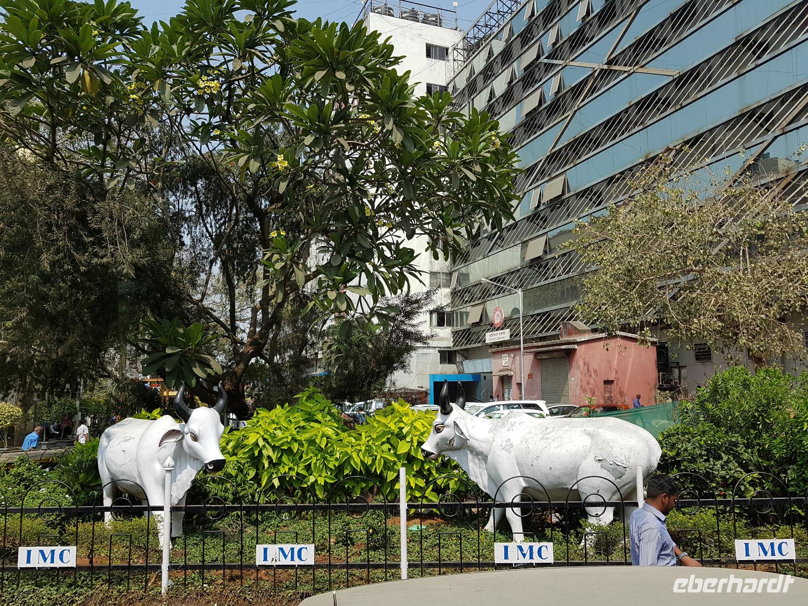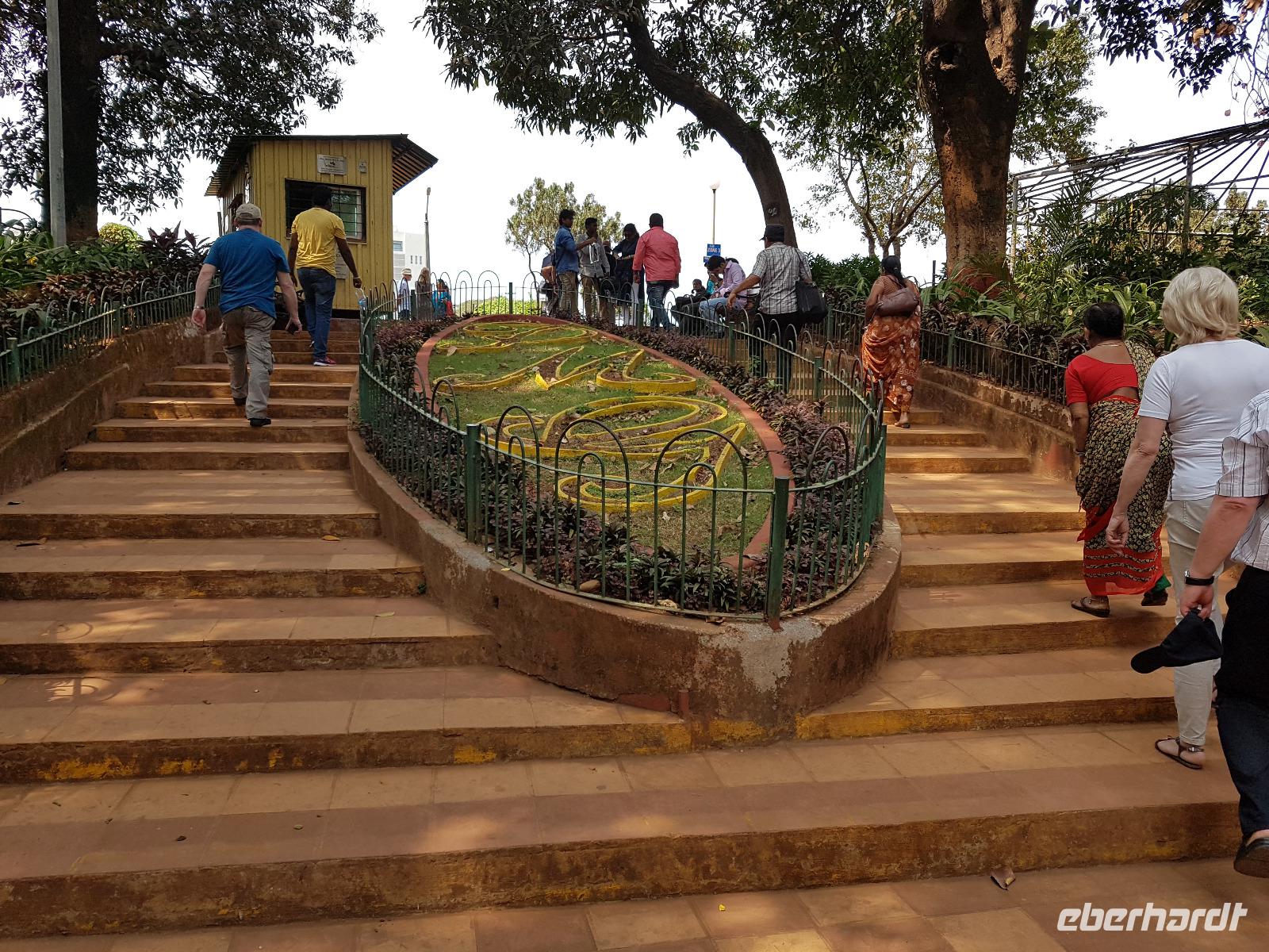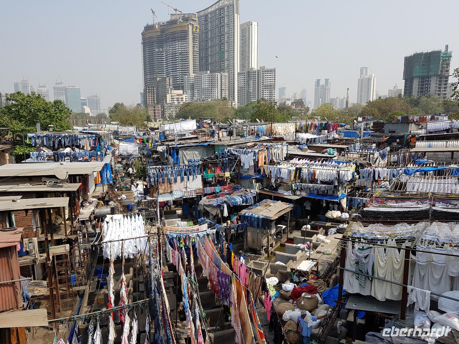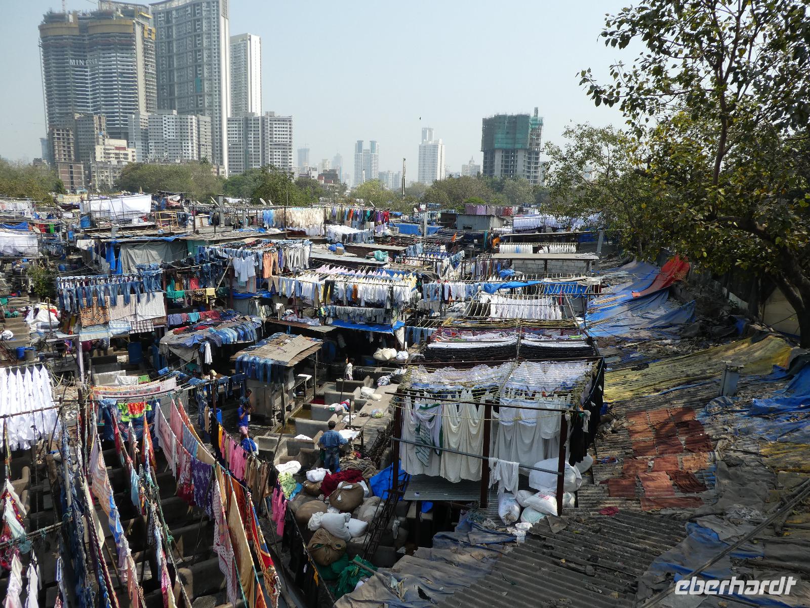 Sehr früh mußten wir unser Hotel verlassen und bekamen eine Frühstücksbox mit auf den Weg. Am Flughafen trafen wir Bhawani und checkten gemeinsam ein. Überraschenderweise gab es auf dem nur 1,5 Stunden dauernden Flug ein gutes warmes Frühstück mit Getränken. So konnten wir in Mumbai gut gestärkt gleich mit der Stadtrundfahrt beginnen. Die Stadt liegt auf der Insel Salsette und so fuhren wir über die 2010 eröffnete Rajiv Ghangi Sea Link Brücke hinüber zu den vielen Wolkenkratzern. Es herrschte starker aber geregelter Verkehr im Finanzzentrum Indiens und im Gegensatz zu den anderen bislang gesehenden Städten gab es viele Taxis, Müllbehälter und auch eine Müllabfuhr, so wie wir sie von Europa kennen. Zuerst sahen wir von einer Brücke die weltgrößte Wäscherei Dhobi Ghat. Unvorstellbar für uns, wie da jeder "seine" Wäschestücke zurück bekommt. Danach spazierten wir zur Haji Ali Moschee am Meer und sahen dort auch eine Inderin, die Früchte des Tamariskenbaumes verarbeitete. Weiter fuhren wir zu einem Park und dann zu den Dabawala. Dabawala ist die neueste Attraktion von Mumbai-ein Essenszustelldienst der besonderen Art. Das von den Ehefrauen oder Mamas frisch zubereite Essen wir in Behältern angeholt und dem "Werktätigen" an seinen Arbeitsplatz gebracht. Dann werden die leeren Behälter wieder abgeholt und nach Hause zurück geliefert. Wir erlebten das Eintreffen der Dabawala mit ihren Fahrrädern und die Sortierung der leeren Essensbehälter - unfaßbar wie das alles klappt !