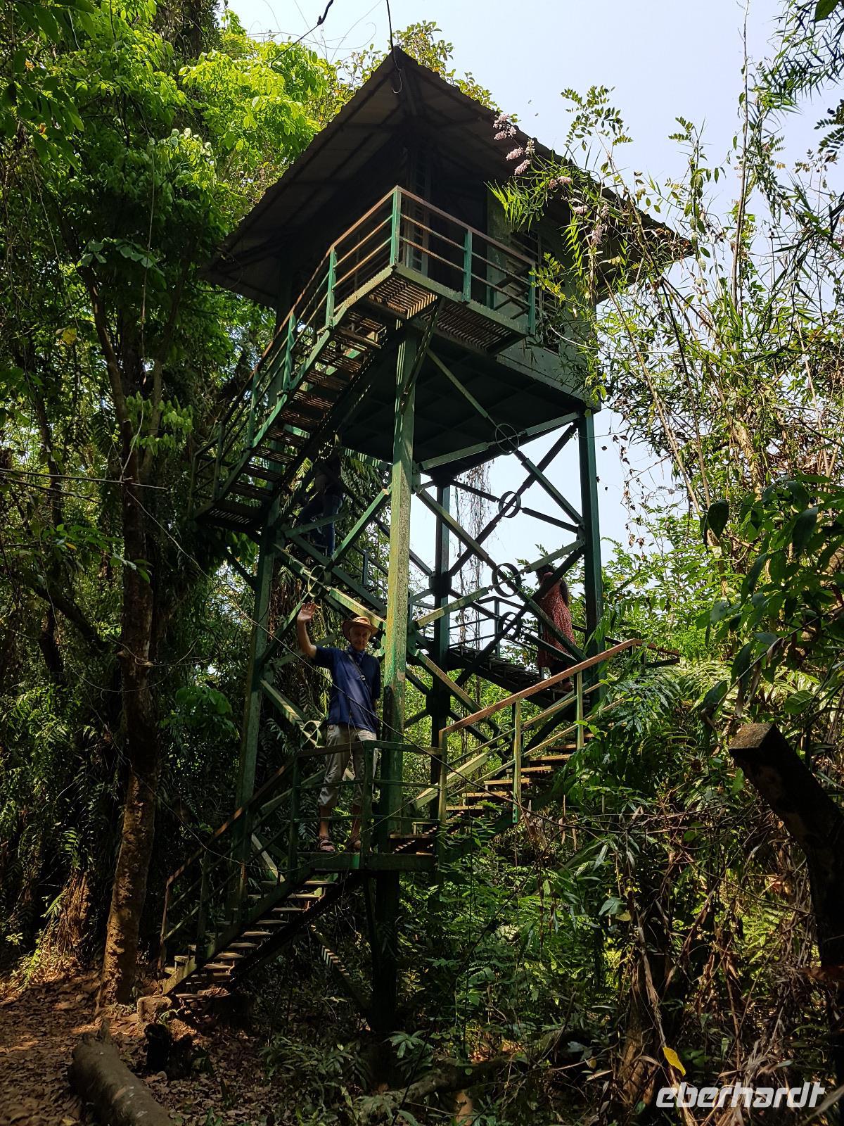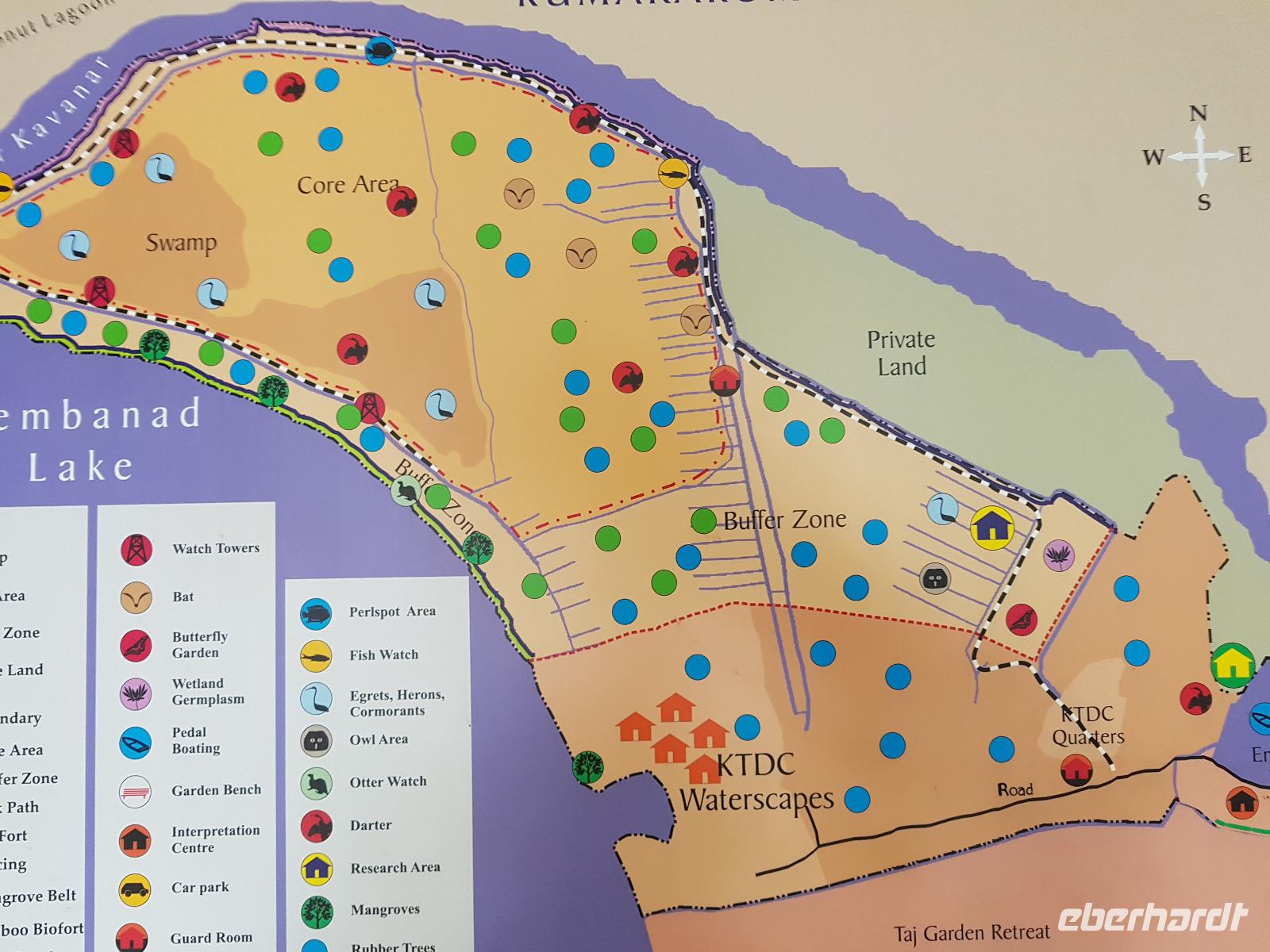 Ganz in der Nähe befand sich ein Vogelpark und diesen besuchten wir am Vormittag. 3 Stunden waren wir zu Fuß unterwegs im dichten grünen "Wald" und sahen verschiedene Vögel, einen Varan und einen Lizzard. Von einem Aussichtsturm konnten wir in die Baumkronen sehen und Vögel auf ihren Nestern beobachten. Den restlichen Tag genossen wir die Annehmlichkeiten des Resorts, unseren Pool, den kleinen Imbiss im Garten und zum Sonnenuntergang fuhren wir mit dem Boot hinaus auf den Vembanad See. So sahen wir auch die anderen Hotelanlagen am Ufer und lernten nette Menschen auf dem Boot kennen. 2 Musiker spielten südindische Musik und so wurde der Sonnenuntergang unvergessen. Zum Abendessen wurden wir wie schon am Vorabend von einer ausgezeichneten Küche mit einer großen Speisenvielfalt verwöhnt. Leider konnten wir nicht alles probieren. Während des Essens traten immer Künstler aus der Region auf und erfreuten uns mit Tanz und/ oder Musik.