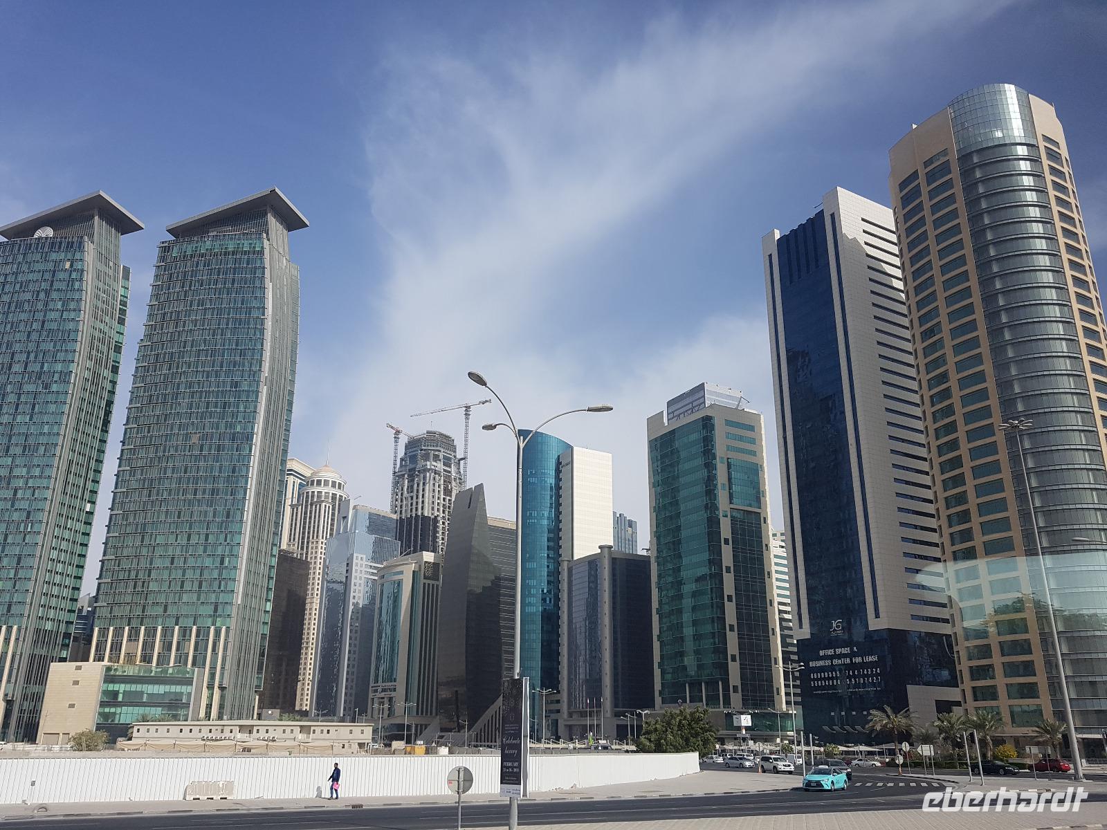 Mit Qatar Airway flogen wir über Doha nach Berlin Tegel und München zurück. In Doha verabschiedeten wir uns von Hans, der einen kurzen Anschluß nach München hatte. Unser Flug nach Berlin Tegel ging erst in 8 Stunden. Die lange Wartezeit in Doha überbrückten wir mit einer Stadtrundfahrt. Die Qatar Airways Fluggesellschaft bietet für ihre Passagiere für kleines Geld und super organisiert diesen City Trip an. So besuchten wir über 3 Stunden Doha und sahen die Mega Neubauten in den verschiedenen neuen Stadtzentren. Auf dem Souk gab es dann mehr Freizeit, um auch Einkäufe tätigen zu können. Bei gemütlichen 20 - 25 Grad konnten wir uns so schon langsam an die niedrigeren Temperaturen in Deutschland gewöhnen.
