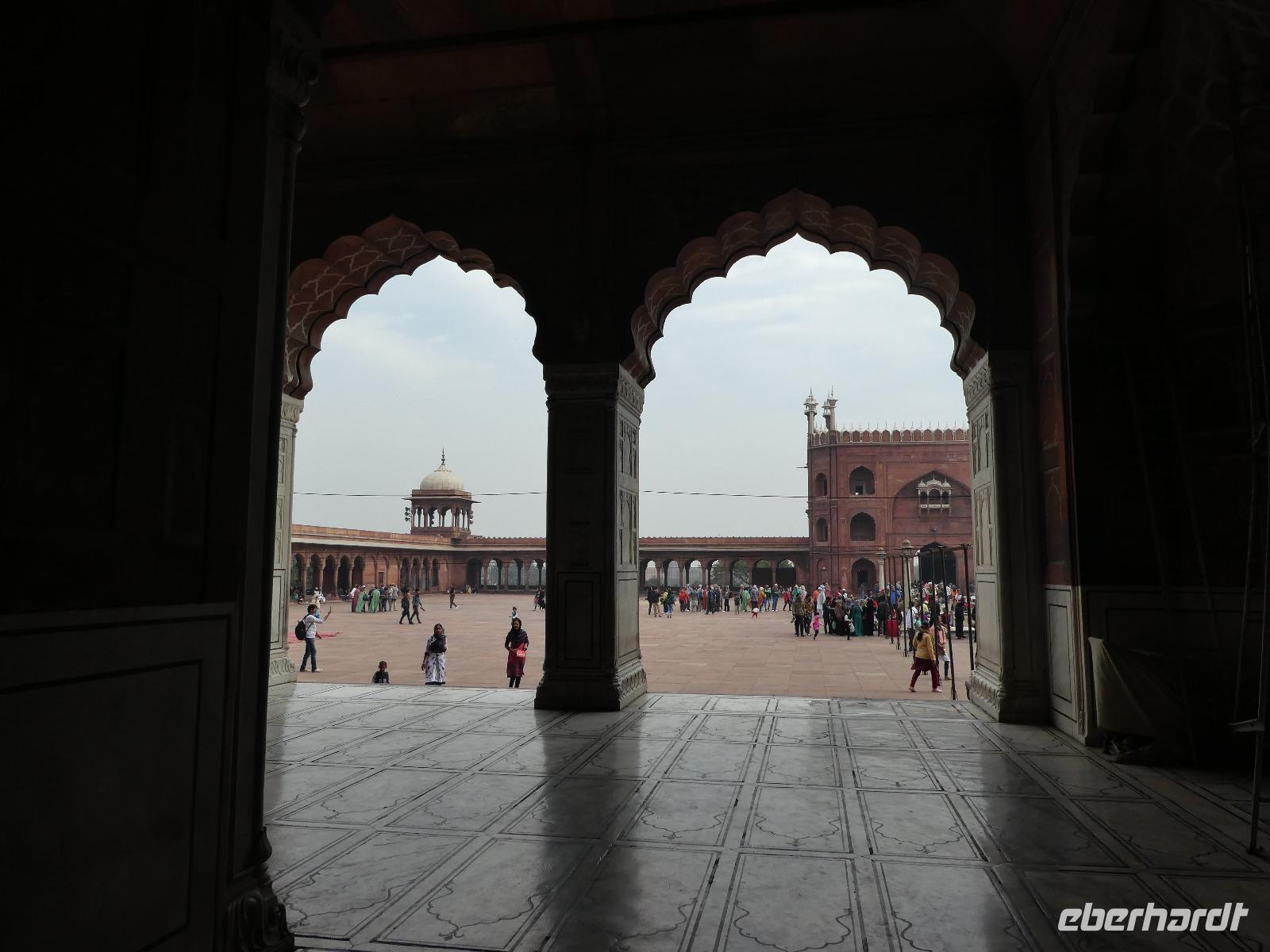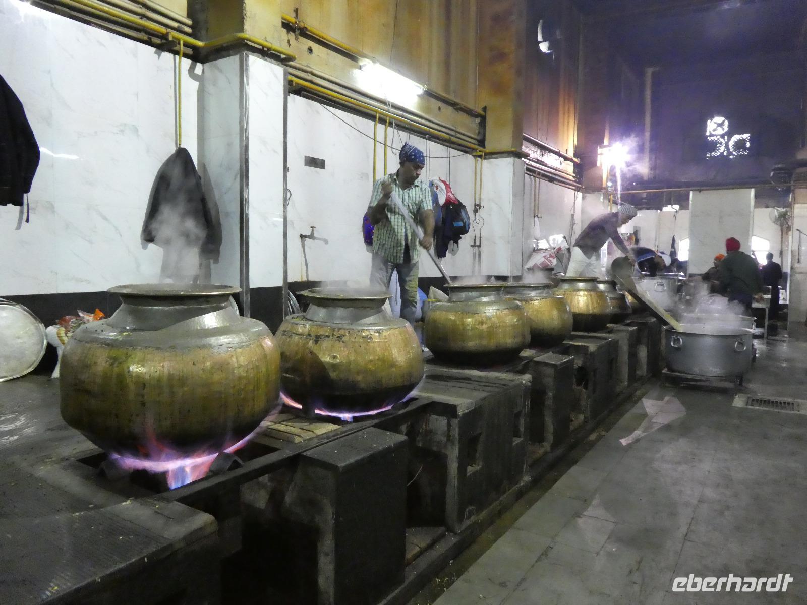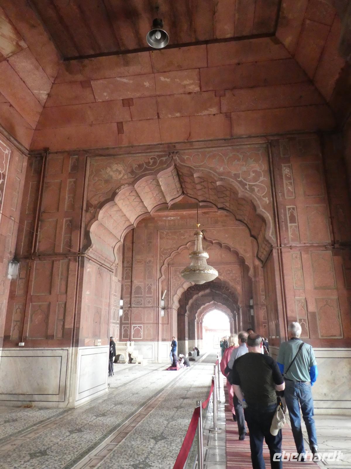 Sogleich begaben wir uns zur Stadtbesichtigung und begannen mit dem Besuch der Freitags Moschee. Unsere Schuhe blieben vor der Moschee und die Frauen mußten ihren Körper unter einem Gewand verstecken. Danach spazierten wir durch die engen Gassen und ich kaufte etwas zum Knabbern gegen unseren Hunger. Ein kleines Stück durch das Gewühl der tausenden Menschen nutzten wir ein Tuktuk bzw. eine Rikscha und gingen weiter entlang des Roten Forts zum Parkplatz. Unser Bus brachte uns vorbei am India Gate dann zum Sikh Tempel. Täglich werden dort viele Tausend Menschen mit einer warmen Mahlzeit versorgt und es war beeindruckend, wie diszipliniert alles ablief. Die Bedürftigen saßen in langen Reihen in einem großen Raum und nach ca. 30 min. war Wechsel. Wir besuchten unterdess die große Küche und halfen mit beim Teig ausrollen und Gemüse putzen. zuvor jußten wir wieder unsere Schuhe ausziehen und uns ein Kopftuch umbinden.