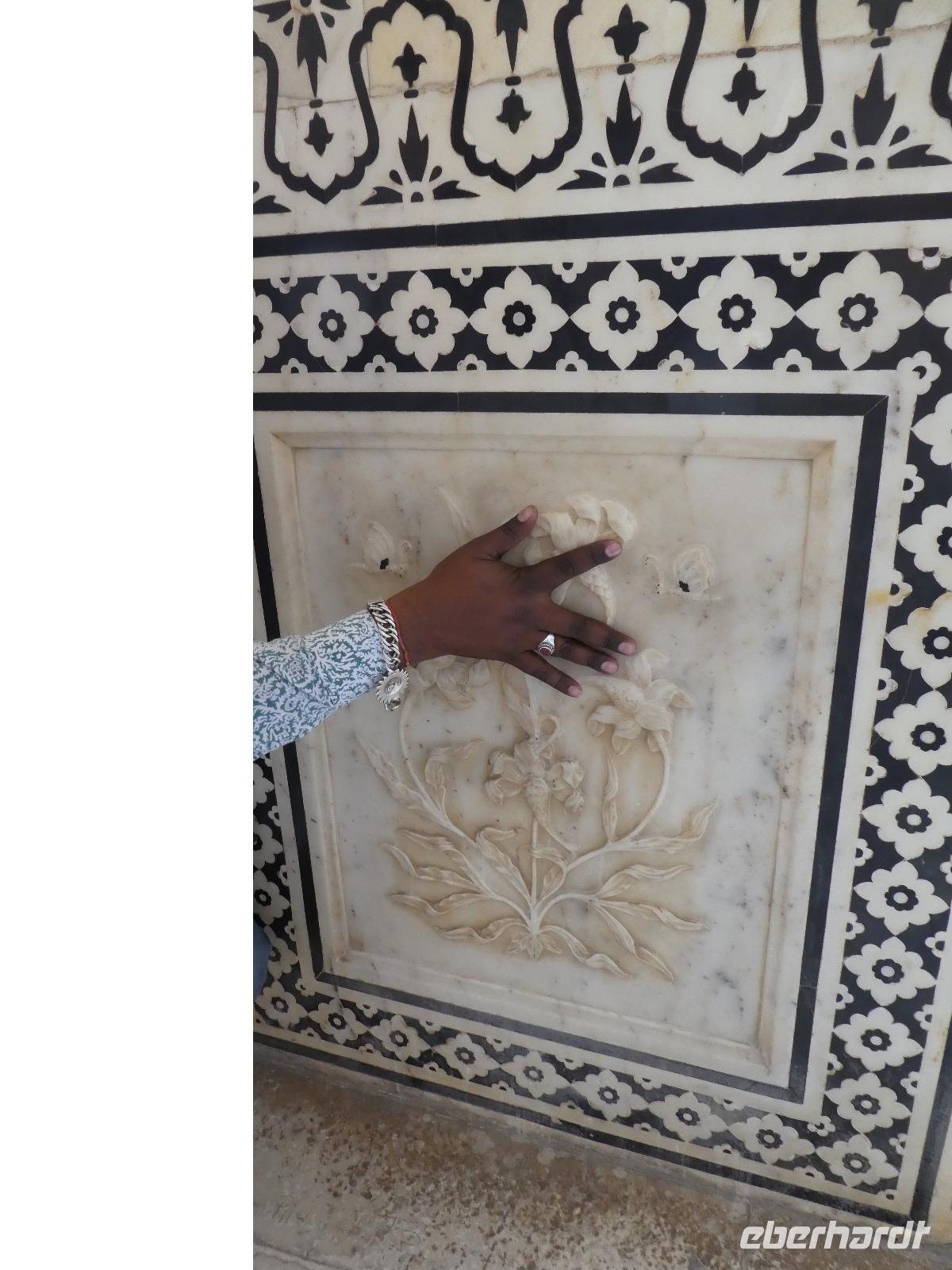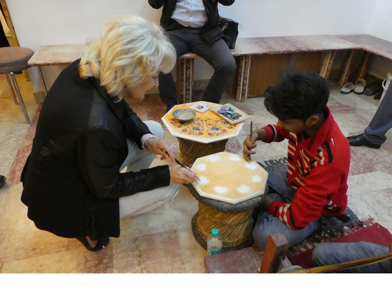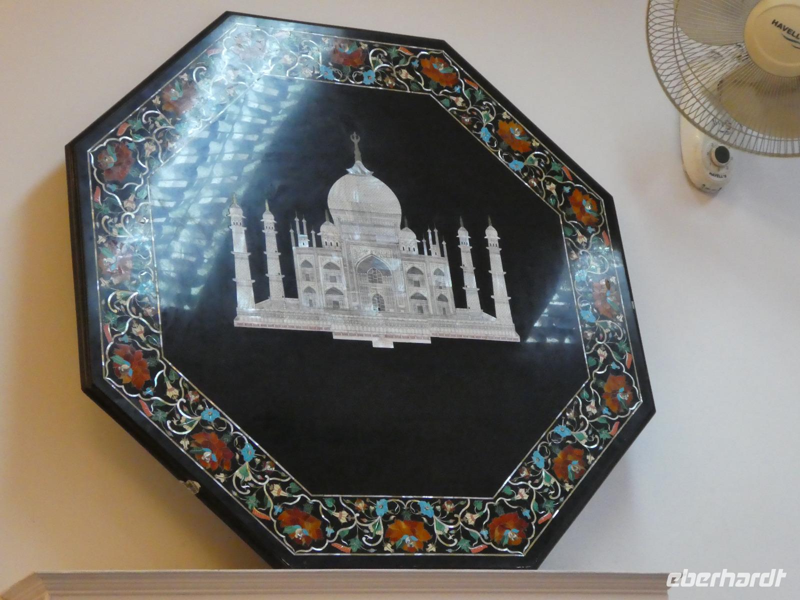 Auf dem Rückweg hielten wir an einer Manufaktur, wo noch heute ganz traditionell die Einlegearbeiten, die wir am Taj Mahal bewundern konnten, gefertigt werden. Wir sahen einen Film und tranken Rum dazu. Auch konnten wir uns selbst versuchen beim Aushöhlen des Marmors und natürlich gab es auch schöne Stücke zu kaufen. Zum Abendessen hatten wir dann wieder die Qual der Wahl mit den vielen schmackhaften Speisen.