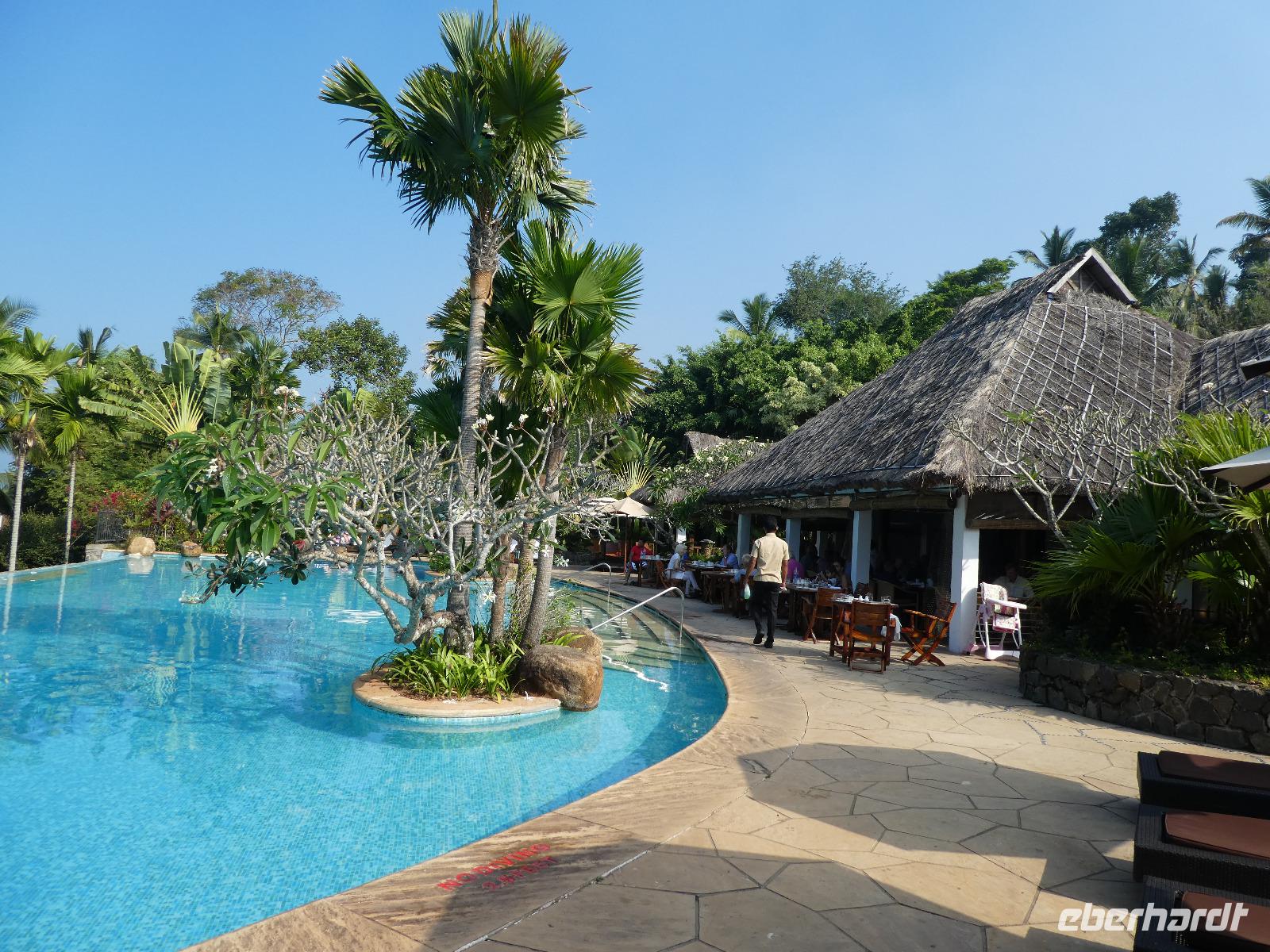 Zum Abendessen hatten wir einen Tisch am Pool mit Blick aufs Meer und das Buffet ließ keine Wünsche offen.