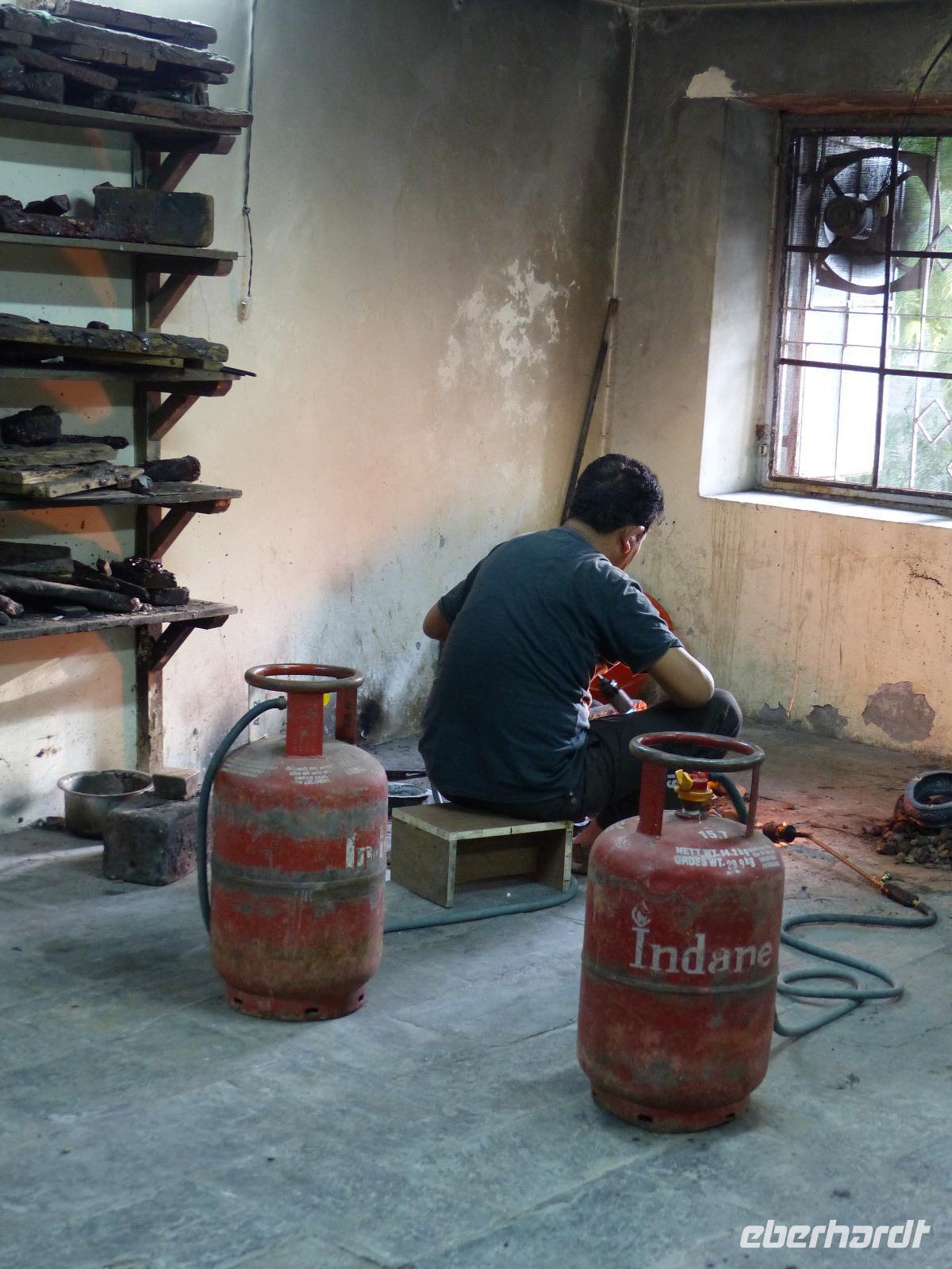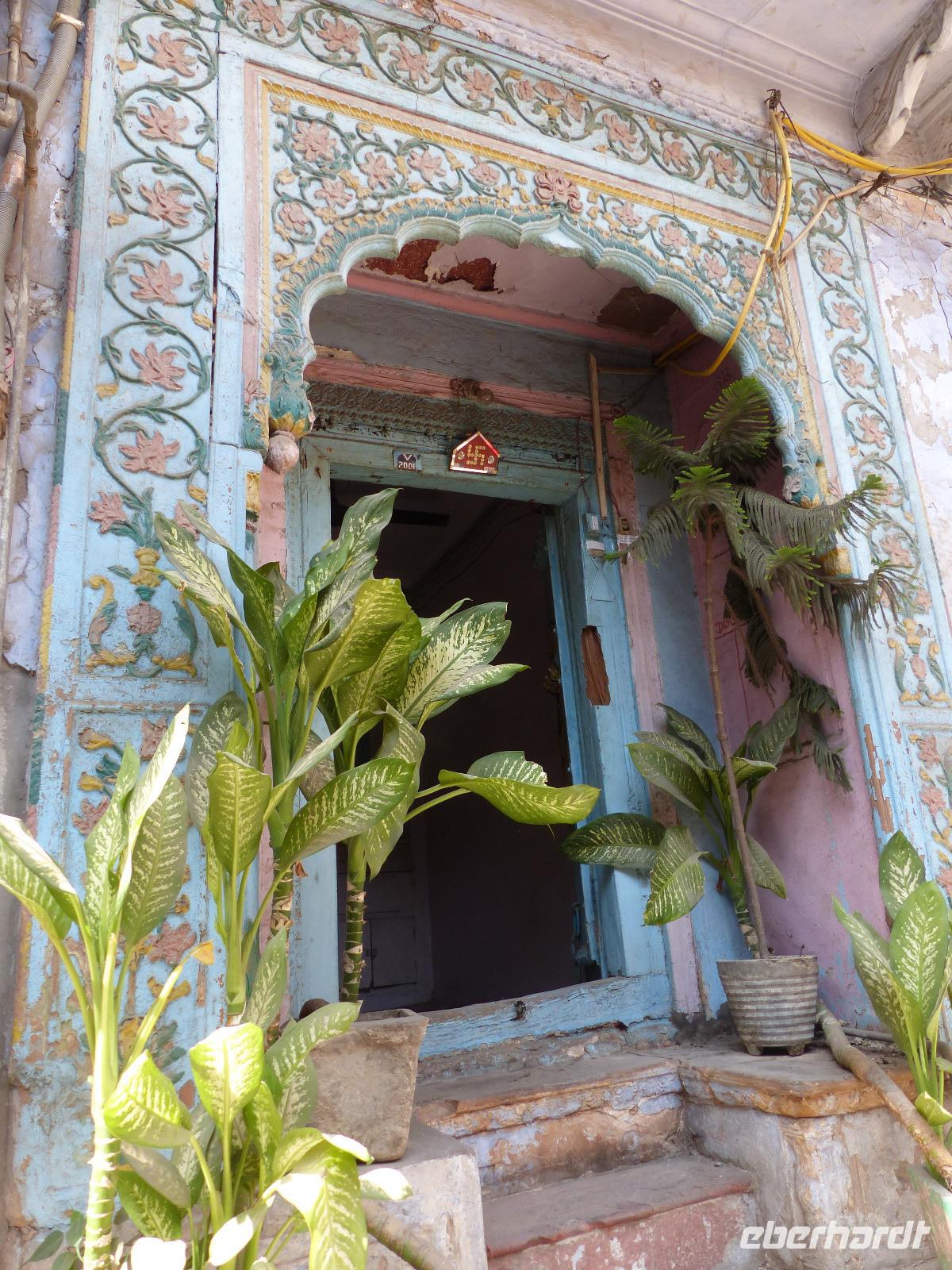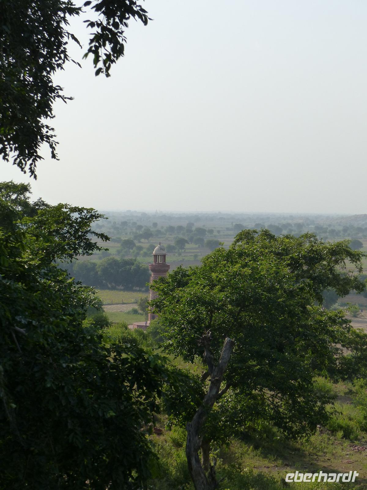 Nach einem ersten Frühstück in Indien verlassen wir vorerst Delhi und beginnen unsere Reise nach Kalwar, einer kleinen Stadt mit Dorfcharakter in der Nähe von Jaipur. Schon nach den ersten Metern Fahrt überwältigt uns der ganz normale Wahnsinn auf Indiens Straßen. Nicht nur Mopeds drängeln sich durch, auch Kühe überqueren die Straße - und Straßenmarkierungen werden sowie völlig überbewertet. Sicher und mit dem ein oder anderen Hubsignal manövriert uns unser Fahrer aus der Stadt direkt auf den Highway. Sandeep, unser Reiseleiter, erzählt uns die ersten Geschichten und auch ein typischer Mittagssnack darf nicht fehlen - Naanbrot, mit Käse oder Knoblauch, dazu Masala Tee oder sogar das erste indische Bier - Kingfisher, stehen auf unserer Speisekarte. Am späten Nachmittag, etwa 2 Stunden später als geplant - wer hätte das bei diesem Verkehr gedacht ;) - erreichen wir unser Hotel in Kalwar. Eine Hotelanlage fast für uns allein, in der bis heute die Zeit fast stehengeblieben scheint. Nicht nur die Bilder erinnern an die Zeit der Maharadjas, sondern auch wunderschöne Zeichnungen am Hauptgebäude. Nach etwas Zeit zum frisch machen, begeben wir uns auf einen kleinen Spaziergang durch die Stadt. Wir sind erstaunt mit welcher natürlichen Herzlichkeit wir empfangen werden. Es ist sogar fraglich wer sich mehr über diesen Besuch freut - wir oder die Bewohner dieser Stadt? Bei unserem Bummel kommen wir auch bei einer Familie vorbei, welche Tongefäße herstellt. Als wäre es selbstverständlich, wird die Maschine noch einmal angeworfen, und uns die Tätigkeit, welcher hier tagtäglich nachgegangen wird, vorgeführt. Neugierige Kinderaugen schauen interessiert durch das Grundstückstor der Familie. Als wir dann wieder in unserem kleinen Palast ankommen, wartet schon das Abendessen auf uns. Bei angenehmen Temperaturen lassen wir uns die indische Küche schmecken und genießen das Ambiente. Ein erster schöner Tag in Indien neigt sich dem Ende.