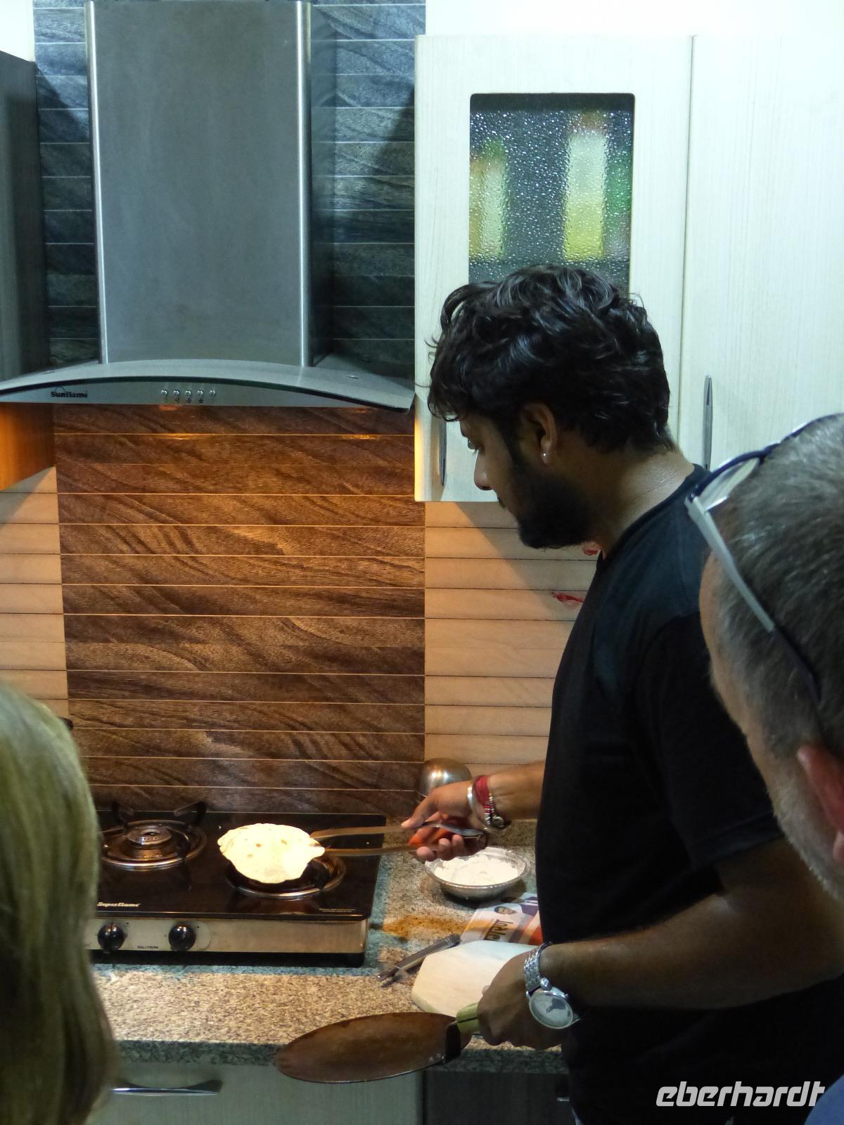 Heute wird ein Tag voller Überraschungen. Wir stehen alle etwas früher auf, sodass wir bereits kurz nach sieben Uhr in unserem Bus auf dem Weg nach Agra sitzen. Erster Stopp, und somit Überraschung Nummer 1, ist der Stufenbrunnen Chand Baoli in dem kleinen Dorf Abhaneri. Man sagt, dass er mit seinen ca. 3500 Stufen auf 13 Etagen zu den größten und tiefsten Stufenbrunnen der Welt gehört. Nach einem kurzen Tempelbesuch und der ersten Weihung durch einen Priester, führt uns unsere Reise weiter - direkt am Keoladeo Nationalpark in Bharatpur vorbei. Der ca. 29km² große Park bietet mit seinen Seen und Buschlandschaft en eine ideale Voraussetzung für Vögel und ist daher als Paradies und Überwinterungsort für zahlreiche Zugvögel bekannt. Um uns selbst ein Bild machen zu können und etwas mehr in die Natur und Tierwelt Indiens einzutauchen, erleben wir hier Überraschung Nummer 2. Einmal aussteigen bitte! Wir gehen gemeinsam auf eine kleine Erkundungstour - aktiv mit dem Fahrrad oder entspannt mit einer Fahrrad-Rikscha. Nach ca. 2 Stunden und deutlich mehr Fotos im Gepäck geht es dann weiter nach Fatehpur Sikri, einer verlassenen Kaiserstadt mit imposanten Hinterlassenschaften des Mogulkaisers Akbar. Mit Ankunft auf dem Parkplatz steigen wir in einen Shuttlebus um, und erkunden zu Fuß diese gewaltige Anlage. Anschließend setzen wir unsere Reise in das 40km westlich gelegene Agra fort. Aufgrund des anhaltenden Festes ist auch hier deutlich mehr Verkehrsaufkommen, sodass wir erst gegen 19 Uhr unser Hotel erreichen. Hier heißt es etwas frisch machen und ein wenig später steht eine weitere Besonderheit unserer Reise auf dem Programm. Wir fahren zu einer indischen Familie nach Hause und werden hier nicht nur lecker bekocht, sondern dürfen auch selbst bei einzelnen Gerichten Hand anlegen. Da uns unser Reiseleiter Sandeep aber ebenso seine Kochkünste zeigen möchte, übernimmt er einen Großteil der Arbeit. ? Müde und Zufrieden kehren wir am späten Abend zurück zum Hotel.