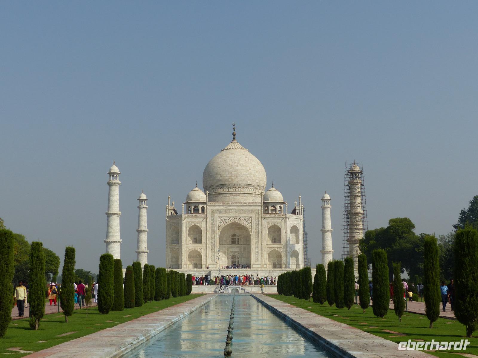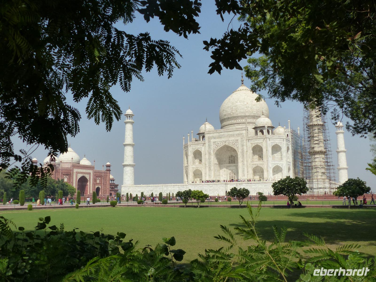 Ein Hauch von unvergänglicher Liebe liegt heute in der Luft - der Besuch des Taj Mahal, einem der schönsten und bedeutendsten Bauwerke der Erde, steht auf unserem Programm. Nach einem reichhaltigen Frühstück erkunden wir die gesamte Anlage und staunen über dieses traumhafte und einzigartige Grabmal aus weißem Marmor. Der Mogul-Kaiser Shah Jahan ließ das Taj Mahal zum Gedenken an seine Lieblingsfrau Mumtaz errichten - welches daher heute als Denkmal ewiger Liebe bekannt ist. Dem Yamuna-Fluss folgend, erreichen wir gegen Mittag und nach wenigen Fahrminuten ein weiteres Monument - das rote Fort in Agra. Dieses wurde, nicht wie das Taj Mahal von einem einzigen Herrscher erbaut, sondern entstand in einem Zeitraum von mehr als einem Jahrhundert von verschiedenen Machthabern. Bei einer ausgedehnten Besichtigung lassen wir diese Befestigungsanlage auf uns wirken und genießen zudem einen erneuten Blick auf das in unmittelbarer Nähe liegende Taj Mahal. Bei einem anschließenden Mittagessen lehnen wir uns im Schatten zurück und lassen uns eine Kleinigkeit schmecken. Am Nachmittag heißt es dann Abschied nehmen, unsere Reiseroute bringt uns zurück nach Delhi, wo wir am Abend ankommen und eine weitere Nacht im Vaishree Hotel verbringen.