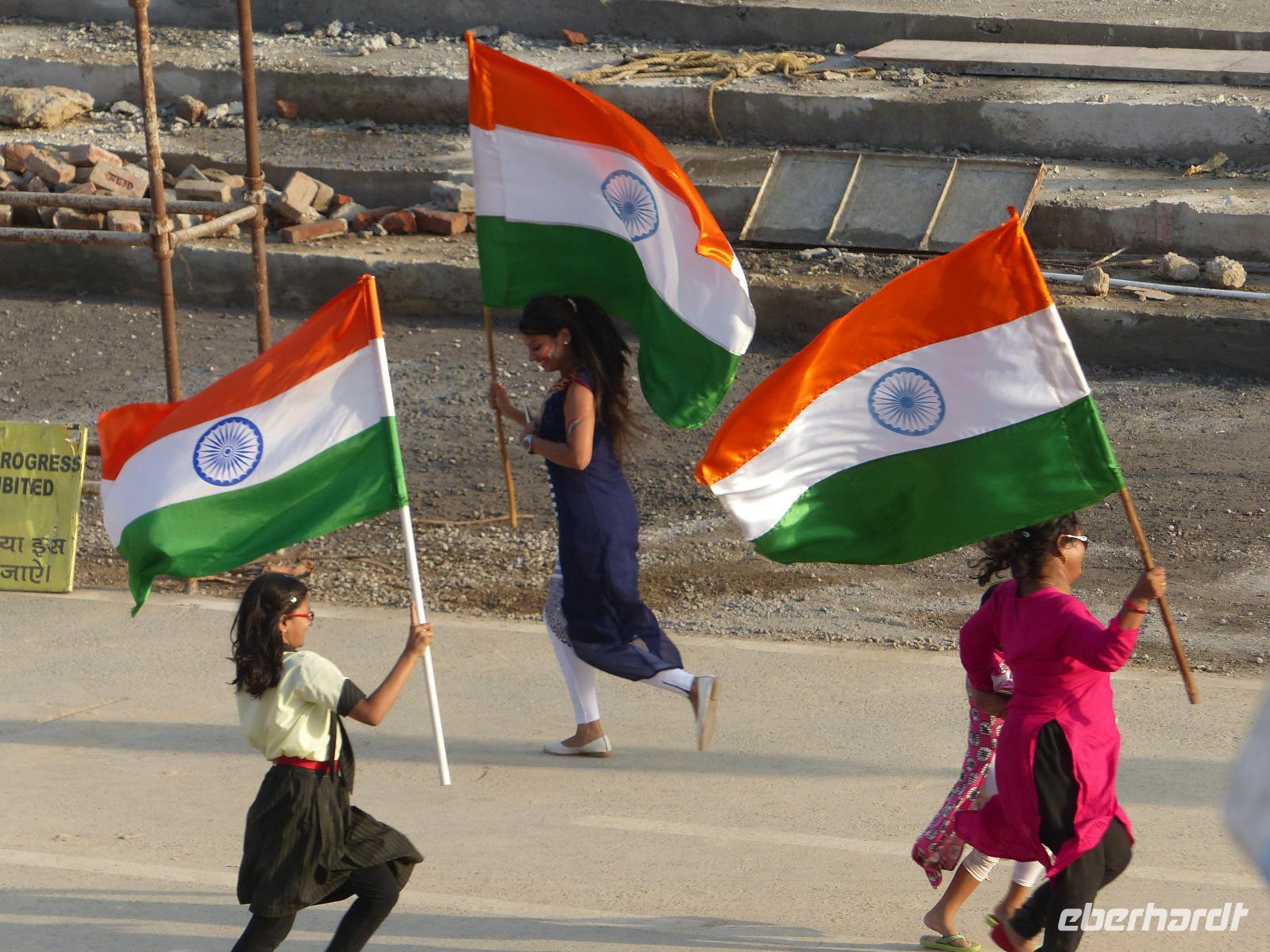 Nach einer kurzen Nacht verlassen wir Delhi erneut und setzen unsere Reise nach Amritsar fort. Mit dem Zug geht es in die zweitgrößte Stadt von Punjab und somit zum Heimatort des wichtigsten Heiligtums der Religionsgemeinschaft der Sikhs, dem Goldenen Tempel. Während der Fahrt lassen wir uns etwas verwöhnen, denn überraschenderweise ist die Verpflegung bereits im Ticket inklusive. Angefangen mit einer privaten Thermoskanne für eine Tasse Tee, gibt es weitere Snacks über die Fahrt verteilt. Am frühen Nachmittag erreichen wir dann fast pünktlich den Bahnhof in Amritsar, und werden hier herzlich von unserem Fahrer in Empfang genommen. Dieser hatte bereits die Reise nach Amritsar am Abend zu vor begonnen und brachte uns nun per Bus zum kurzen frisch machen in unser Hotel. Direkt im Anschluss und mit leckeren Samosas für ein spätes Mittagessen im Gepäck fuhren wir zur nur 26km entfernten pakistanischen Grenze (Wagah Border). Hier findet beiderseits der Grenzen jeden Abend eine militärische Zeremonie zum Einholen der Flaggen statt. Doch bevor wir an diesem beeindruckenden und zugleich skurrilen Ereignis teilnehmen, erlebten wir einen kurzen Schock-Moment. Durch Lautsprecher wurde bekannt gegeben, dass die Zuschauertribünen bereits voll wären und weitere Besucher keinen Platz mehr hätten. Also nahmen wir unsere Beine in die Hand und siehe da, mit dem Glück auf unserer Seite und einem gewissen Ausländerbonus wurde uns der Zutritt gewährt. Hier erwartete uns nun eine sehr interessante aber zugleich auch eigenartige Veranstaltung. Es ist sehr schwierig dieses Erlebnis wiederzugeben, da eine besondere Atmosphäre in der Luft lag. Eine Zeremonie begleitet von fröhlich tanzenden Kindern, einem nicht zu überhörenden Nationalstolz und der Tatsache, dass sich gerade aktuell wieder eine enorme Spannung zwischen Indien und Pakistan auf tut. Beeindruckt und nachdenklich zu gleich, erreichen wir im Anschluss unser Hotel am Abend. Bei einem leckeren Abendessen und besonderer Live-Musik ;) lassen wir den Abend ausklingen.