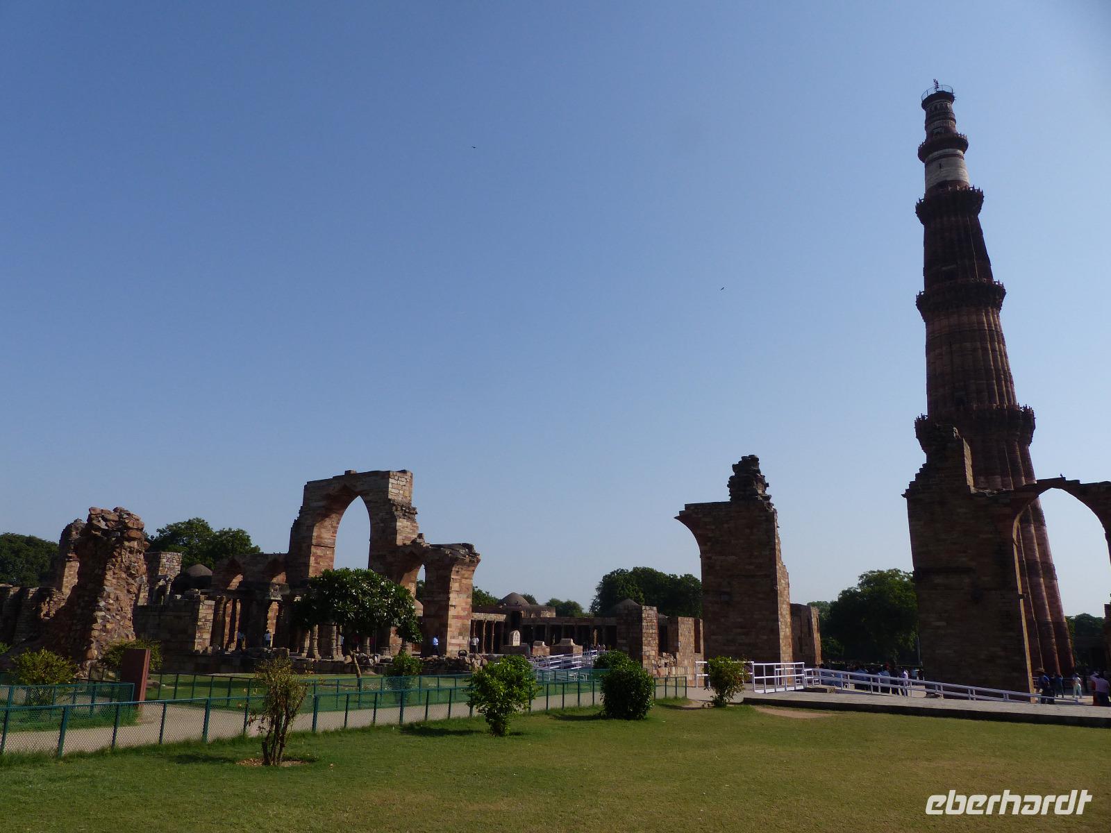 An unserem letzten Tag entdecken wir endlich Delhi - die Hauptstadt der größten Demokratie der Welt! Etwas früher starten wir heute in den Tag, denn unser erster Besichtigungspunkt ist das Qutb Minar, ein ca. 72m hohe Turm und zugleich ältestes Bauwerk muslimischer Herrscher in Delhi. Gegen 9 Uhr hat dieses eben erst seine Pforten geöffnet und ermöglicht uns eine Besichtigung bei angenehmen Temperaturen und ohne viele andere Besucher. Neben der nicht rostenden Eisernen Säule sehen wir zudem Relikte der ersten Moschee Indiens. Weiter führt uns unser Programm nach Alt Delhi, wo wir unmittelbar bei unserer Ankunft mit dem hier herrschenden Trubel begrüßt werden. Aufgrund des anstehenden Lichterfestes sind viele Menschen unterwegs und unser Besuch stellt sich als pures Abenteuer heraus. Durch die engen Gassen im Hauptgeschäftsviertel Chandni Chowk tauchen wir in das geschäftige Delhi ein und freuen uns anschließend per Rikscha zu einem etwas ruhigeren Ort zu gelangen- Raj Ghat, dem Verbrennungsplatz von Mahatma Gandhi. An diesem wohl bekanntesten Grabmahl, einem schwarzen Marmorblock, lauschen wir Sandeeps Erzählungen und atmen zudem etwas durch. Dann heißt es erneut per Rikscha ins Gewusel, allerdings mit Stopp direkt an der Freitagsmoschee, der Jama Masjid, der größten Moschee Indiens und der drittgrößten weltweit. Bei einer anschließenden späten Mittagspause stärken wir uns für den letzten Programmpunkt des Tages. Gemeinsam haben wir uns die Möglichkeit gewünscht noch einmal etwas einkaufen zu können und somit die letzten Rupie auszugeben und vor allem das ein oder andere Mitbringsel zu kaufen. Bei einem Marktbesuch in einem extra dafür vorgesehenen Bereich gelingt uns dies auch sehr gut. :) Im Hotel angekommen, heißt es langsam Abschied nehmen, die Taschen werden gepackt und jeder macht sich für die Heimreise fertig. Nach einem letzten gemeinsamen Abendessen werden wir zum Flughafen gebracht - natürlich nicht ohne Fotobuch ;). Hier heißt es Namaste Indien und vor allem auf Wiedersehen zu unserem liebgewonnen Reiseleiter Sandeep. Kurz nach Mitternacht fliegen wir pünktlich nach Deutschland, wo wir am nächsten Morgen landen und uns auch hier nun als Gruppe verabschieden müssen.