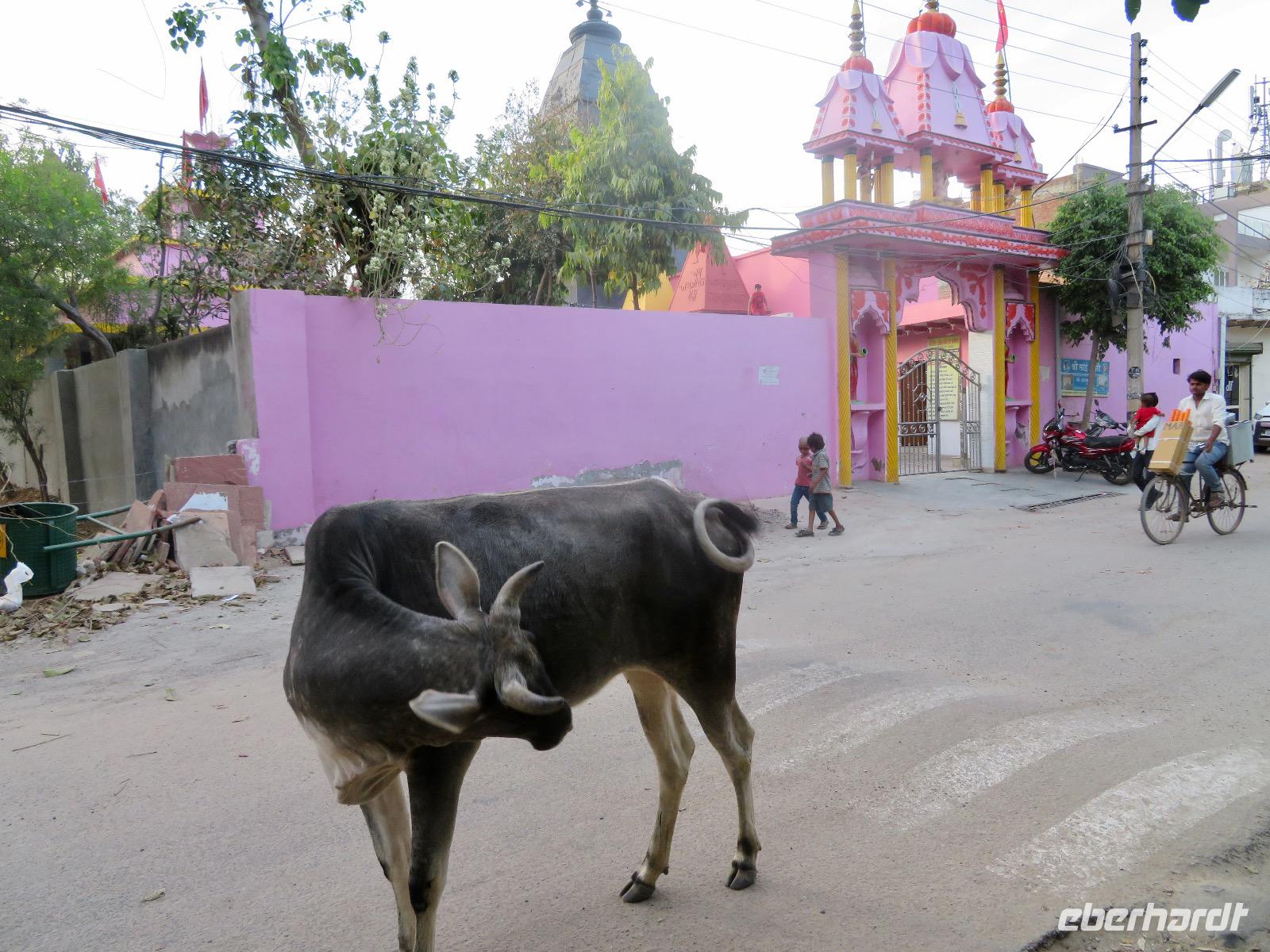 Drei, zwei, eins... endlich ist es soweit! Sehnsüchtig haben wir unserer Reise des Lebens entgegengefiebert und nun kann sie beginnen. Wir treffen unsere kleine Reisegruppe von zwölf Personen am Flughafen Berlin-Tegel. Nach einem netten Plausch mit den Qatar-Mitarbeitern am Checkin-Schalter und ausgiebigen Prüfung der Indienvisa starten wir die erste Flugetappe nach Doha. Es sollte nahtlos weitergehen, doch aus technischen Gründen wird unsere vorgesehene Flugmaschine ausgetauscht und der Flug verzögert sich „etwas". Um die Zeit zu vertreiben, werden wir von Qatar Airways freundlicherweise auf ein Abendessen eingeladen. Kurz vor Abflug verspätet sich der Start schon wieder, denn ein Reisegast ist krank und muss erst ärztlich auf Reisetauglichkeit untersucht werden. Endlich losgeflogen nähern wir uns dem Tagesziel Delhi. Alle guten Dinge sind bekanntlich drei: Tja, weil wir mit erheblicher Verzögerung aus Doha abgeflogen sind, müssen wir entsprechend lange auf eine Landeerlaubnis warten. So gibt der Pilot mehrere Runden über das Weite von Indien aus, damit wir einen ersten Eindruck von den riesigen Ausdehnungen erhalten. Aber wir bleiben hartnäckig oder besser gesagt geduldig, denn wir wollen nach Incredible India! Die Einreisebeamten führen mit uns einen netten Small-Talk und geben uns den langersehnten Einreisetempel. Unser indischer Reiseleiter Bhawani begrüßt uns mit einem herzlichen Namaste und nimmt uns auf das Nordindien-Abenteuer. Im kleinen Boutique-Hotel unserer Partneragentur beziehen wir unsere Zimmer für die nächsten zwei Nächte. Um der Müdigkeit nicht nachzugeben, spazieren wir zu zwei Hindu-Tempeln. In dieser Woche findet für neuen Tage das Fest der Bhawani-Göttin „der Zerstörung" statt. Mit Blumenketten und verzierten Seidentüchern beschmücken sie die Tempel. Wir lassen uns ebenfalls vom Priester mit einer Feuerflamme segnen, auf dass wir eine tolle gemeinsame Reise verleben.