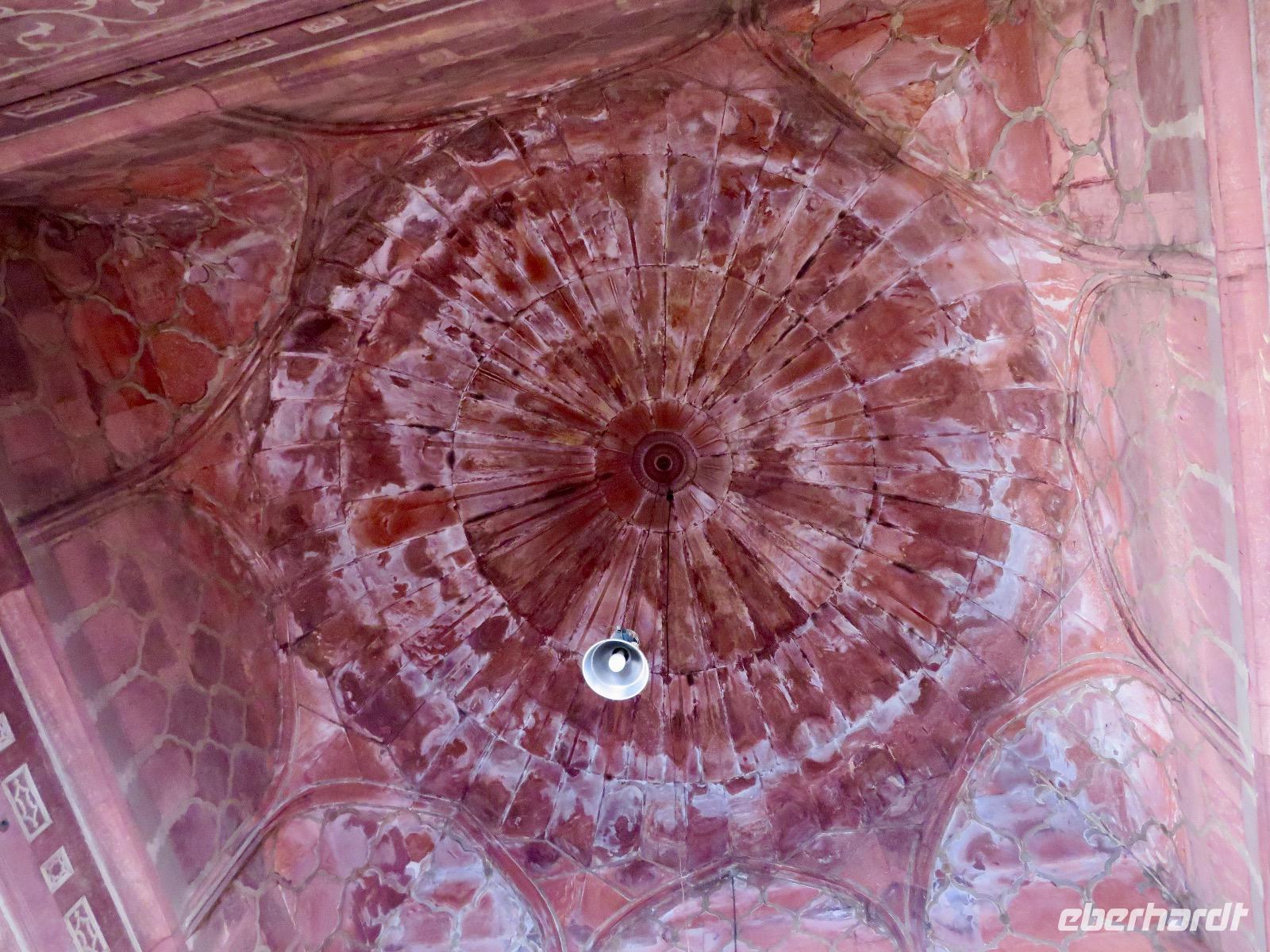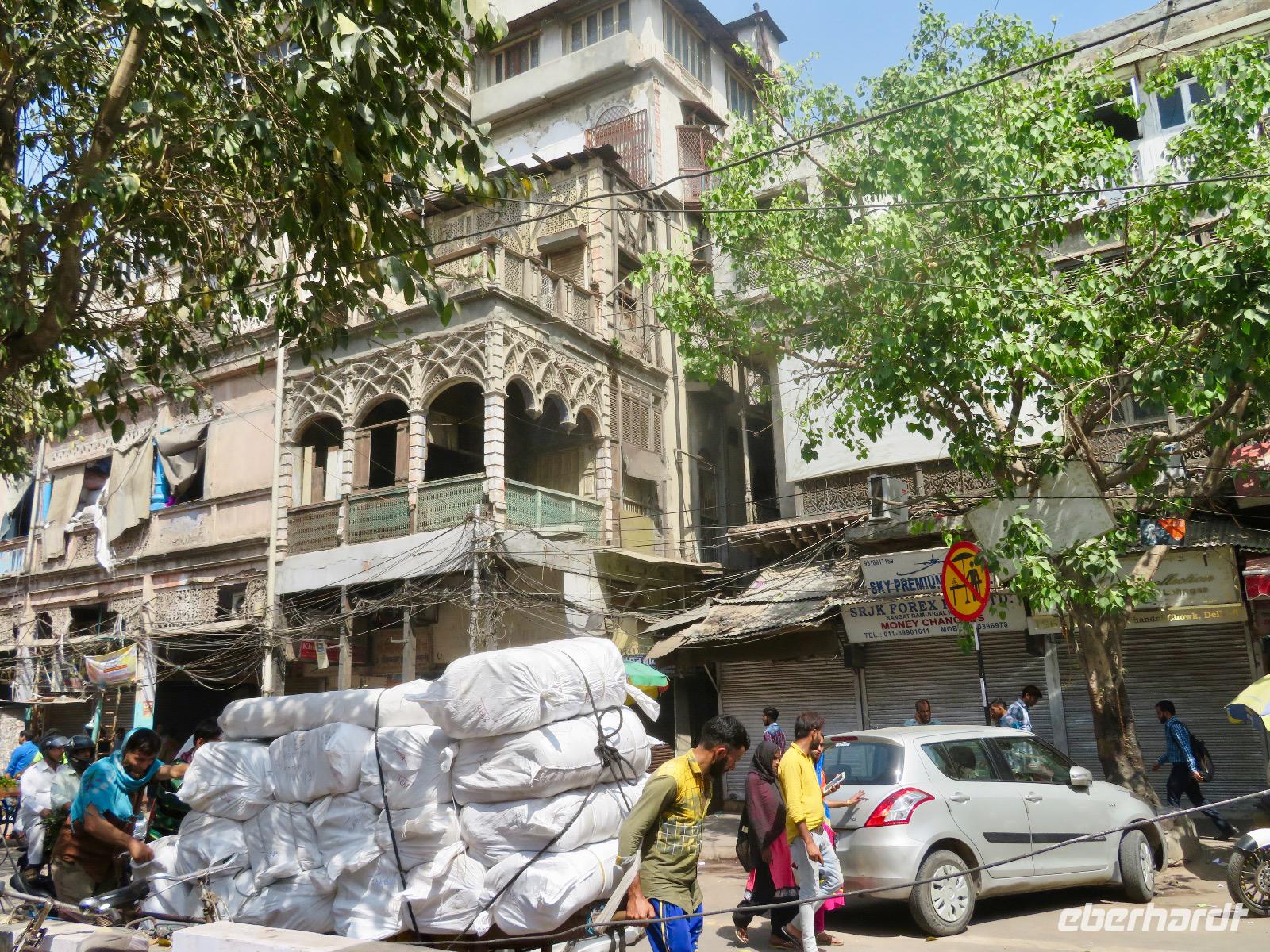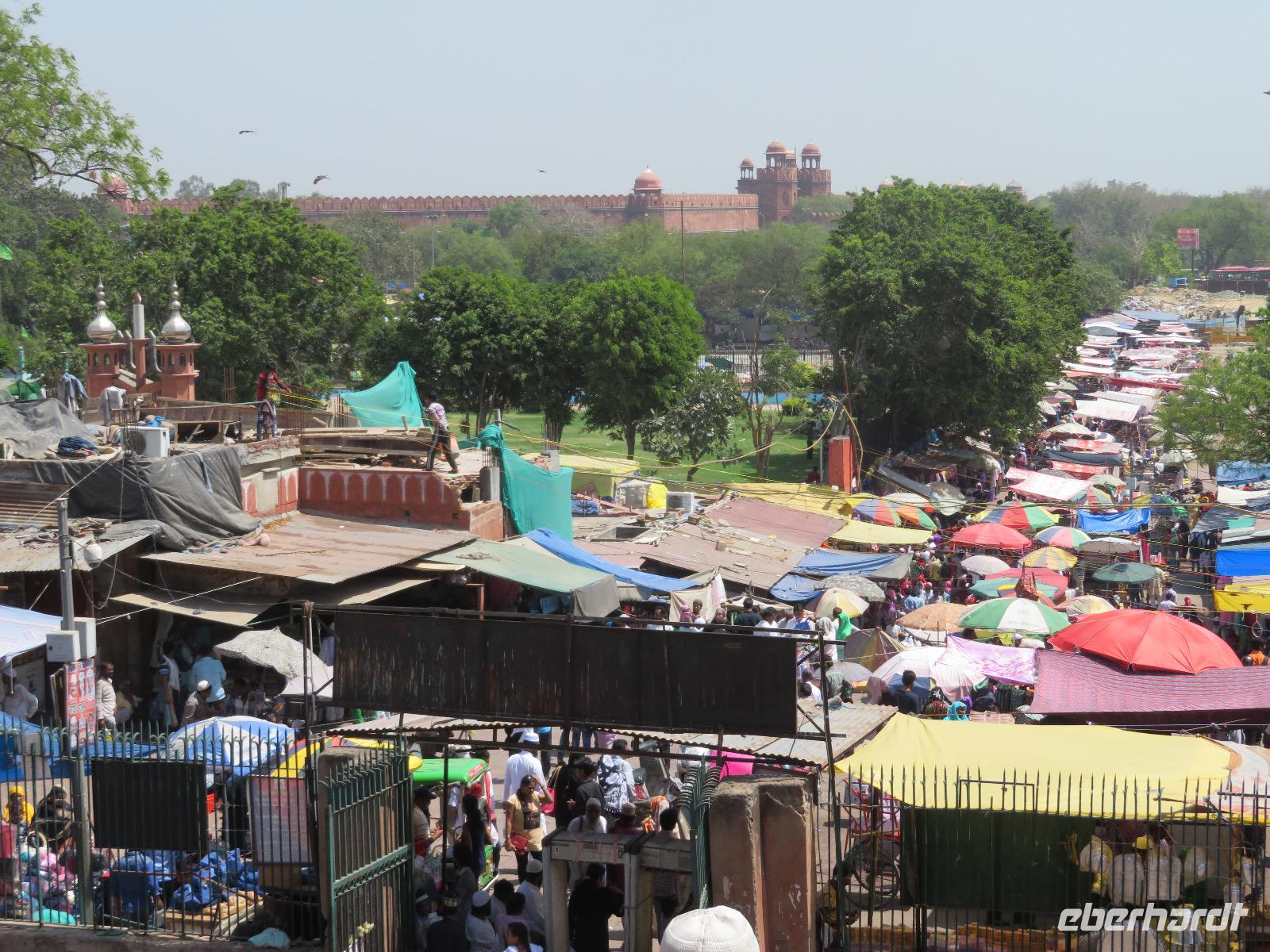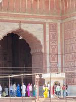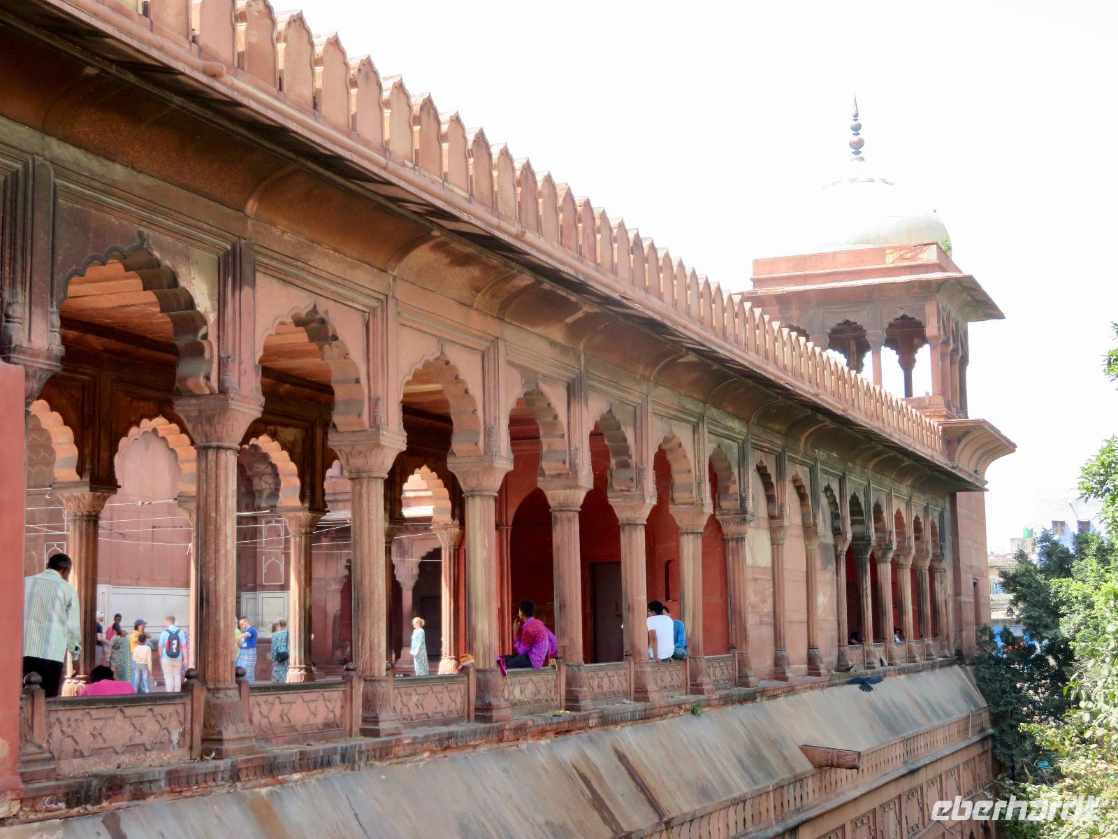 Die erste Nacht im unbekannten Bett war nicht für alle gleichermaßen erholsam. Doch wir sind neugierig auf dieses Land und stecken die Müdigkeit weg. Es tolles Abenteuer steht uns bevor. Dei der bedeutendsten Sehenswürdigkeiten Alt- und Neu-Delhis wollen wir entdecken. Heute ist Samstag und unser Bus bringt uns durch den „nicht ganz so wilden" Verkehr nach Alt-Delhi. - In unserem europäischen Verkehrshorizont von „nicht ganz so wild" keine Spur. Erster Stopp erfolgt am Roten Fort. Hier wechseln wir das Verkehrsmittel. Es sind Rikschas für uns organisiert, die für einen unvergesslichen, persönlichen und hautnahen Kontakt mit dem indischen Verkehr sorgen. Durch durch die engen Gassen schieben wir uns vorbei an hunderten von Menschen, heiligen Kühen, links und rechts hupte es von Rikschas, Tuk Tuks, Autos ... wow .. welch eine andere Welt, aber wir geniessen sie in vollen Zügen. Wir überleben die Fahrt durch dieses berühmte Bollywoodviertel bis hin zur Freitagsmoschee mit breitem Grinsen. Mit besonders farbenfrohen Kleidern ausgestattet, besichtigen wir das riesige Areal. Weiter vorbei an den verrückt gezogenen Elektrokabeln erreichen wir die Mahatma Gandhi Gedenkstätte. Ein privater Bänker kommt zu uns in den Bus und versorgt uns mit etwas Kapital in der Landeswährung Rupie. Das erspart uns langes Anstehen an den Banken und außerdem dürften wir offiziell nach der Währungsreform täglich nur einen kleinen Betrag von 80 Euro umtauschen. Doch in Indien ist alles möglich, so auch der private Geldtausch... Psst...