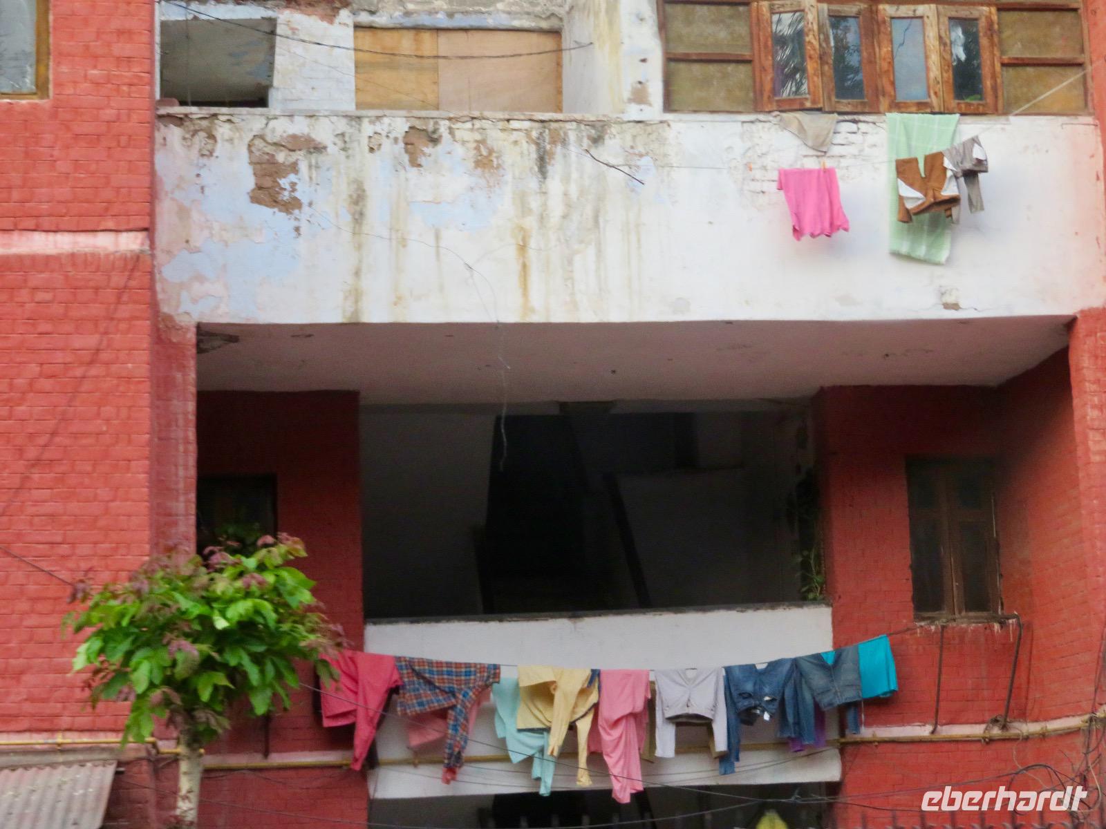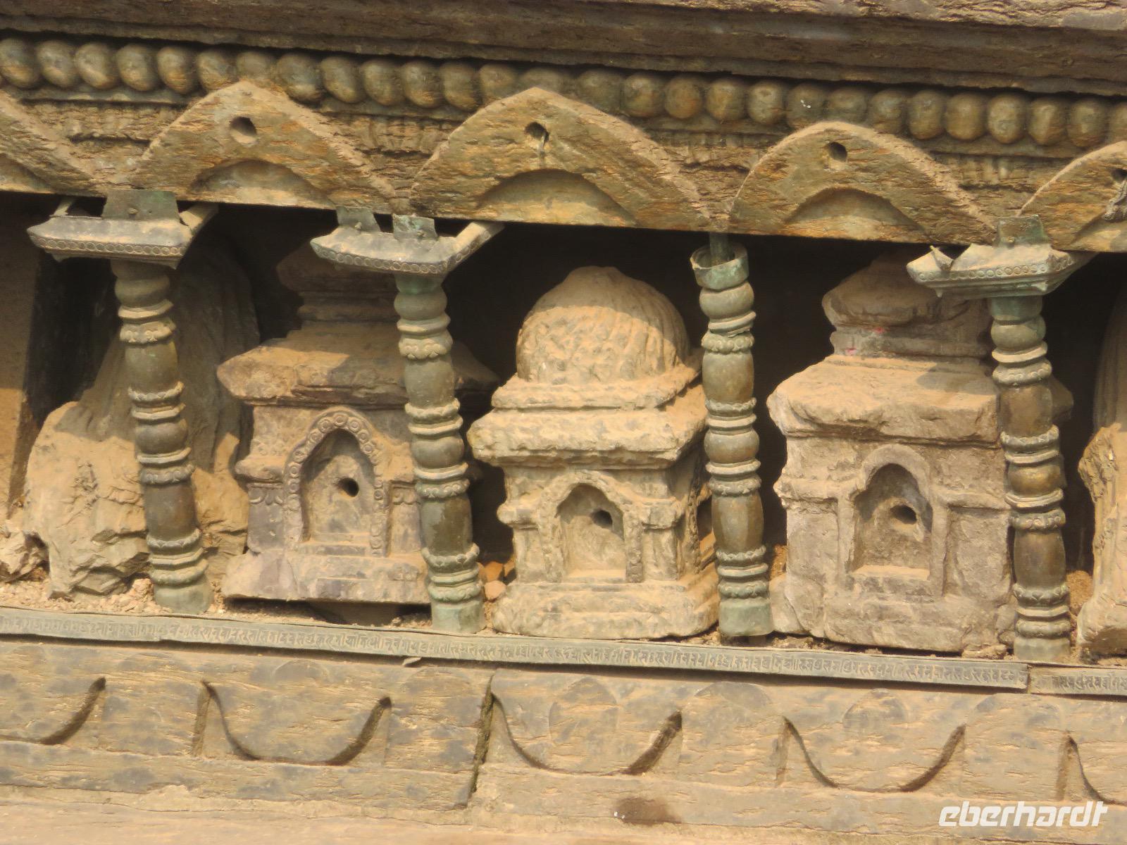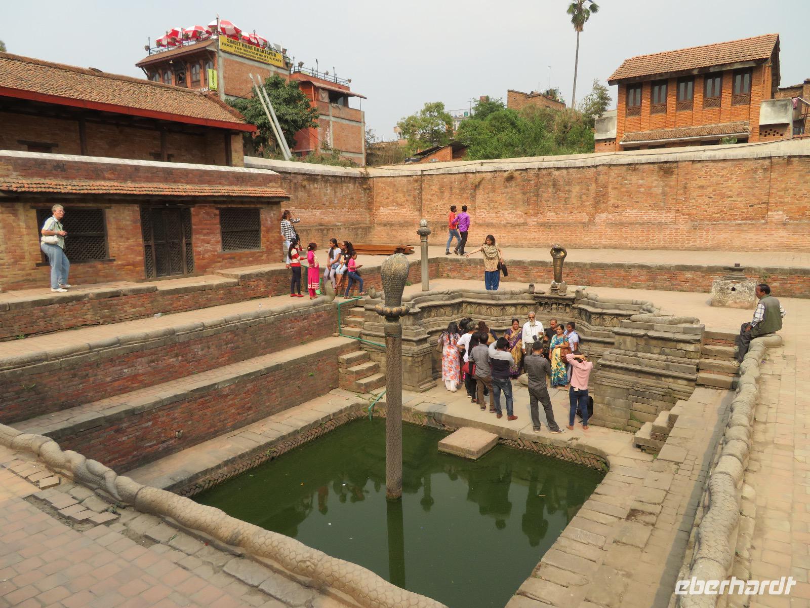 Der historische Stadtkern von Bhaktapur wurde auch mit deutscher Hilfe rekonstruiert. Das Autofahren ist dort zwar verboten, trotzdem herrscht ein Gewirr von Menschen und hupenden Motorradfahrern an allen Ecken. Wir schauen uns die alte Durbar Square und kleine Gassen mit den unzähligen Läden und Verkaufsständen an. Dann besichtigen wir noch einige Tempel von außen und den Königspalast. Die Spuren des Erdbebens von 2015 sind nicht zu übersehen, doch sie nehmen dem Ganzen die ehrwürdige Anmut nicht.
