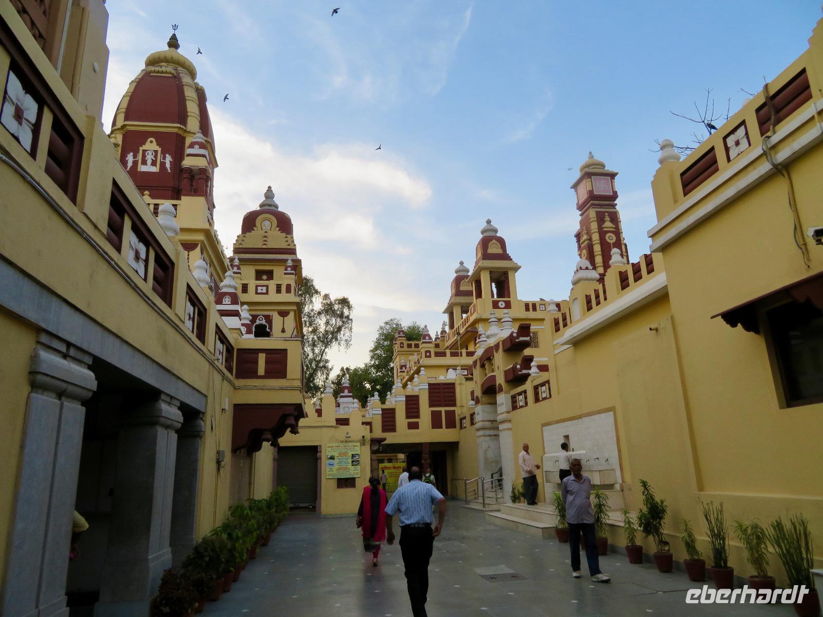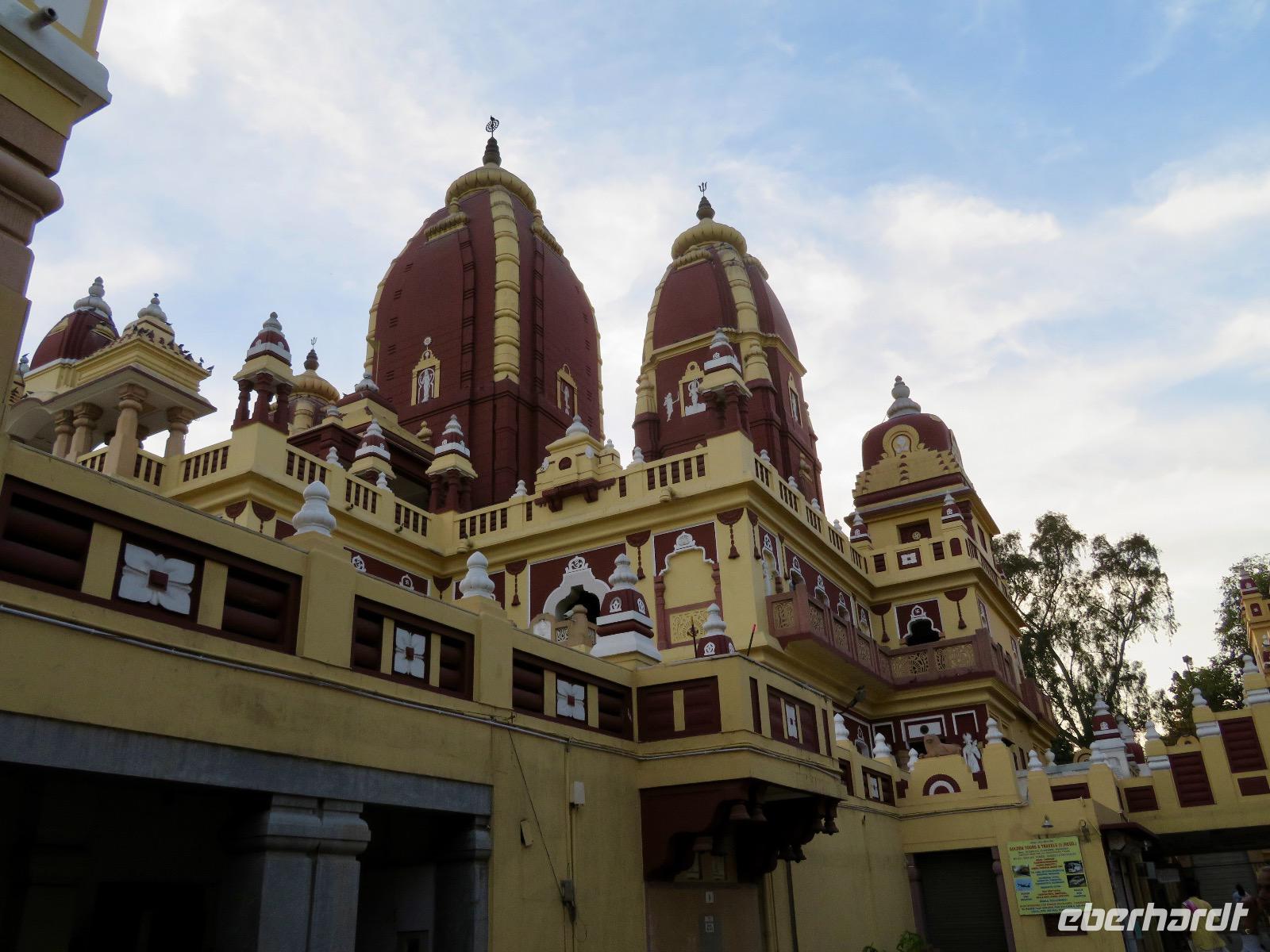 Einen besonderen Tempel möchten Bhawani und Anh den Reisegästen noch zeigen. Der private Laxmi Narayan Mandir-Tempel ist mit wunderschönen Steinornamenten aus buntem Mamor verziert und erzählt mit diesen Steingemälden die Geschichte des hinduistischen Glaubens. In einem Handwerksgeschäft stöbern wir durch erste Souvenirs und machen eine kleine Sari-Anprobe, bevor es zurück ins Hotel geht. So interessant dieser erste Tag in Indien ist, sind wir von der kurzen Nacht, den vielen Erlebnissen des Tages und der Wärme in für uns eigentlich winterlicher Zeit und der Fremde, die schon zur Nähe wurde, rechtsschaffend müde und schlafen bald, um Kraft für kommende Erlebnisse zu tanken.