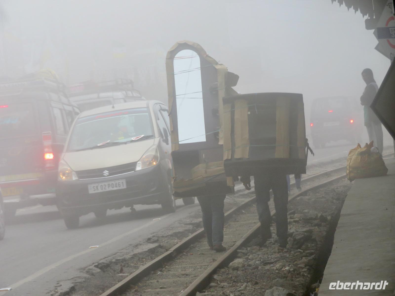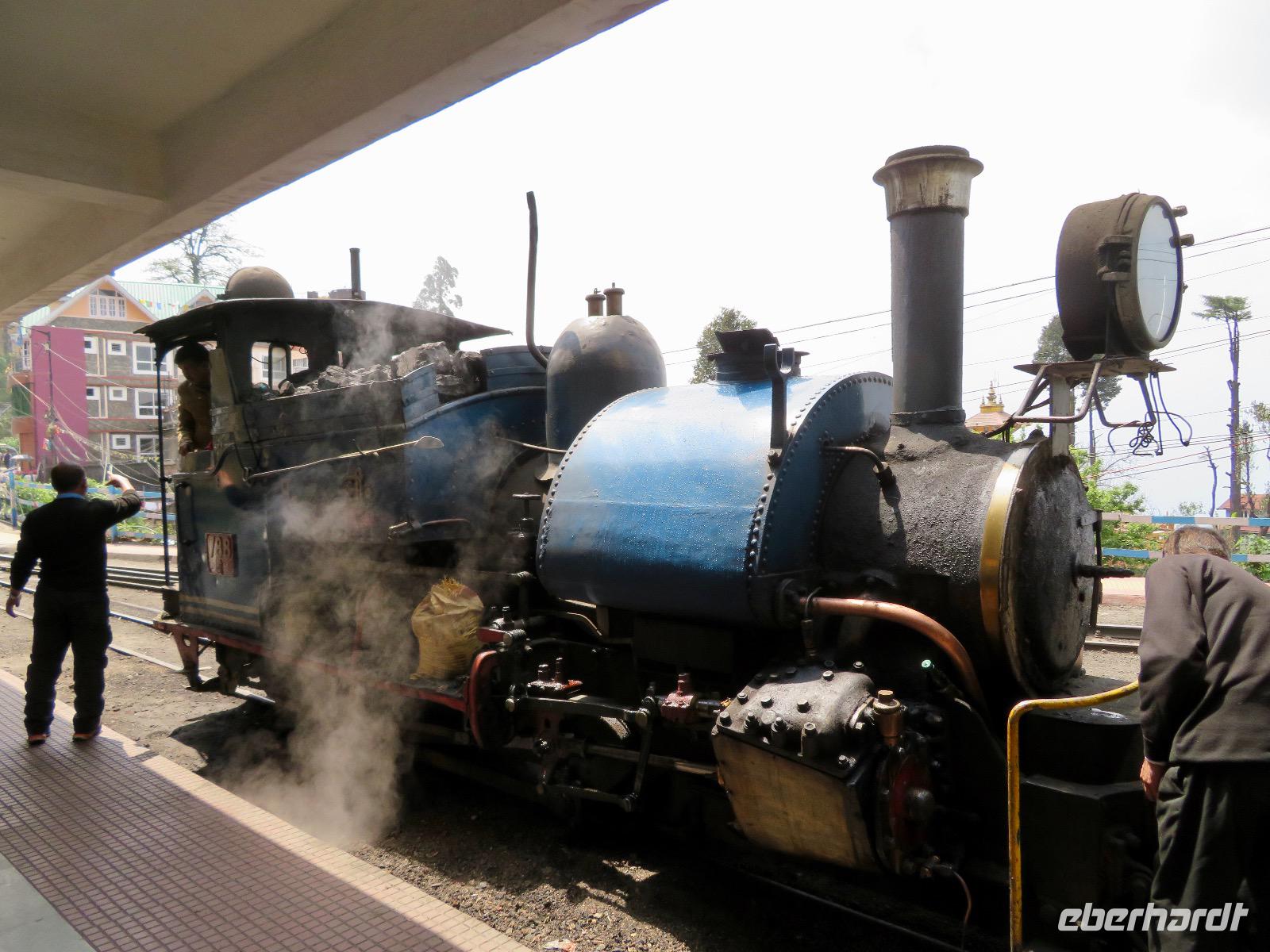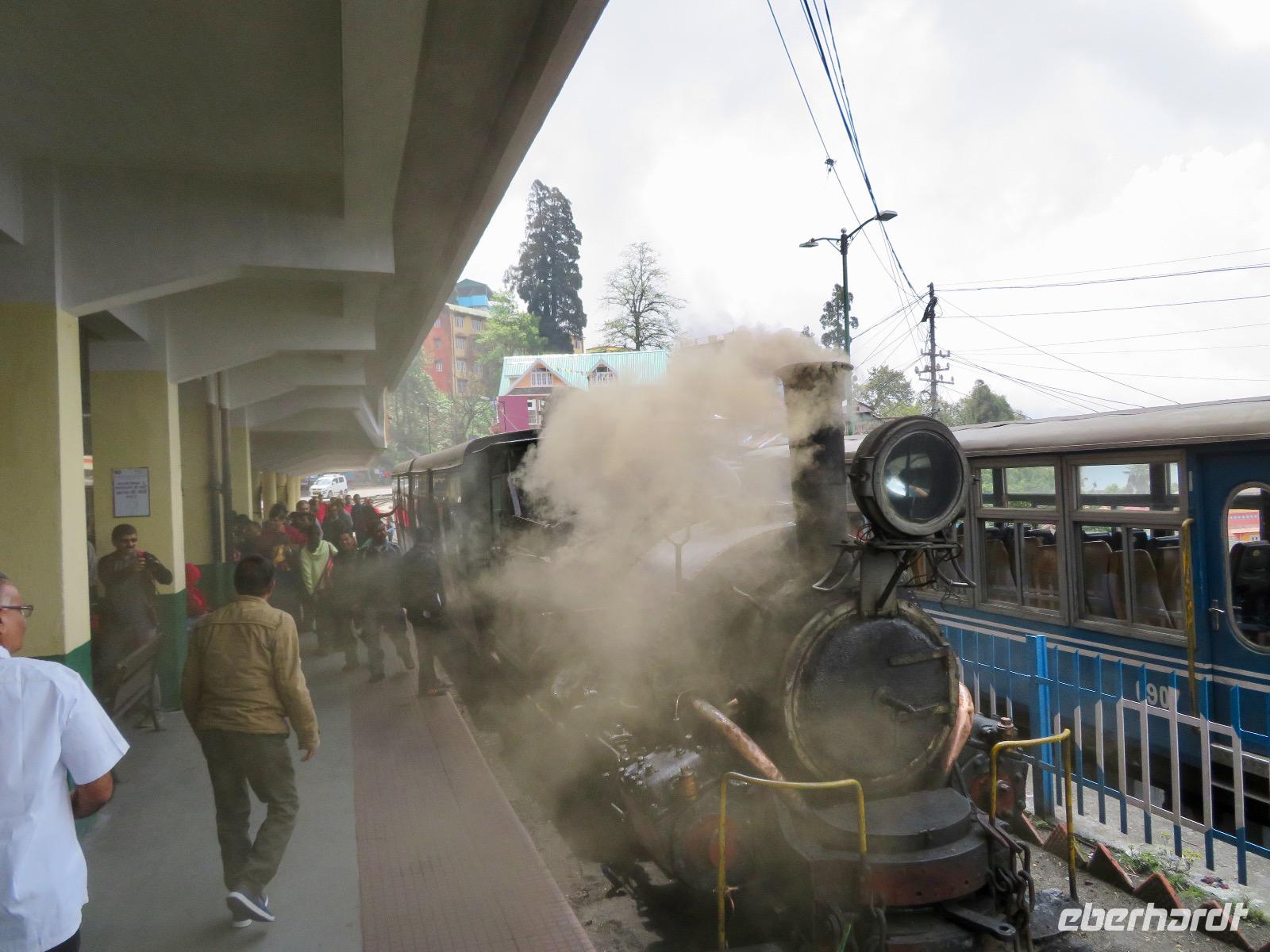 Der nächste Programmpunkt soll die Herzen von Eisenbahnfreunde höher schlagen lassen. Am Bahnhof von Darjeeling herrscht reges Treiben. Es ist üblich mit schwerer Last auf dem Kopf und Rücken die Bahngleise entlang zu laufen oder sich hier für ein kleines Pläuschchen mit Freunden zu halten. Und wie kann es anders sein, als dass unsere Dampflokomotive Verspätung hatte, das sind wir ja inzwischen gewohnt. Auf der einstündigen Fahrt durch das Städtchen bis Ghum erleben wir das bunte aber auch sehr harte Alltagsleben der Nordinder.Im Zoologischen Park begegnen wir zahlreiche unter Naturschutz stehende Tiere, die in Nordindien zu finden sind und die teilweise auch vor dem Aussterben bedroht sind wie der Schneepanter, der Himalayawolf sowie der kleine freche Rote Panter. Im Mount Everest Museum erfahren wir Interessantes zur gefährlichen Besteigerung der höchsten Berge der Welt und dessen erste Besteiger Edmund Hillary und Tenzing Norgay im Jahre 1953. Love, der örtliche Vertreter unserer Partneragentur verrät, dass damals Queen Victoria wissen wollte, wie groß ihr Reich war und beauftragte Sir Everest dessen höchsten Punkt zu finden. So benannte Sir Everest den höchsten Punkt des damaligen britischen Reiches nach sich, um Queen Victoria vom Ausmaß des Königreiches zu bekunden.
