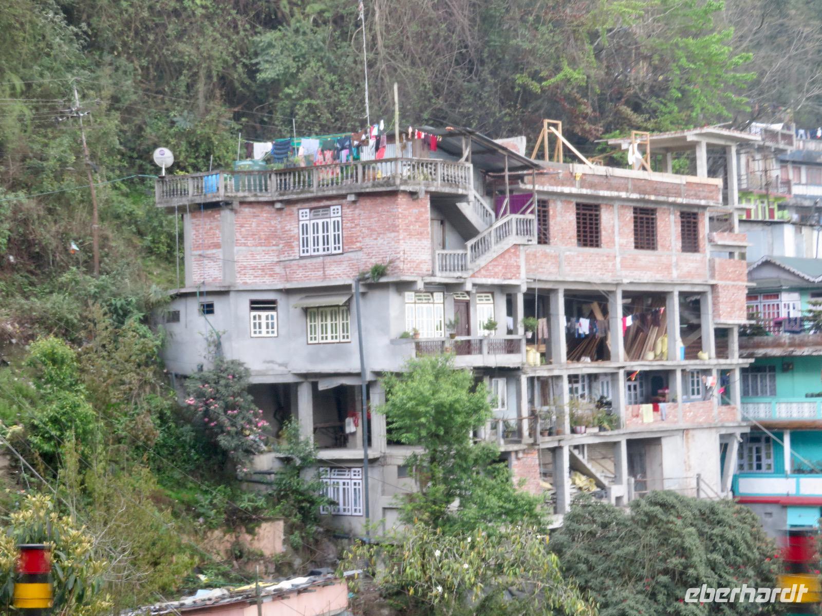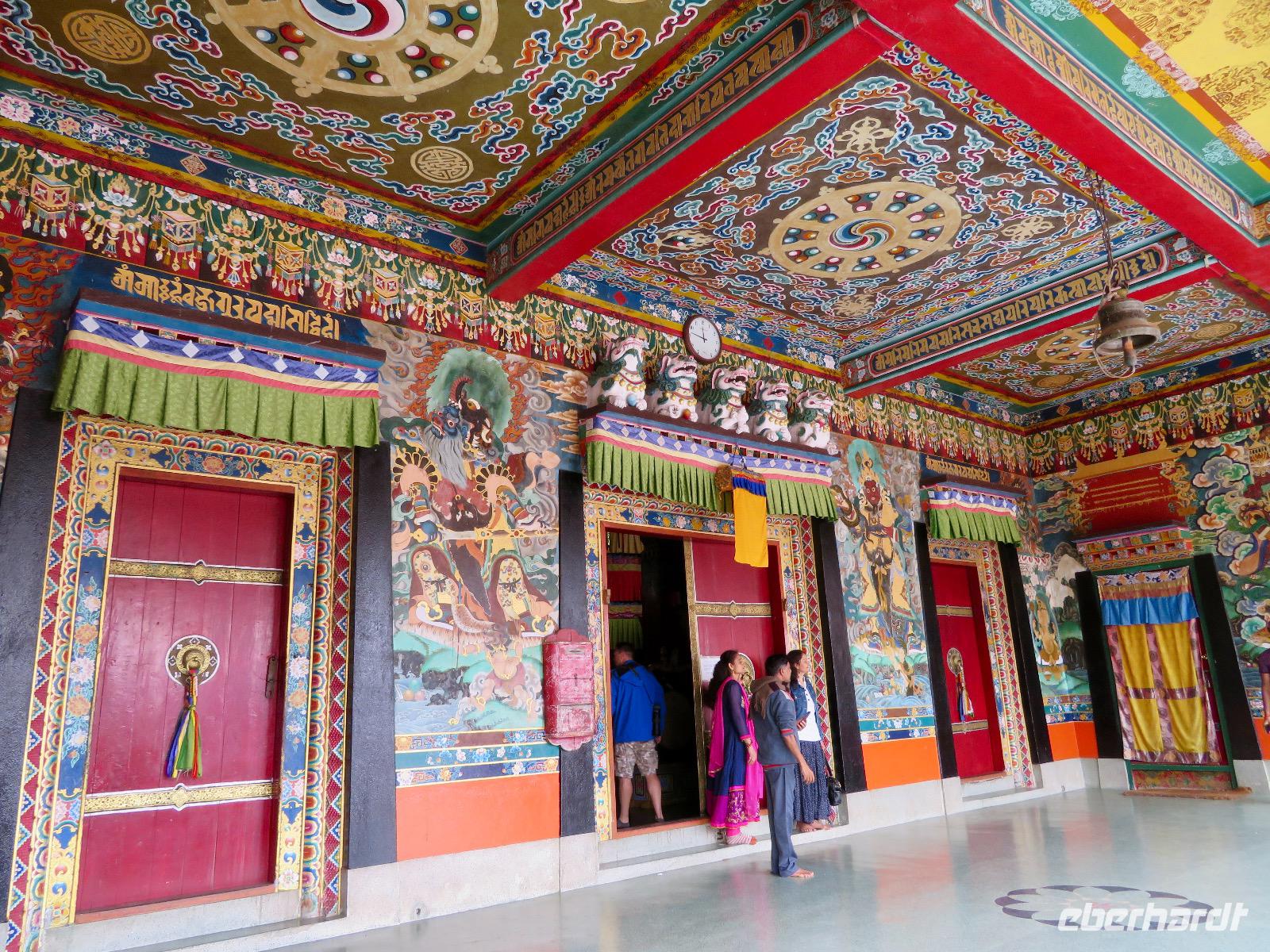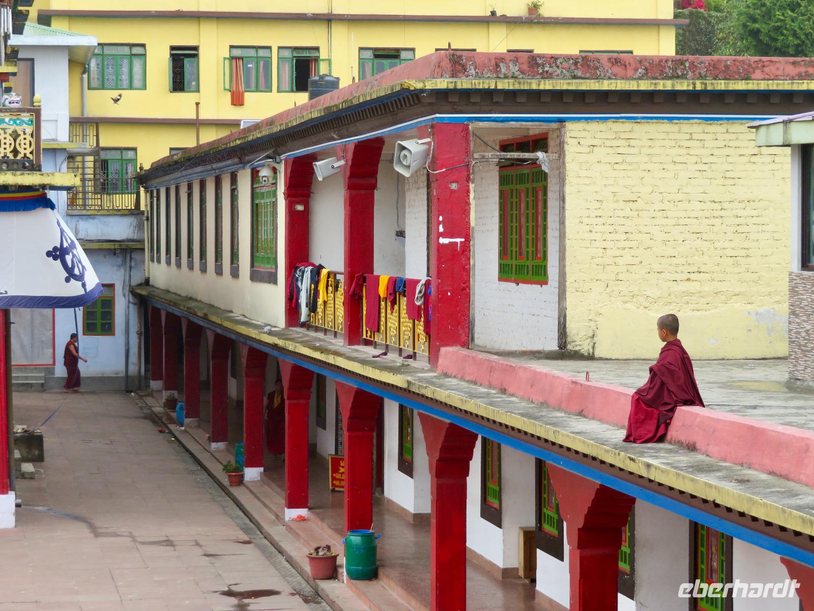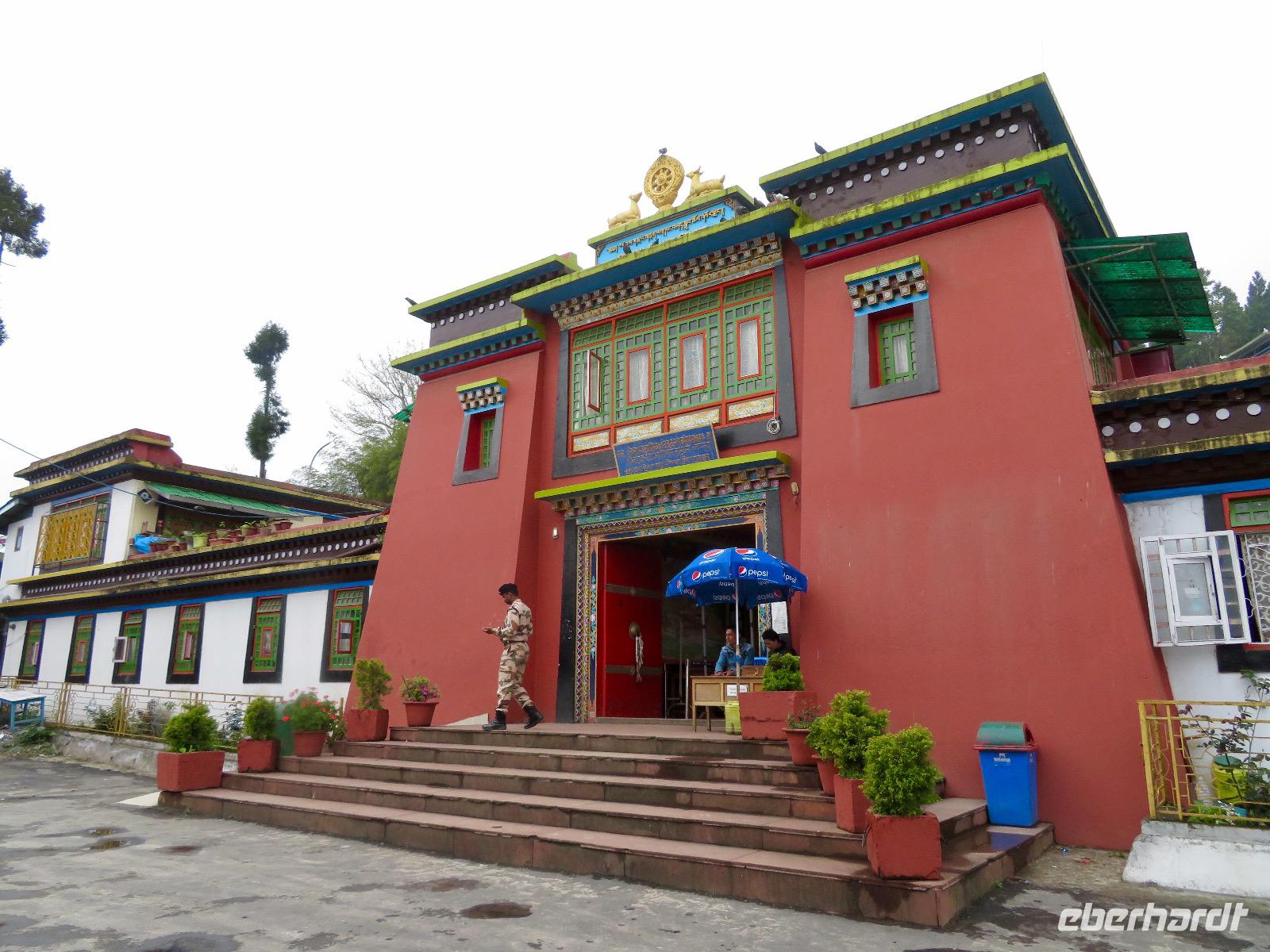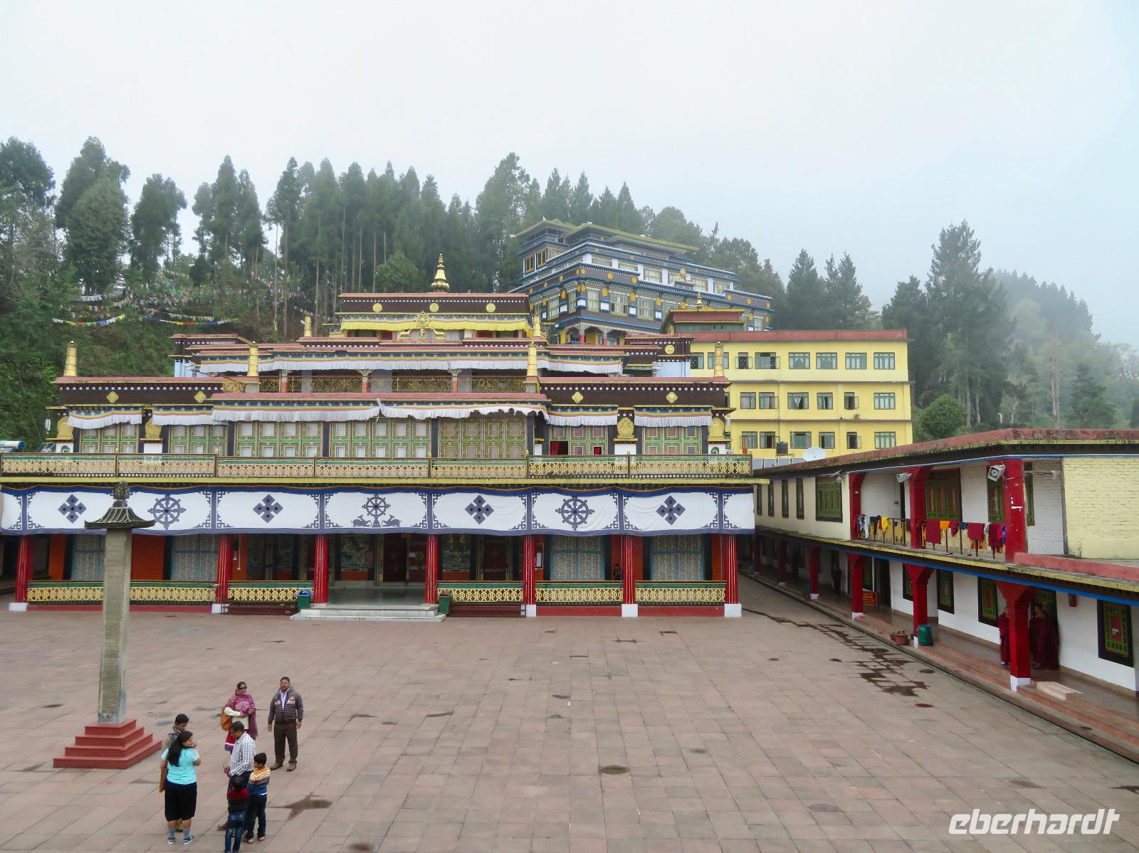 Des Bundesland Sikkim ist nach Goa das zweitkleinste Indiens. Hier gibt es nur 0,1 % Arbeitslosigkeit. Wir sehen am Stadtbild Gangtoks, dass es wesentlich sauberer ist als Westbengalen und die Häuser sich in einem weitaus besseren Zustand befinden. Das größte und heiligste Kloster vom ehemaligen Königreich Sikkim ist Rumtek. Um eintreten zu können, müssen wir uns alle eine Passkontrolle unterziehen. Doch die Passkontrollen laufen hier etwas gelassener ab als bei den deutschen Behörden, denn wir müssen nur hochzeigen, dass wir einen Pass besitzen. Ob es tatsächlich unser eigener Pass ist...