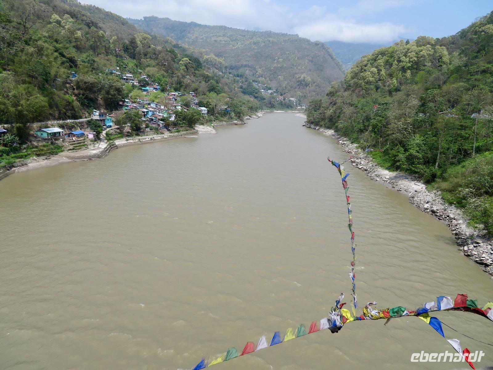 Die Fahrt nach Sikkim erweist sich als sehr abwechslungsreich. Am Morgen grüßen wir geduldige Teepflückerinnen bei ihrer Arbeit, halten hier und da für einen Fotostopp mit Blick über die grünen Berge, Shininbäume, Weihnachststerne und Kardamomplantagen. Wir passieren zahlreiche hübsche Dörfer mit bunten Häusern, begegnen auf den Straßen wie üblich unzählige Jeeps und besuchen eine kleine Grundschule. Die kleinen Kinder sind alle in ihren gepflegten Uniformen gekleidet und schauen neugierig auf die heute unangemeldeten Besucher. Sehr aufgeschlossen stellen sie uns ihre Namen vor, tragen uns mit Enthusiasmus Gedichte und Lieder vor und lernen von uns Auf Wiedersehen zu sagen. Am Zusammenfluss von Teesta und Ringt biegen wir in das Bundesland Sikkim ein, welches als gesonderte Zone gilt. Während sich Bhawani und Anh um die Visa kümmern, legt die Reisegruppe eine Mittagspause ein. Kurze Zeit später erreichen wir unser Hotel in Gangtok. Am Nachmittag bietet sich an, mit kleinen Taxis zur berühmten MG Road (Mahatma Gandhi-Straße) zu fahren. Auf dieser bekanntesten Fußgängerstraße schlängeln wir uns durch, links und rechts zum bärsten voll mit Waren ausgestellte Läden, Straßenmusikanten und reges Handeln und Feilschen an den Straßenständen. Im einheimischen bunten Basar werden alle Sinne von sehen, hören, fühlen, riechen und schmecken bedient. Das schönste erwartet uns auf der Dachterrasse: Ein Blick von Gangtok´s Lichtermeer über der Altstadt und die mit kleinen Häuschen geschmückte Berghänge zur Abenddämmerung.
