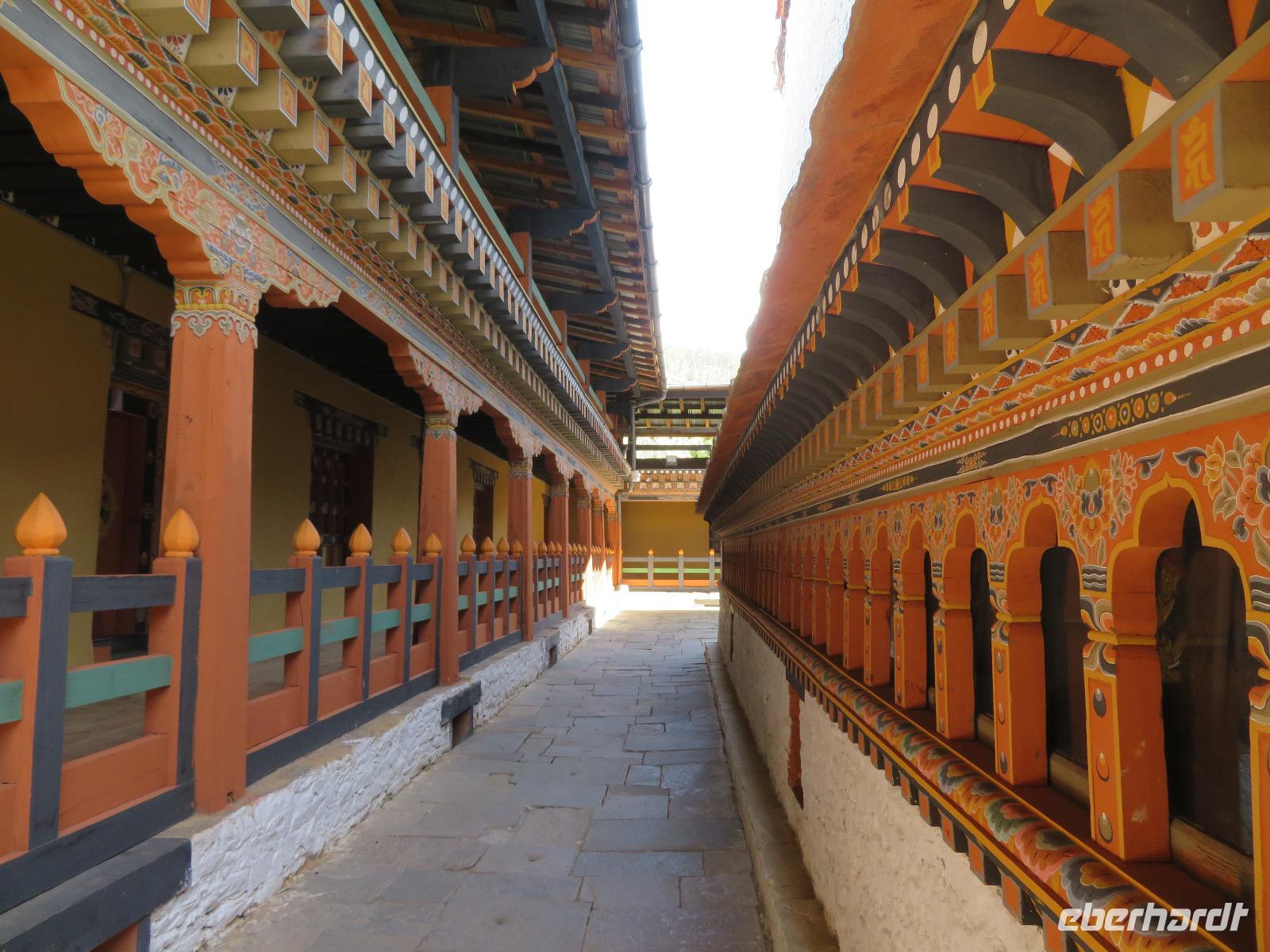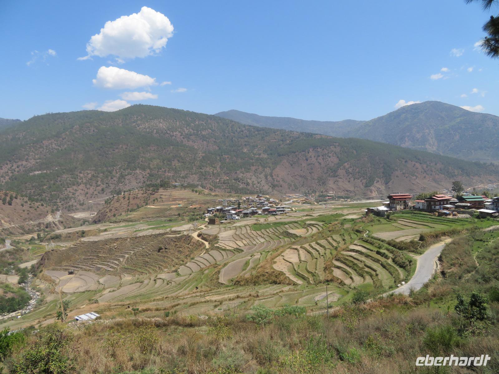 Eine kurze Fahrt durch idyllisches Landleben bringt uns nach Paro. Anschließend bekommen wir etwas Bewegung beim Aufsteigen zur Burgruine des Drukyel-Dzong, einer einst gewaltigen Burganlage, die aber schon vor langer Zeit abbrannte und danach nicht wieder aufgebaut wurde.
