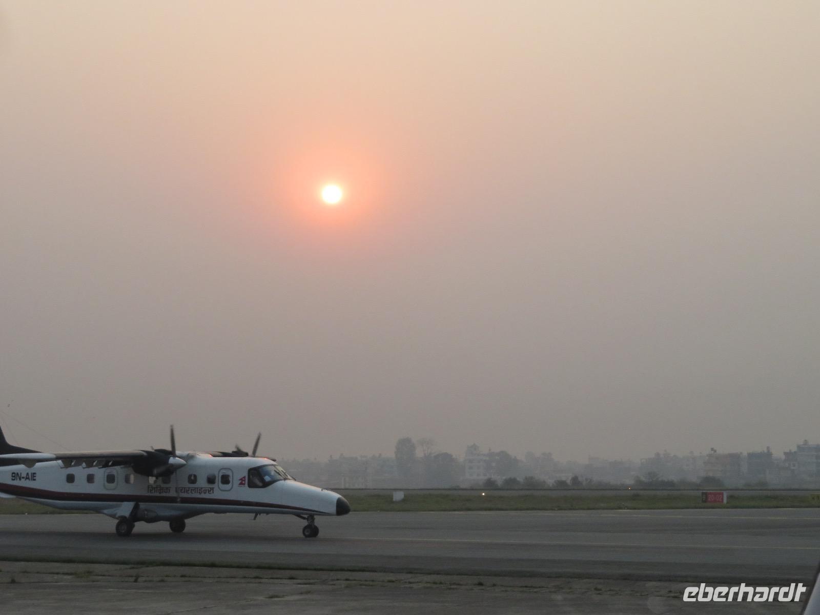 Am kleinen Flughafen von Paro herrscht am Morgen schon reges Treiben. Nach einigen sehr vorsichtigen Gepäckskontrollen, Ausfüllen von Ausreiseformularen und Check-in mit viel Gelassenheit des Personals sind wir bereit für unseren Fug nach Nepal. Leider ist unsere Flugmaschine noch nicht bereit. Aufgrund von Nebel kann sie in Kathmandu noch nicht abheben und komme mit einer Verspätung an. Alle 45 Minuten wird die nächste Abflugszeit durchgesagt. Um die Warterei ein wenig angenehmer zu gestalten, werden unsere Snacks, die eigentlich während des Fluges ausgegeben werden, schon jetzt verteilt. Immerhin ist auch schon Mittagszeit. Endlich beginnt unser kurzer Flug von gut einer Stunde in die nepalesische Hauptstadt. Hier werden erneut Formulare ausgefüllt, Visastempel eingeholt und das Gepäck in dem Chaos am Flughafen gesucht. Ein freundlicher Mitarbeiter des Bodenpersonals macht uns auf die gesuchten Koffer aufmerksam. Zum Glück sind alle Koffer mitgekommen. Reiseleiter Abhishek, Sunil, der Chef unserer Partneragentur heißen uns in Nepal herzlich Willkommen. Schnell die Koffer auf das Autodach verladen erreichen wir in wenigen Minuten unser Hotel. Mitten ins Getümmel geworfen und staunen nicht schlecht über Kabelbäume, Tuk Tuks und die Lebensweise der Nepalsen und deren Gewohnheiten, was den Straßenverkehr betrifft. Am Abend geht es mit Kultur weiter, denn Anh hat Ihnen ein traditionelles Abendessen mit Tanz- und Musik organisiert. Reichlich Reisschnaps wird ebenfalls gereicht... Prost und auf eine schöne Zeit in Nepal!