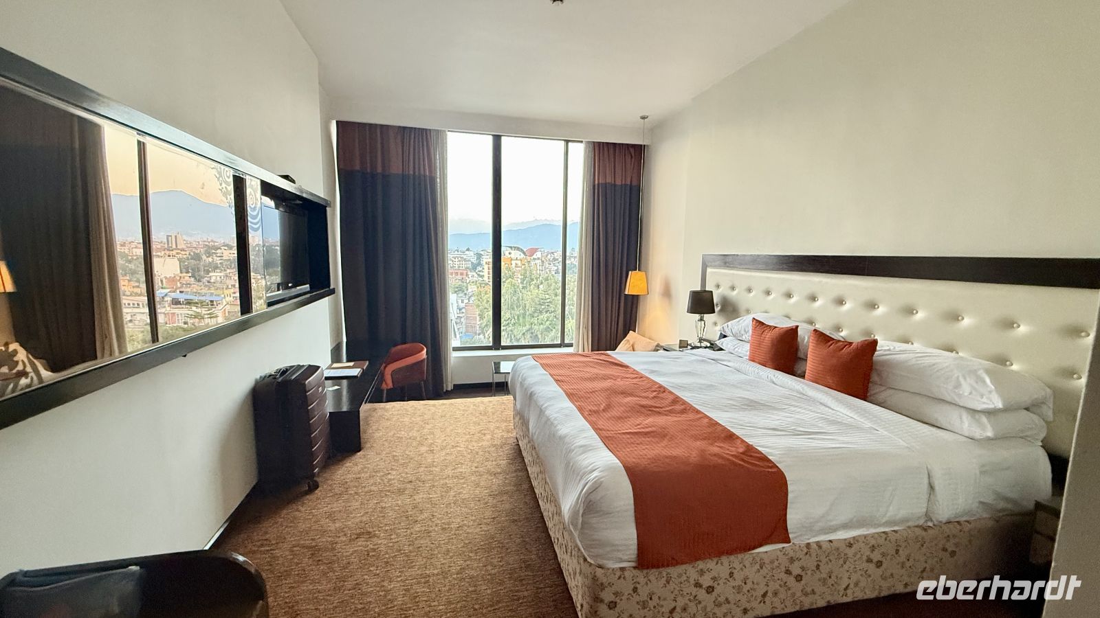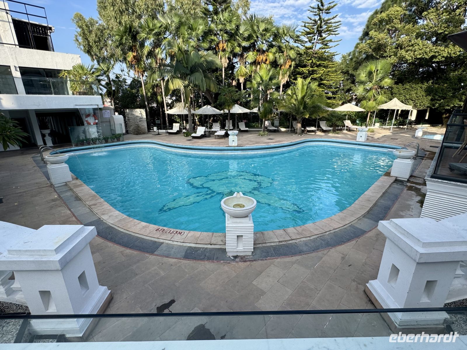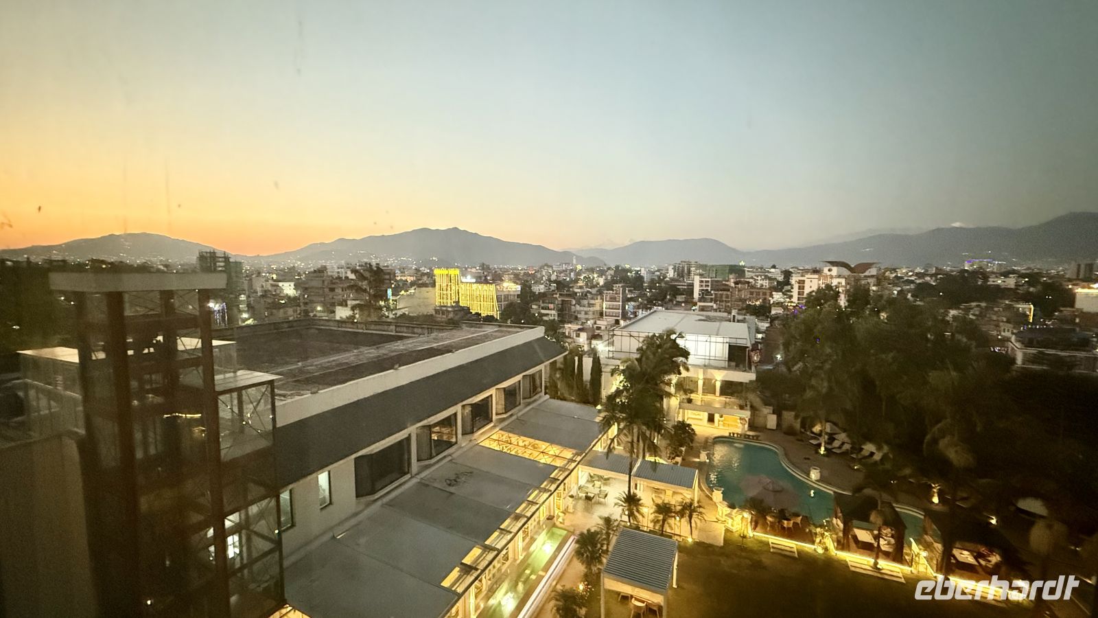Nach der Landung in Kathmandu wurden wir herzlich willkommen geheißen. Schon auf der Fahrt zu unserem Hotel merkten wir, wie unterschiedlich Nepal im Vergleich zu Bhutan ist – lebendiger, lauter, bunter und zugleich faszinierend chaotisch. Unser Hotel lag in einer schönen Anlage, die wie eine kleine Oase wirkte. Besonders der Außenpool lud zum Entspannen ein, und viele nutzten die Gelegenheit, um kurz zur Ruhe zu kommen, bevor wir unser nächstes Abenteuer starteten.