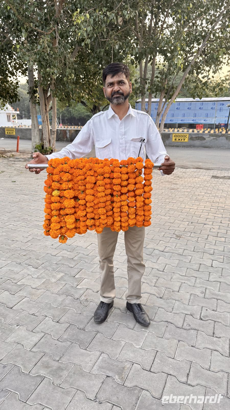 Noch etwas müde und verschlafen erreichten wir am frühen Morgen Delhi. Delhi ist die lebhafte Hauptstadt Indiens und eine der faszinierendsten Metropolen der Welt. Mit über 20 Millionen Einwohnern bildet sie das politische, wirtschaftliche und kulturelle Zentrum des Landes. Nach der Einreiseprozedur wurden wir herzlich von unserem Reiseleiter Bhawani empfangen, der uns mit einem freundlichen Lächeln und Blumenketten willkommen hieß. Anschließend fuhren wir zunächst ins Hotel, wo wir eincheckten. Wir hatten noch etwas Zeit, unsere Zimmer zu beziehen, uns kurz auszuruhen und in aller Ruhe zu frühstücken, bevor das erste große Abenteuer begann.