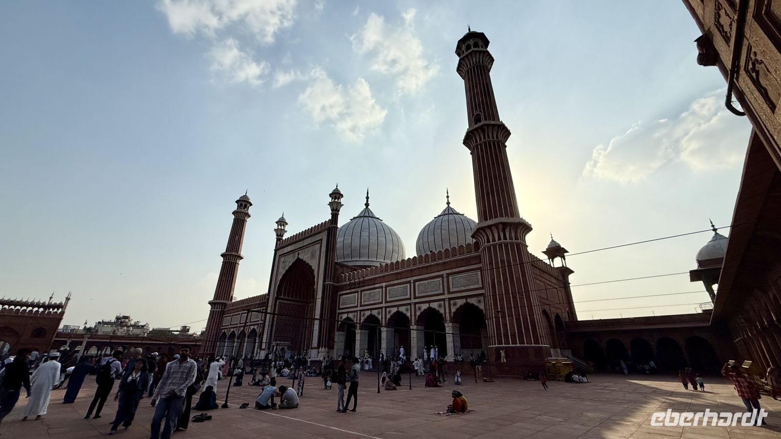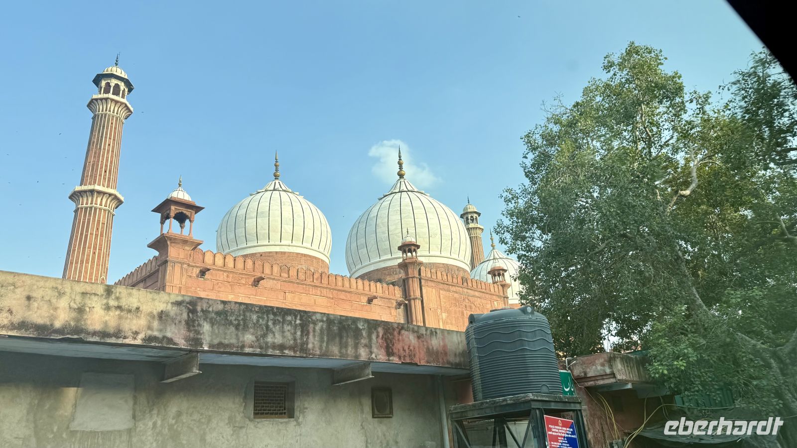 Weiter ging es zur Jama Masjid, der größten Moschee Indiens, die ebenfalls von Shah Jahan erbaut wurde. Das prachtvolle Bauwerk mit seinen drei weißen Marmorkuppeln und den zwei Minaretten bietet Platz für bis zu 25.000 Gläubige. Von den Stufen aus hatten wir einen atemberaubenden Blick über die Altstadt – ein unvergesslicher Moment.
