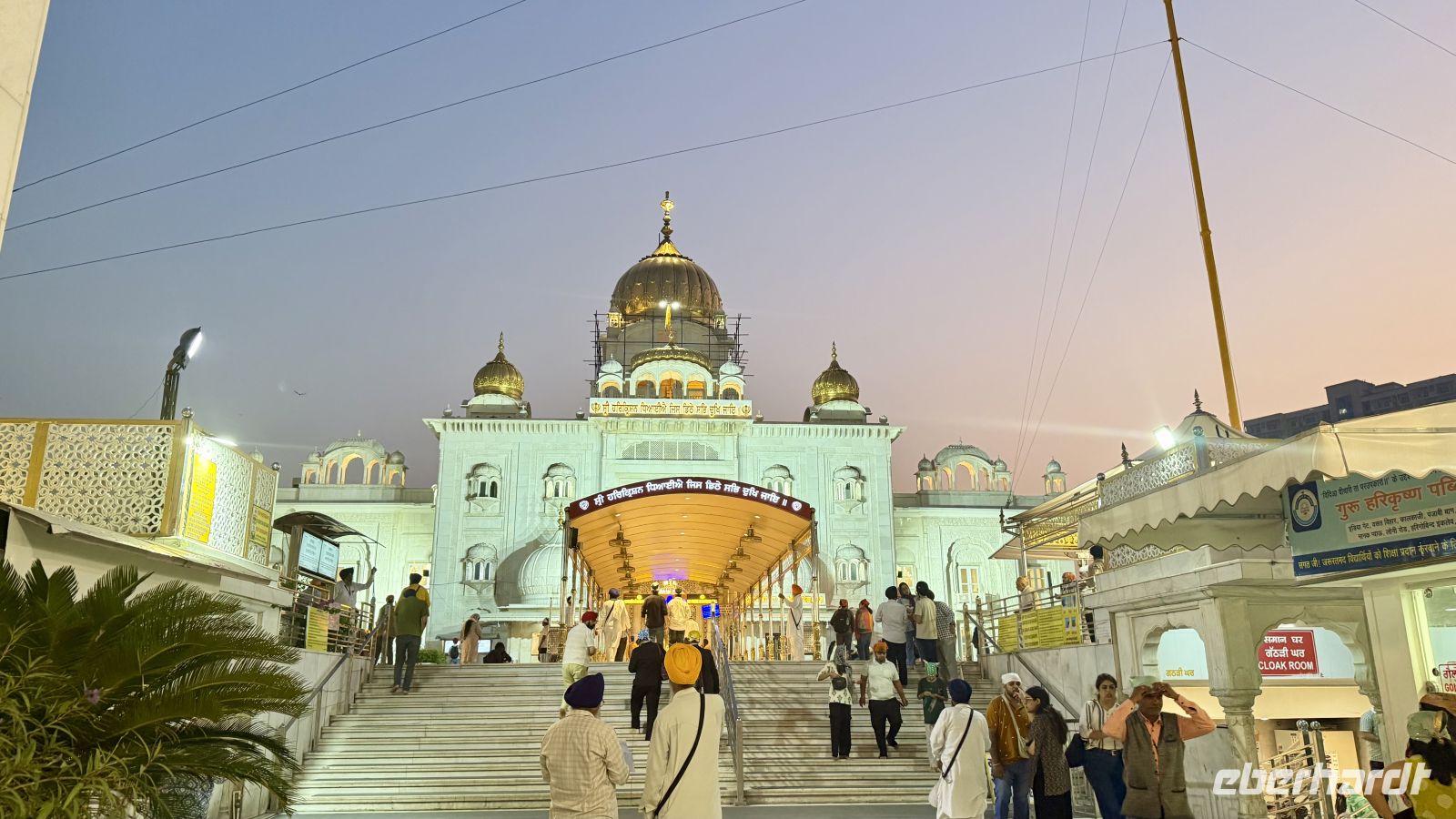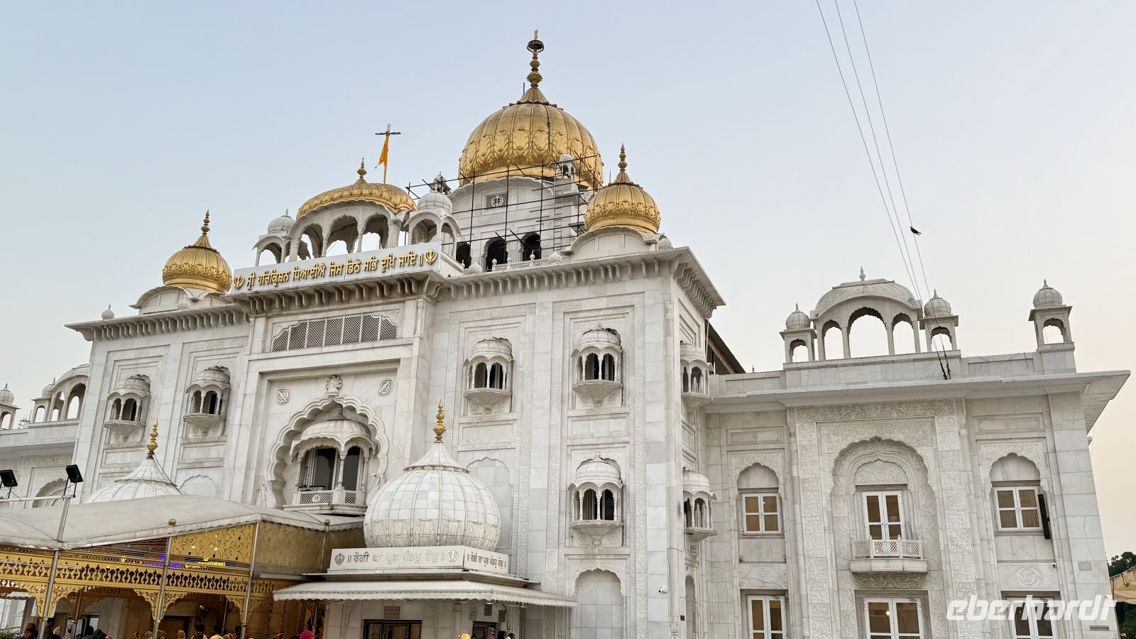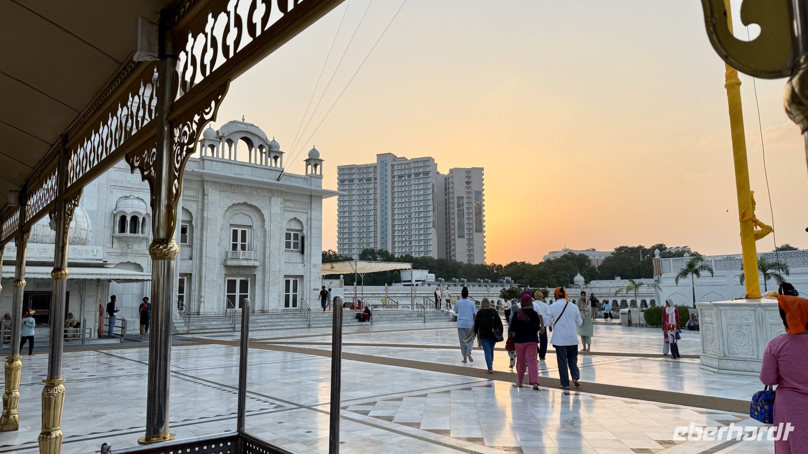 Zum krönenden Abschluss des Tages besuchten wir den Sikh-Tempel Gurudwara Bangla Sahib, einen der bedeutendsten Orte des Sikhismus in Delhi. Besonders beeindruckend war die friedliche Atmosphäre des Tempelgeländes, in dessen Zentrum ein heiliger See, der Sarovar, liegt. Wir erfuhren, dass die Sikhs an die Gleichheit aller Menschen glauben und im Tempel täglich Tausende von Besuchern – unabhängig von Religion oder Herkunft – im Langar, der Gemeinschaftsküche, kostenlos mit Speisen versorgen. Diese Geste der Offenheit und Nächstenliebe hat uns tief berührt.