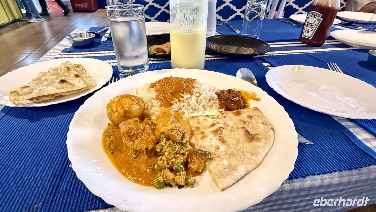 Nach diesem unvergesslichen Erlebnis stärkten wir uns bei einem leckeren landestypischen Mittagessen mit indischen Spezialitäten – duftender Basmati-Reis, würzige Currys, knusprige Papadums und natürlich frisches Naan-Brot.