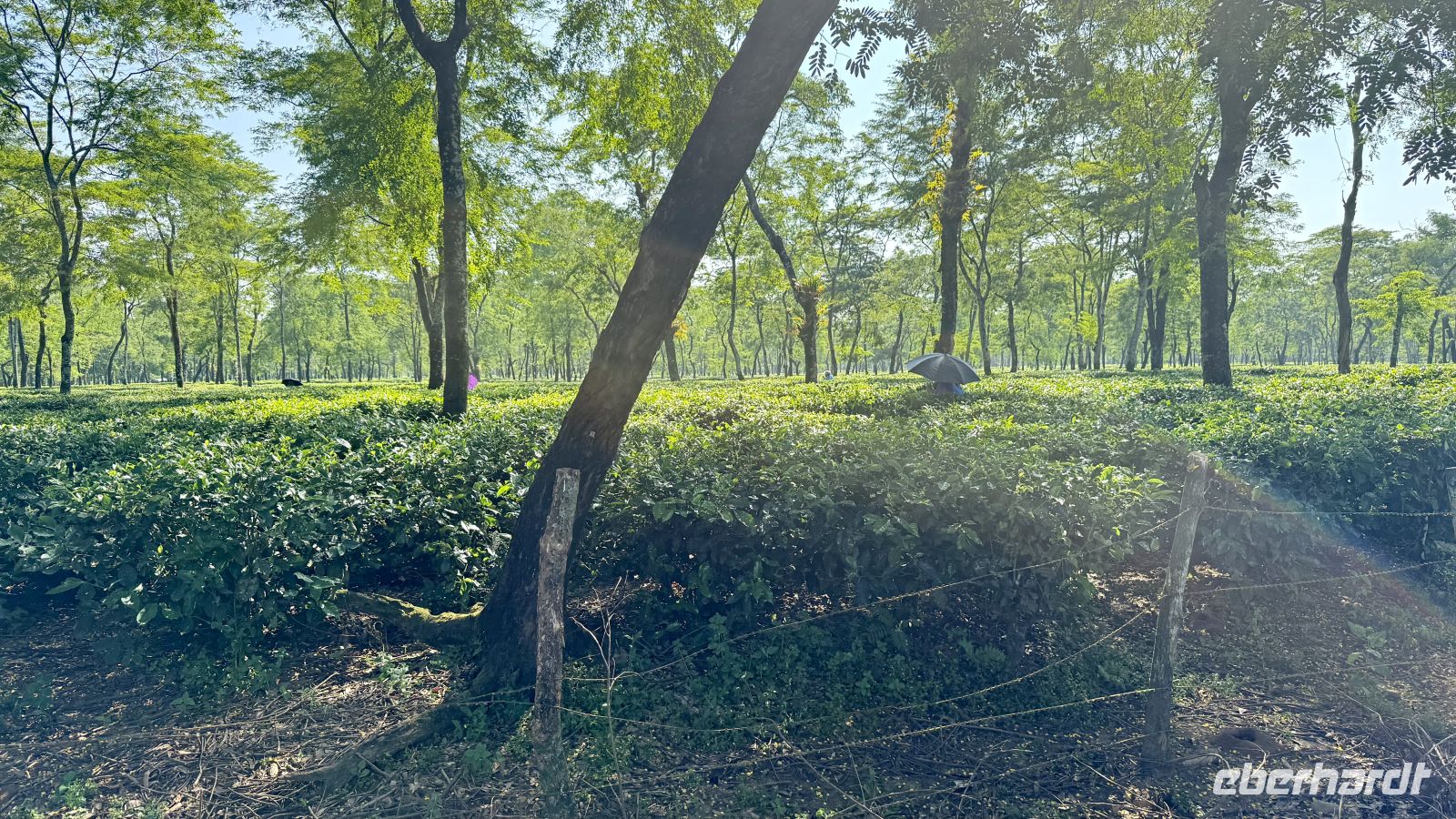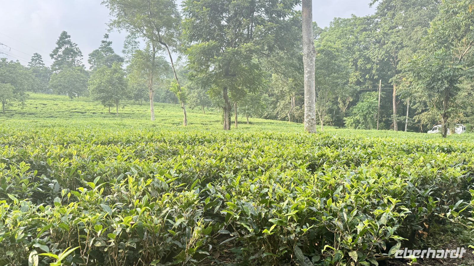 Etwas später hielten wir an einer der typischen Teeplantagen von Darjeeling. Die endlosen Reihen der sattgrünen Teebüsche erstreckten sich über die Hänge der Berge und bildeten ein faszinierendes Muster. Hier erfuhren wir, dass man von einer einzigen Teepflanze (Camellia sinensis) verschiedene Sorten gewinnen kann – je nach Verarbeitung entstehen grüner, schwarzer, weißer, Oolong- oder Pu-Erh-Tee. Besonders der Darjeeling-Tee ist für sein feines, blumiges Aroma weltberühmt und gilt als „Champagner unter den Tees“.