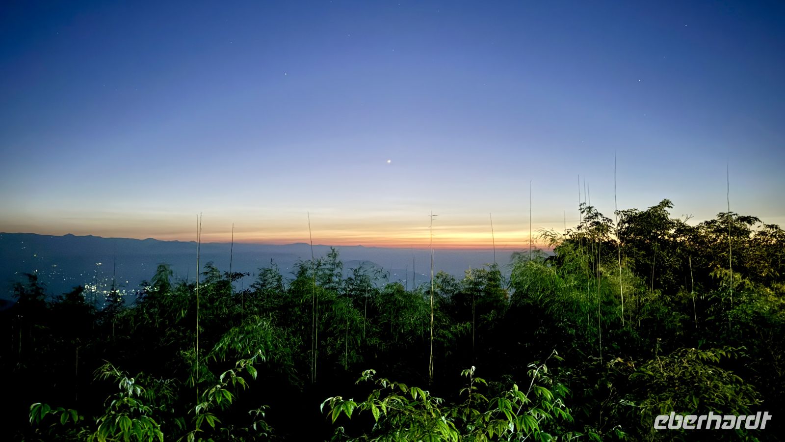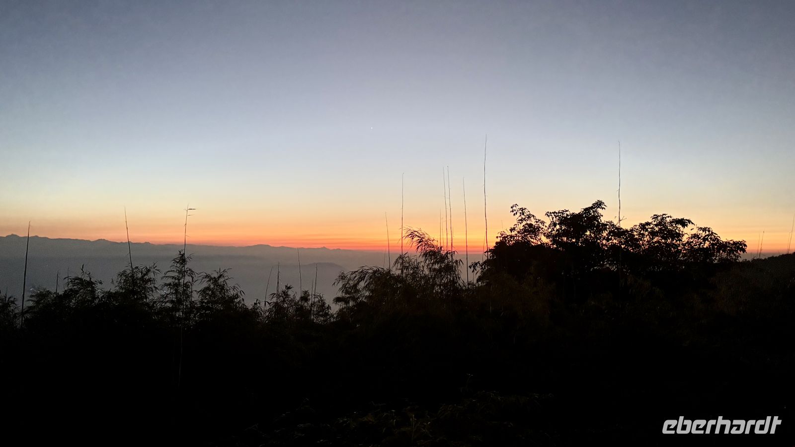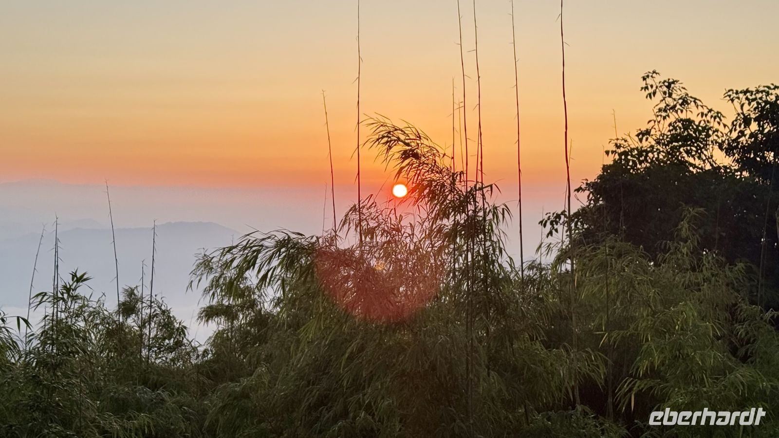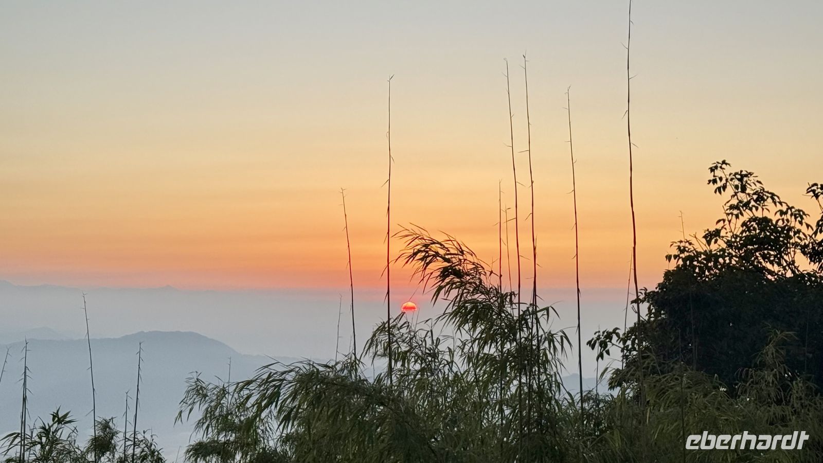 Leider schoben sich an diesem Morgen dichte Wolken über die Gebirgskette, sodass wir den erhofften Panoramablick nicht genießen konnten. Trotzdem wurden wir mit einem wunderschönen, stimmungsvollen Sonnenaufgang belohnt – die Wolken leuchteten in warmen Orange- und Rosatönen, und die frische Bergluft machte uns schnell munter. Danach freuten wir uns auf ein gemütliches Frühstück und eine heiße Tasse Kaffee oder Tee, die uns nach der morgendlichen Kälte besonders gut schmeckte.