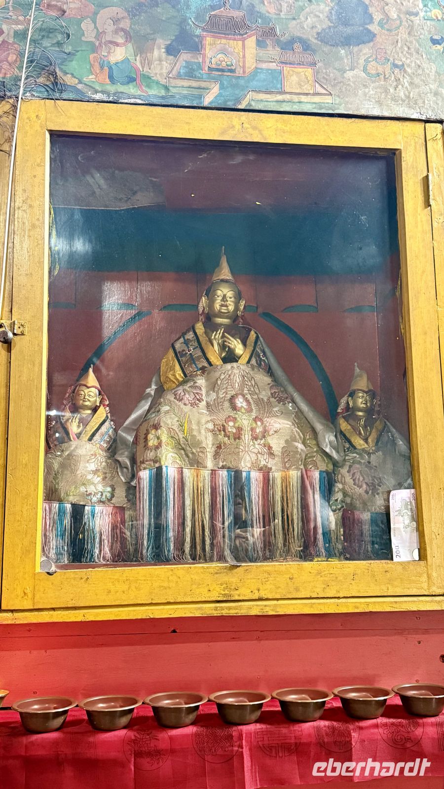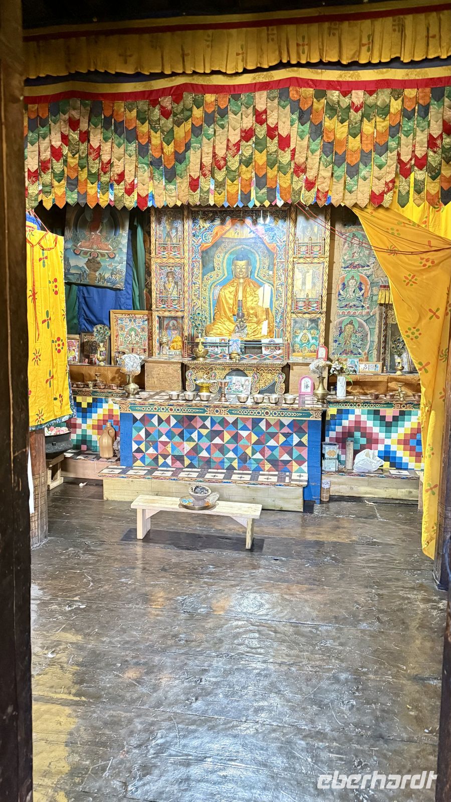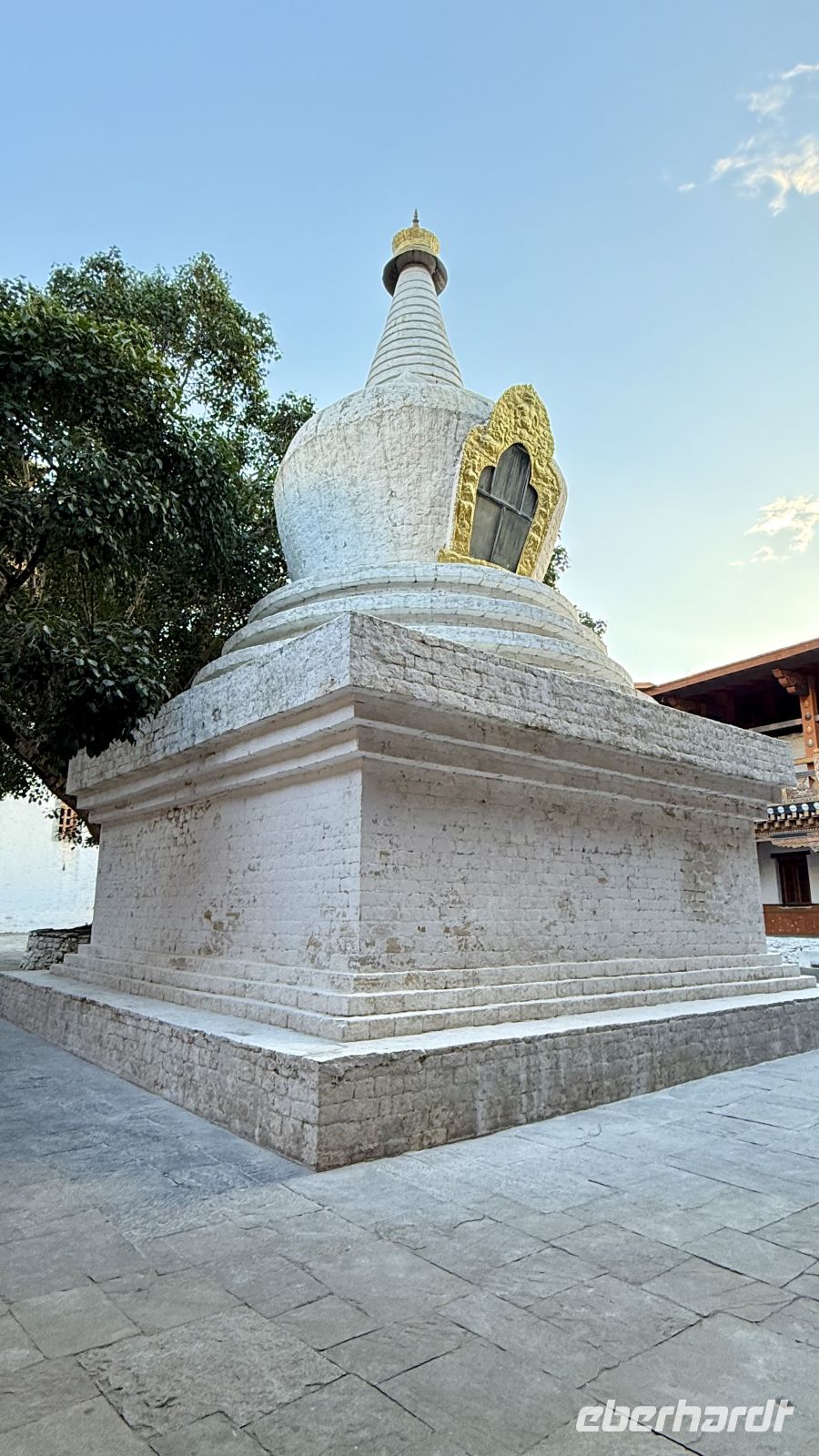 Danach besichtigten wir die Erinnerungschörte, eine buddhistische Gedenkstätte, die den Opfern verschiedener historischer Ereignisse gewidmet ist und gleichzeitig als Ort des Gebets dient. Die Chörte ist kunstvoll verziert, mit bunten Gebetsfahnen geschmückt und strahlt eine ruhige, meditative Atmosphäre aus, die uns tief berührte.