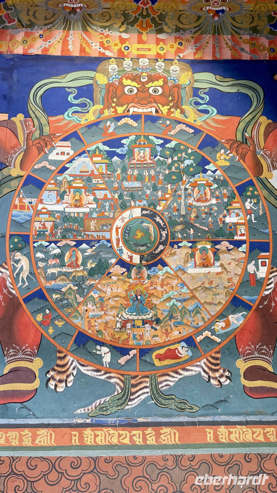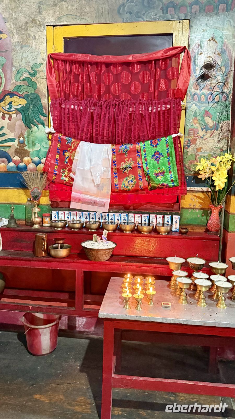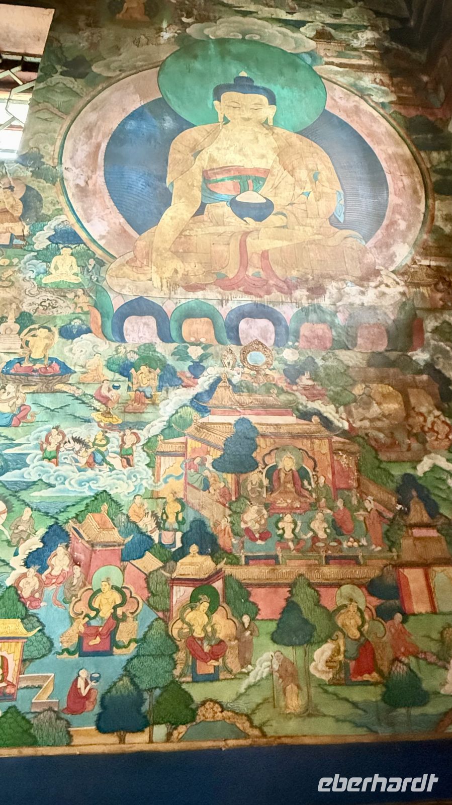Danach besichtigten wir die Erinnerungschörte, eine buddhistische Gedenkstätte, die den Opfern verschiedener historischer Ereignisse gewidmet ist und gleichzeitig als Ort des Gebets dient. Die Chörte ist kunstvoll verziert, mit bunten Gebetsfahnen geschmückt und strahlt eine ruhige, meditative Atmosphäre aus, die uns tief berührte.