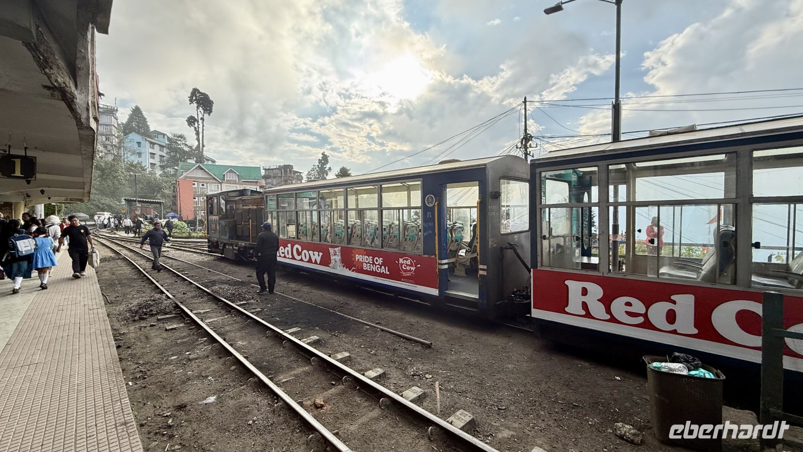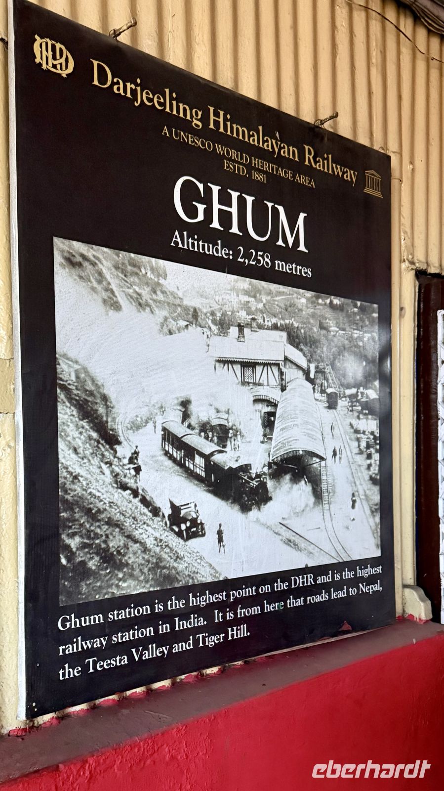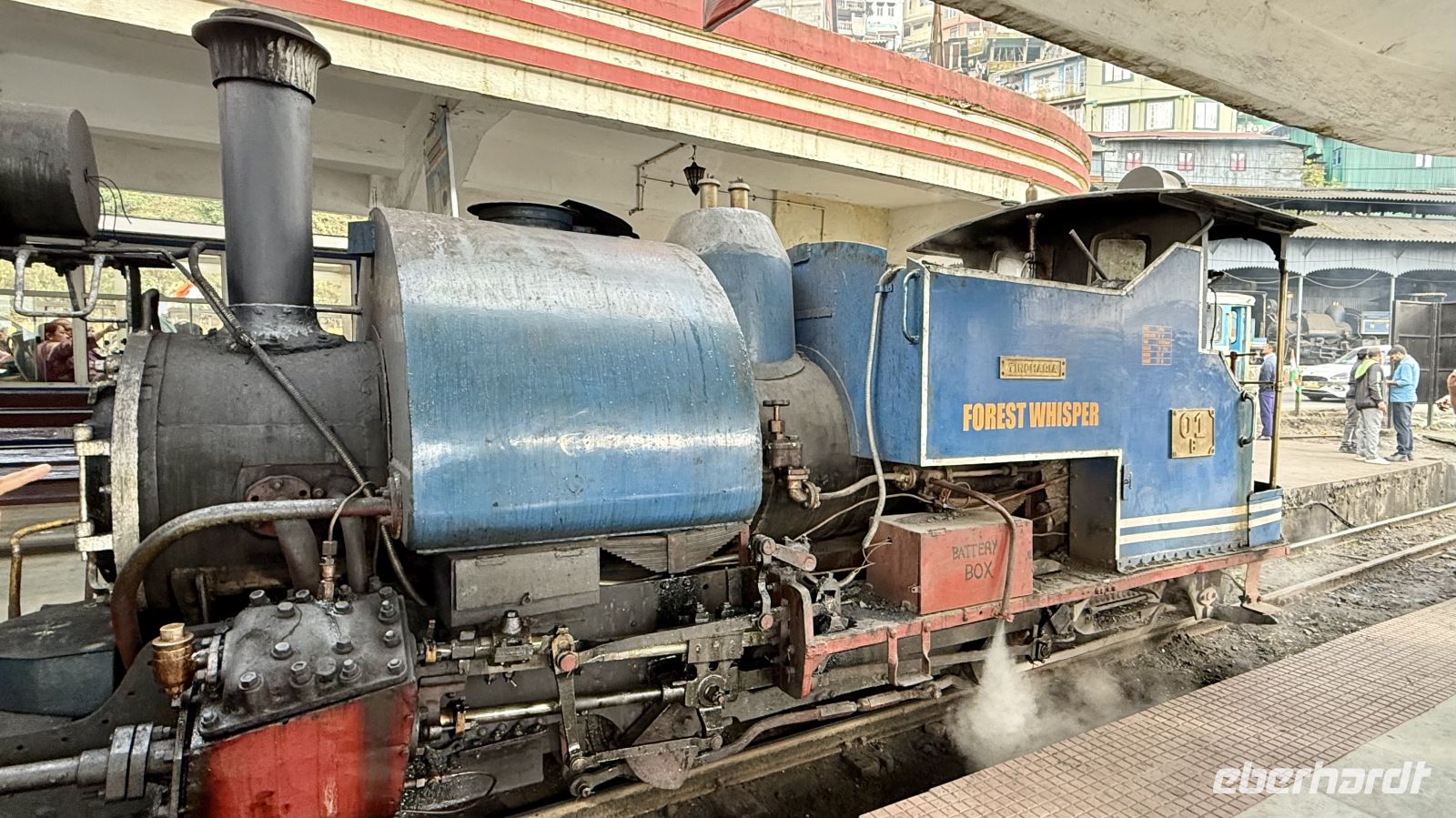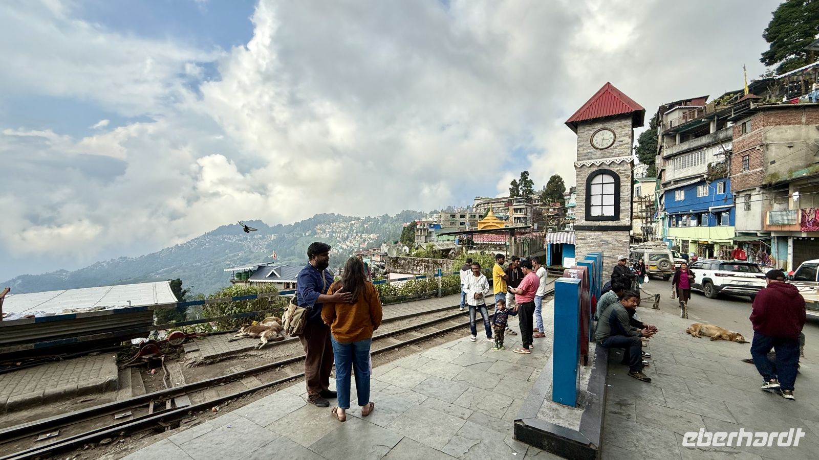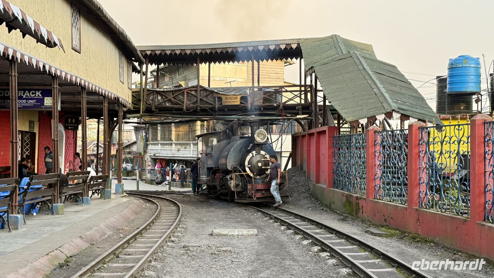 Am Nachmittag erwartete uns ein weiteres Highlight: eine Fahrt mit dem Darjeeling Himalayan Railway, auch bekannt als Toy Train, nach Ghum. Diese historische Schmalspurbahn wurde bereits im Jahr 1881 eröffnet und zählt heute zum UNESCO-Weltkulturerbe. Die Zugfahrt war ein echtes Erlebnis – der kleine blaue Dampfzug schlängelte sich gemächlich durch die engen Kurven und bot herrliche Ausblicke auf die grünen Berghänge und die kleinen Dörfer entlang der Strecke. Ghum ist mit rund 2.258 Metern die höchstgelegene Bahnstation Indiens.