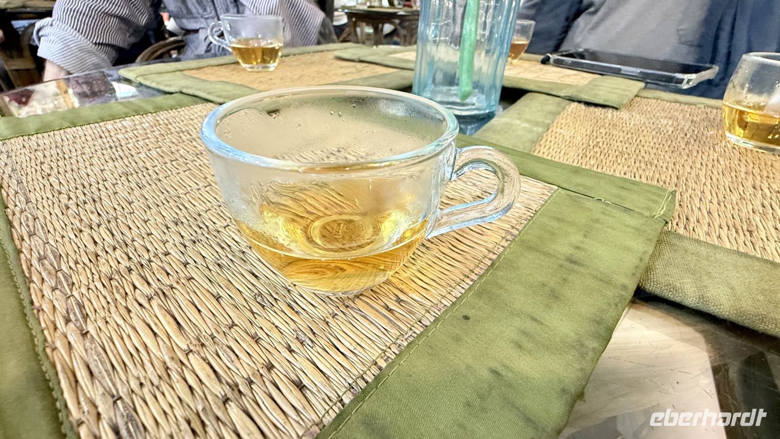 Zum krönenden Abschluss des Tages nahmen wir an einer Teezeremonie teil. Dabei probierten wir verschiedene Sorten von Darjeeling-Tee – von der First Flush (der ersten, besonders feinen Ernte im Frühjahr) über die Second Flush bis hin zu kräftigeren Sommertees. Wir lernten, dass sich die Geschmacksnuancen je nach Erntezeit, Höhenlage und Verarbeitung deutlich unterscheiden. Die Zeremonie selbst war ruhig und achtsam gestaltet – ein echtes Sinneserlebnis für Duft, Geschmack und Atmosphäre.