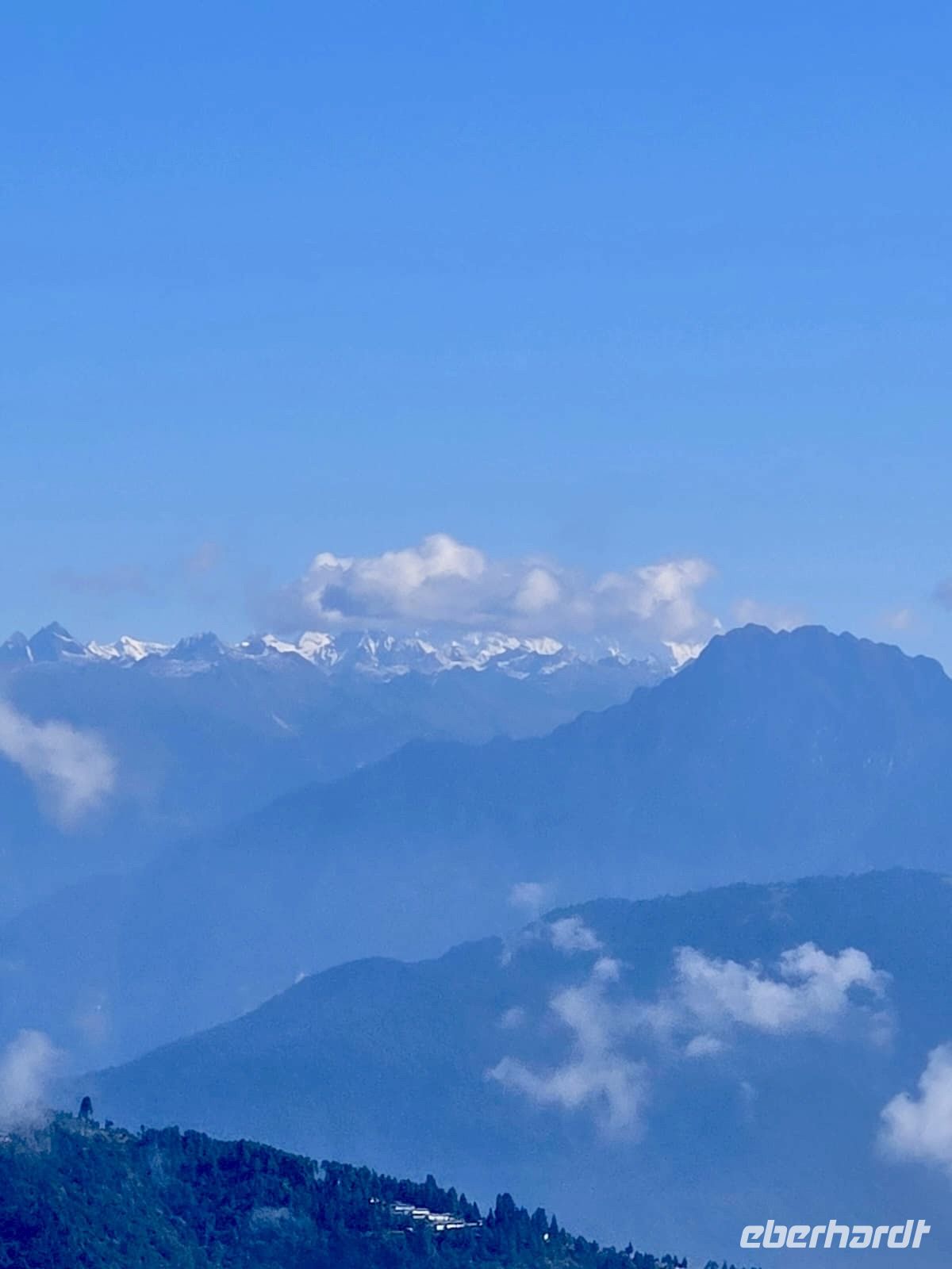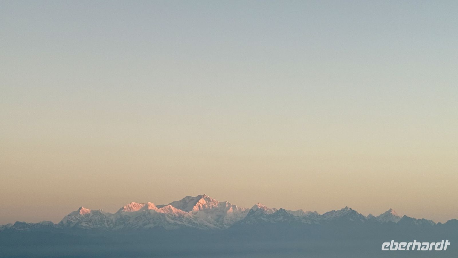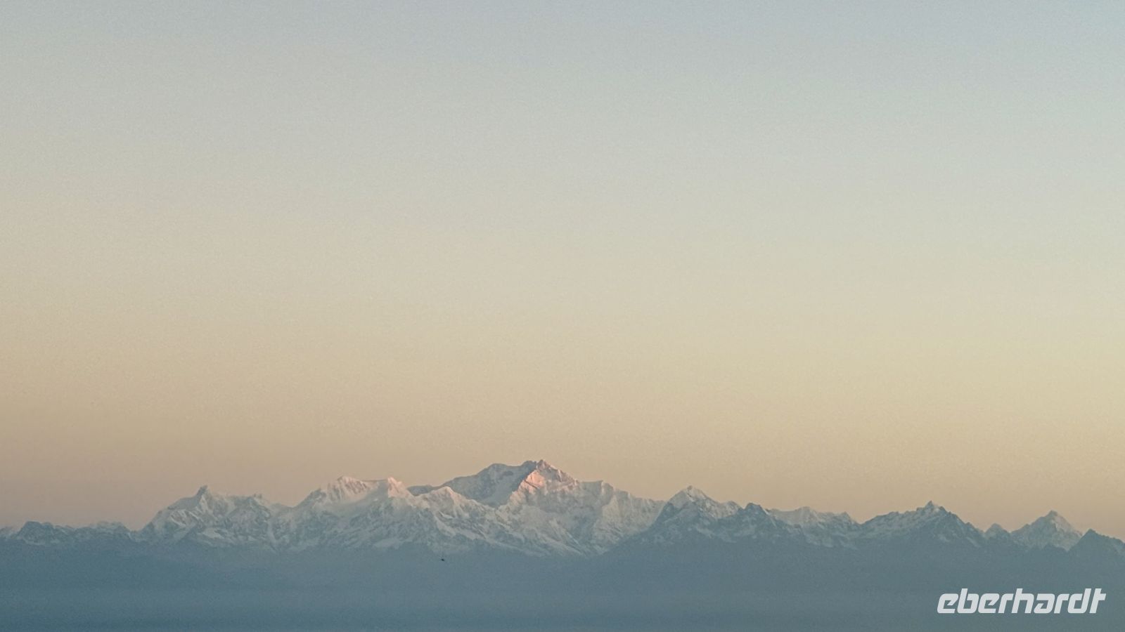 Besonders faszinierte uns der Kangchenjunga, mit etwa 8.586 Metern der dritthöchste Berg der Erde nach dem Mount Everest und dem K2. Er liegt an der Grenze zwischen Nepal und dem indischen Bundesstaat Sikkim und ist für viele Menschen der Region ein heiliger Berg. Der Name „Kangchenjunga“ bedeutet in der tibetischen Sprache „Die fünf Schätze des großen Schnees“, was sich auf seine fünf markanten Gipfel bezieht. Aus der Ferne betrachtet soll seine Form einem schlafenden Menschen ähneln – und tatsächlich konnte man diese Konturen mit etwas Fantasie gut erkennen.