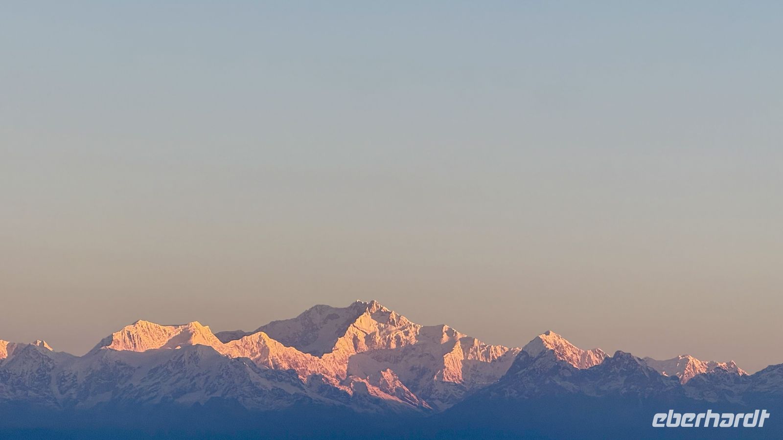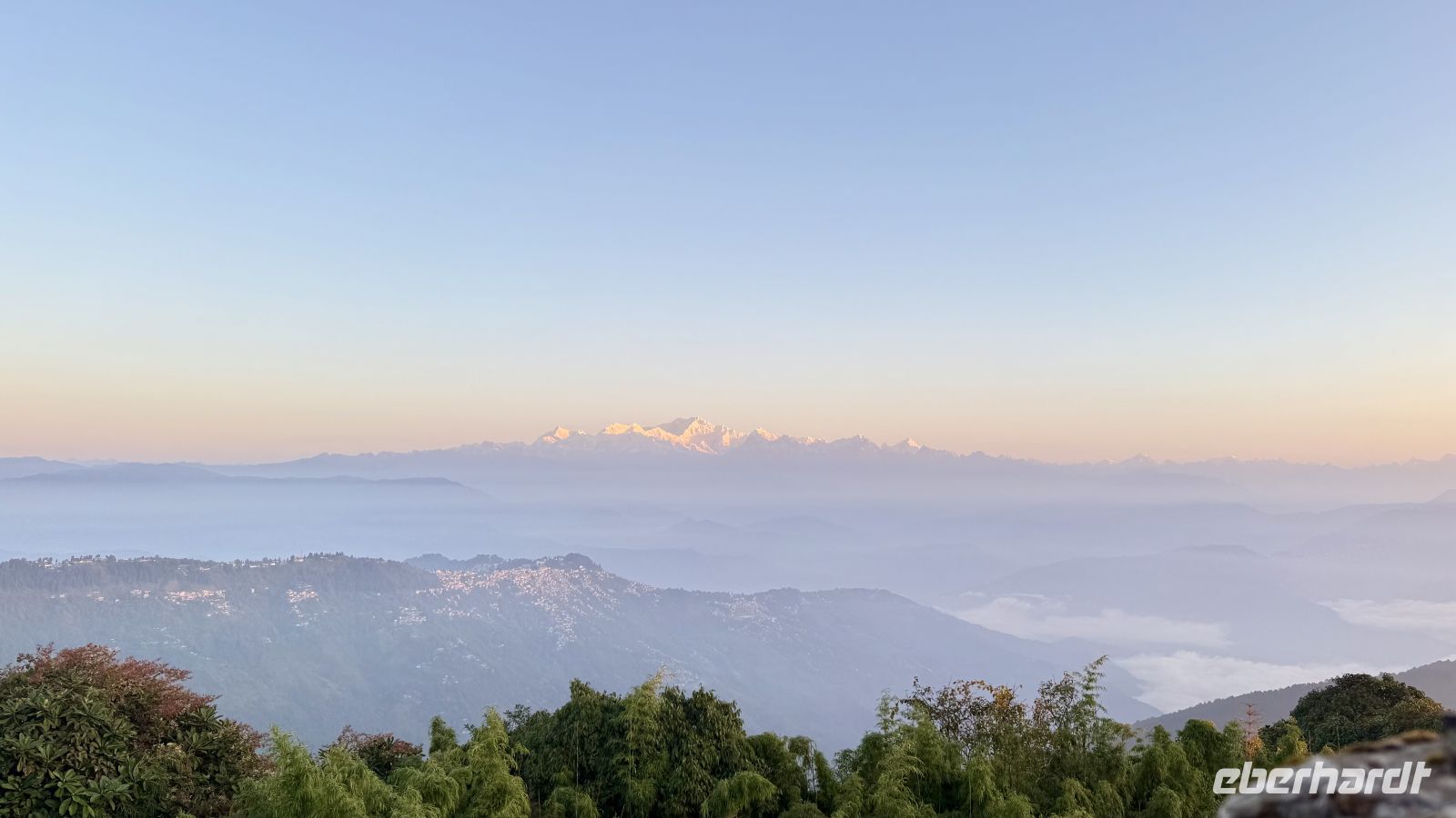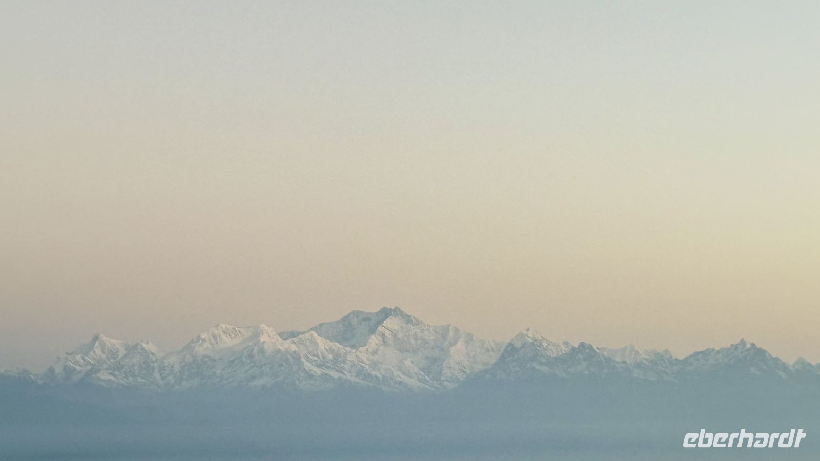 Besonders faszinierte uns der Kangchenjunga, mit etwa 8.586 Metern der dritthöchste Berg der Erde nach dem Mount Everest und dem K2. Er liegt an der Grenze zwischen Nepal und dem indischen Bundesstaat Sikkim und ist für viele Menschen der Region ein heiliger Berg. Der Name „Kangchenjunga“ bedeutet in der tibetischen Sprache „Die fünf Schätze des großen Schnees“, was sich auf seine fünf markanten Gipfel bezieht. Aus der Ferne betrachtet soll seine Form einem schlafenden Menschen ähneln – und tatsächlich konnte man diese Konturen mit etwas Fantasie gut erkennen.