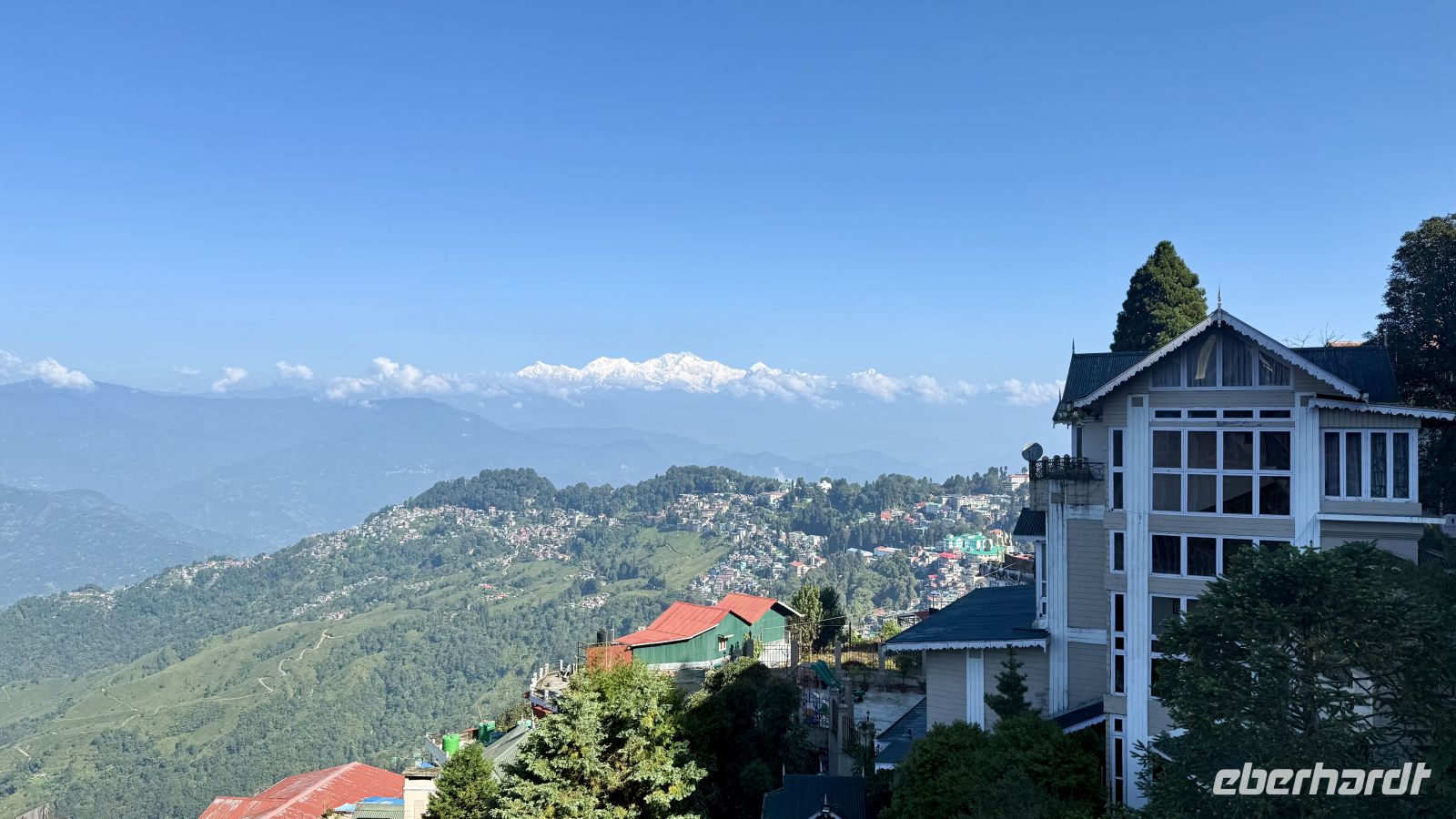 Darjeeling liegt auf rund 2.000 Metern Höhe in den Ausläufern des Himalaya und wird wegen seiner kolonialen Architektur, seines milden Klimas und natürlich wegen seines weltberühmten Tees auch als „Königin der Hügelstationen“ bezeichnet. Ursprünglich war der Ort während der britischen Kolonialzeit ein Erholungsort für englische Beamte. Heute ist Darjeeling eine lebendige Kleinstadt mit einem bunten Mix aus indischer, nepalesischer und tibetischer Kultur.
