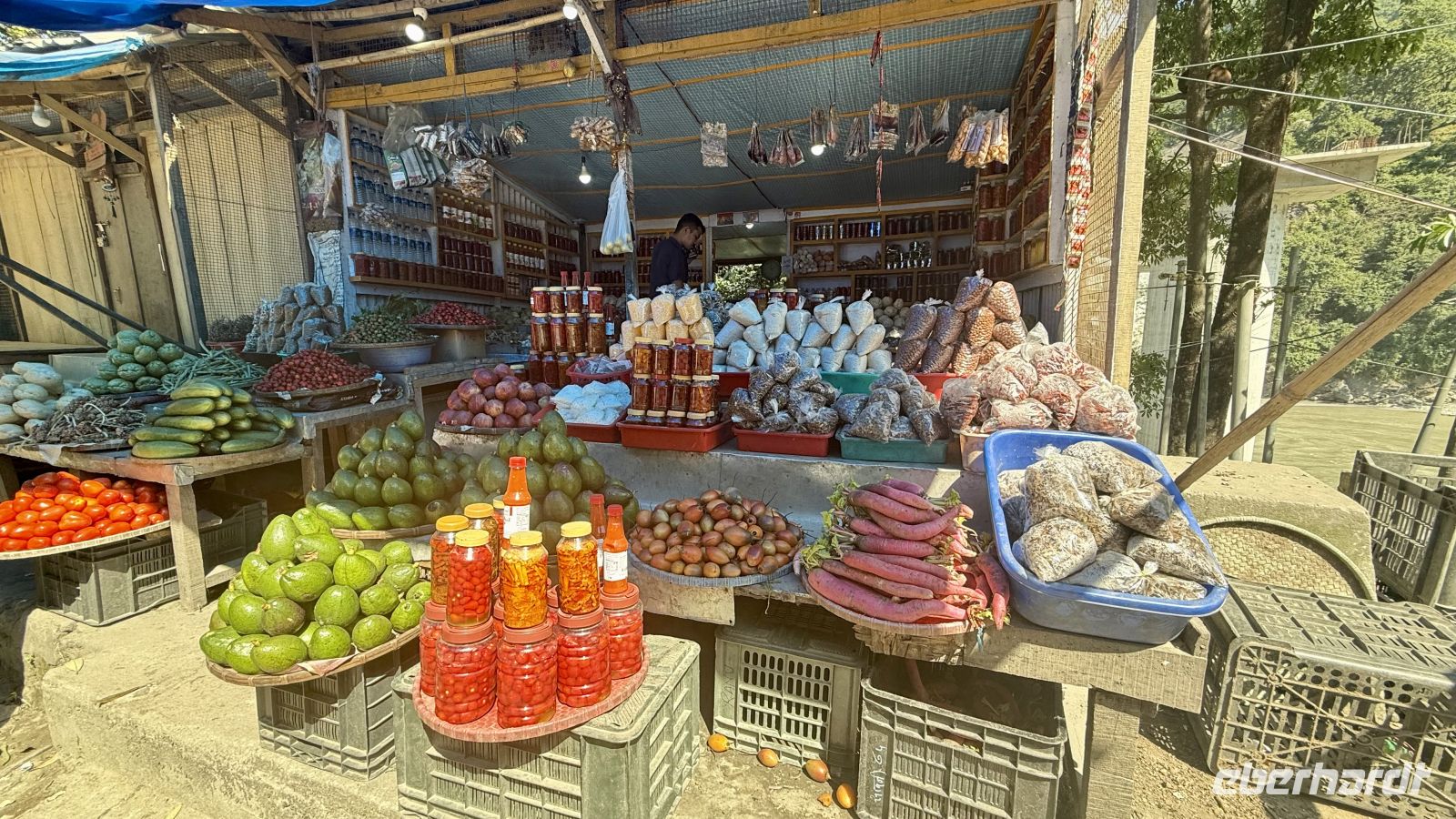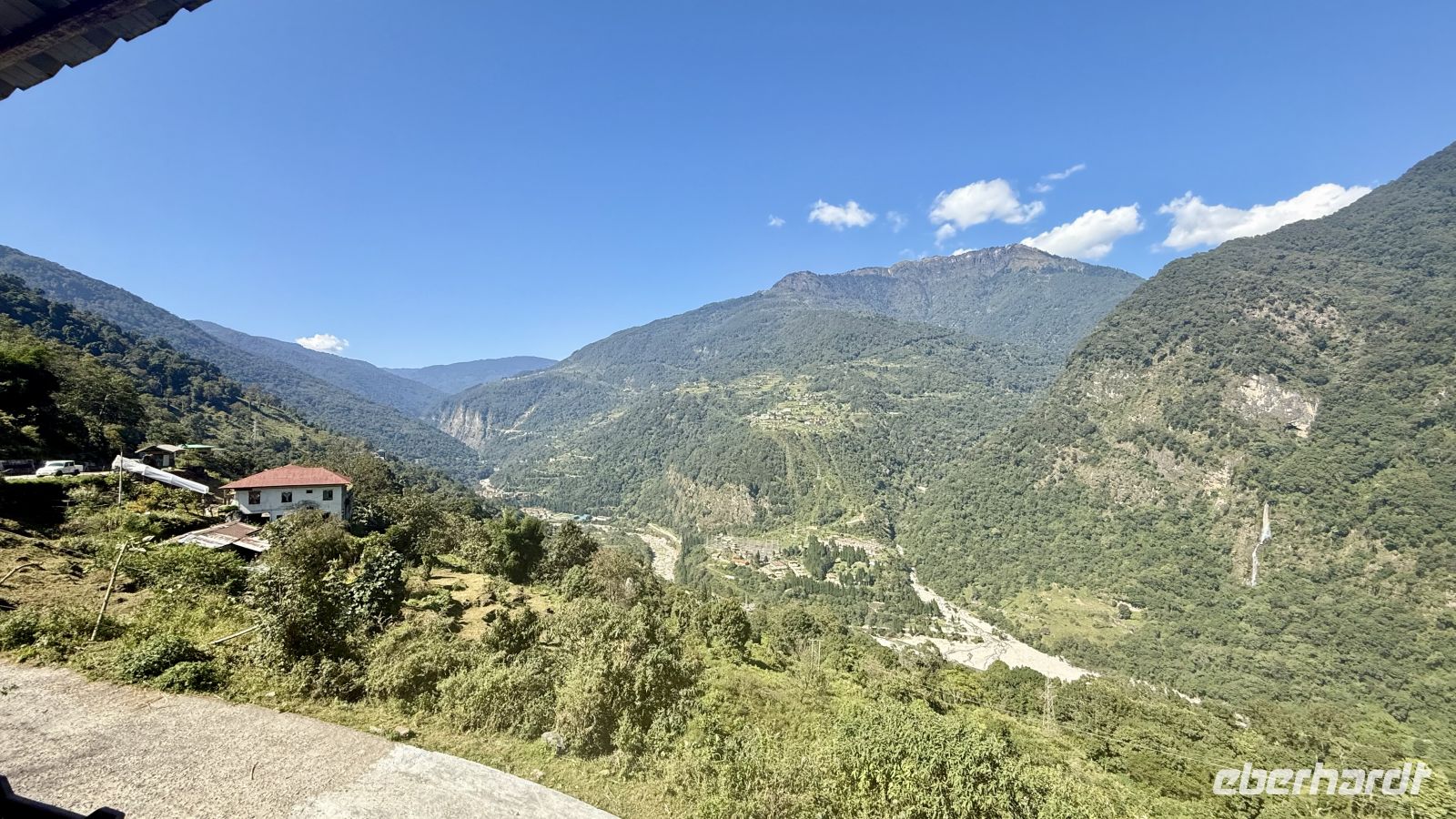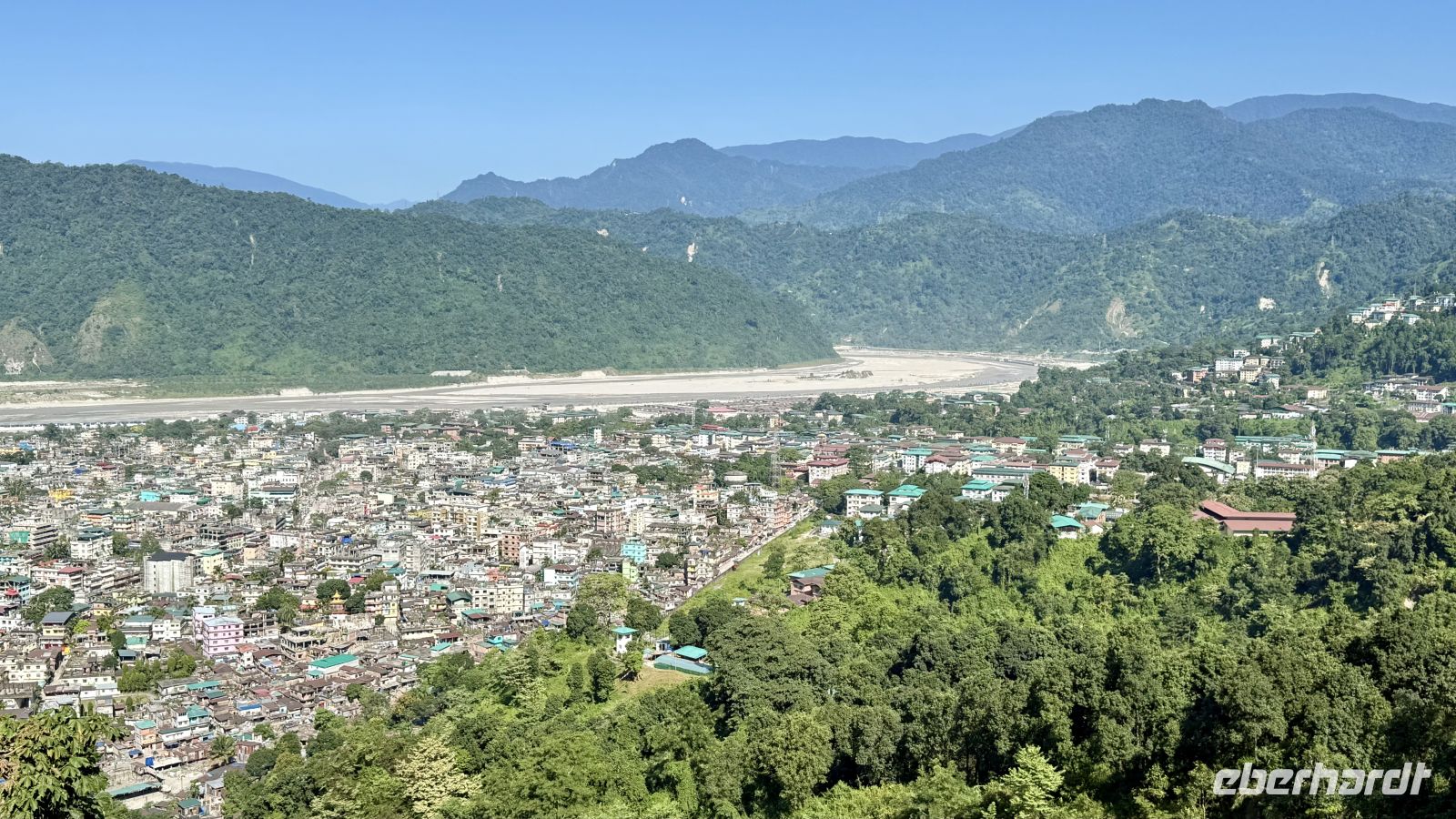 Außerdem passierten wir das kleine Örtchen Rangpo, das an der Grenze zwischen Indien und Bhutan liegt. Rangpo ist ein wichtiger Grenzposten und zugleich ein lebendiger Marktort, an dem lokale Händler Obst, Gemüse und handgefertigte Waren anbieten. Die Häuser hier sind meist niedrig und traditionell gebaut, die Straßen voller geschäftiger Menschen und bunter Fahrzeuge.