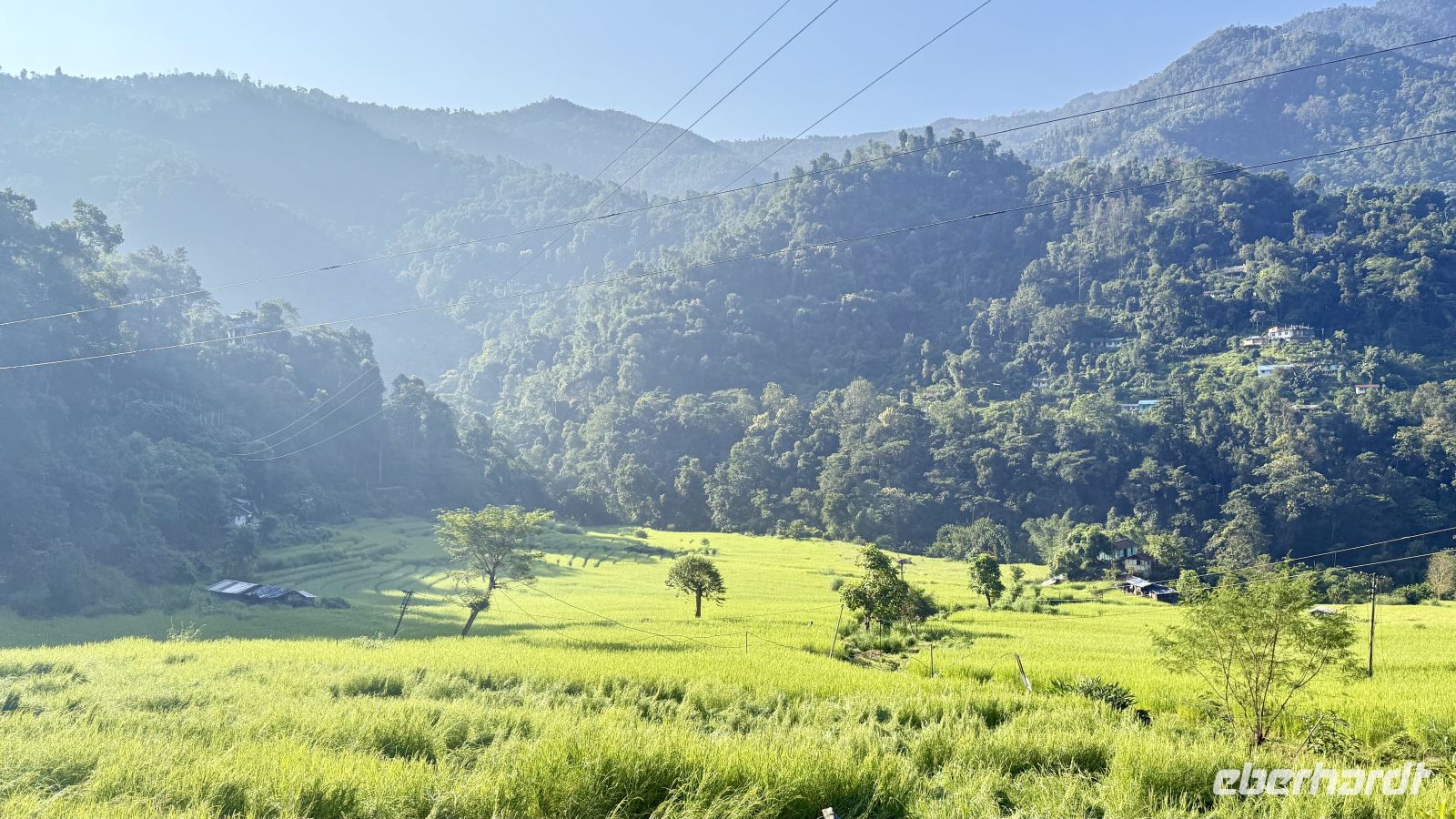 Heute fuhren wir weiter entlang des Rangit-Flusses, der durch das nordöstliche Indien und die Ausläufer des Himalaya fließt. Seine türkisblauen Wasser schlängeln sich durch tiefe Täler und bieten immer wieder malerische Fotomotive. Später führte uns die Straße durch das Monksong Valley, ein fruchtbares Tal, das von kleinen Dörfern, Teeplantagen und üppigen Wäldern geprägt ist. Hier konnten wir die Ruhe und die natürliche Schönheit der Region in vollen Zügen genießen.