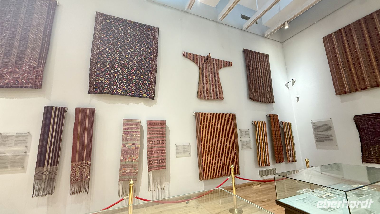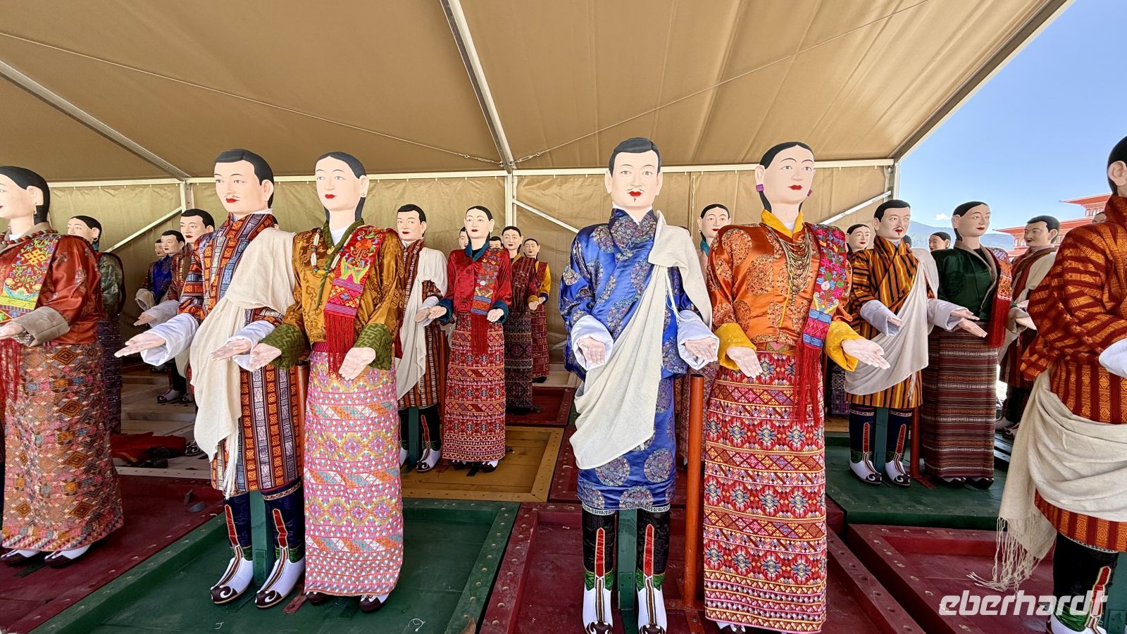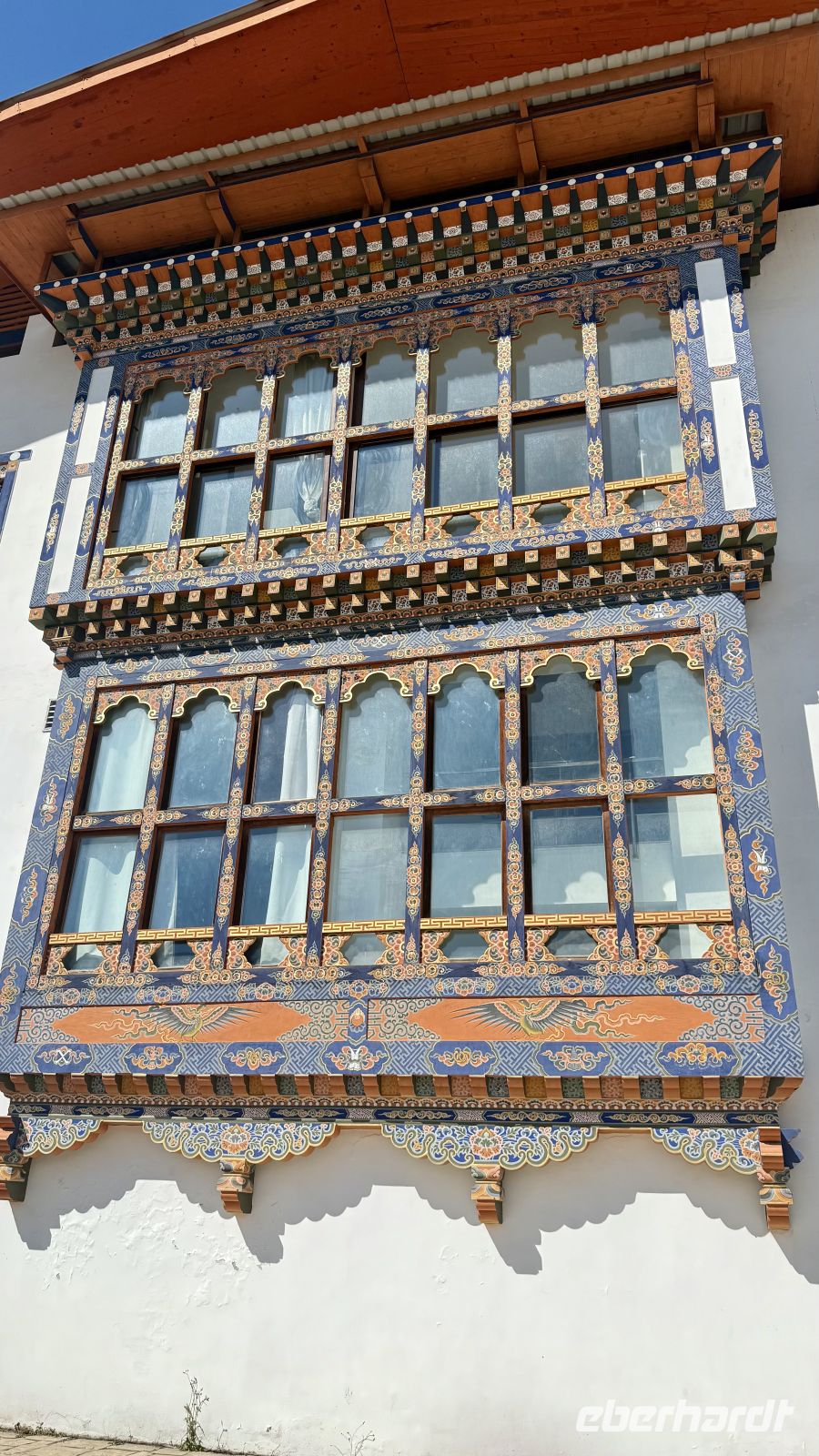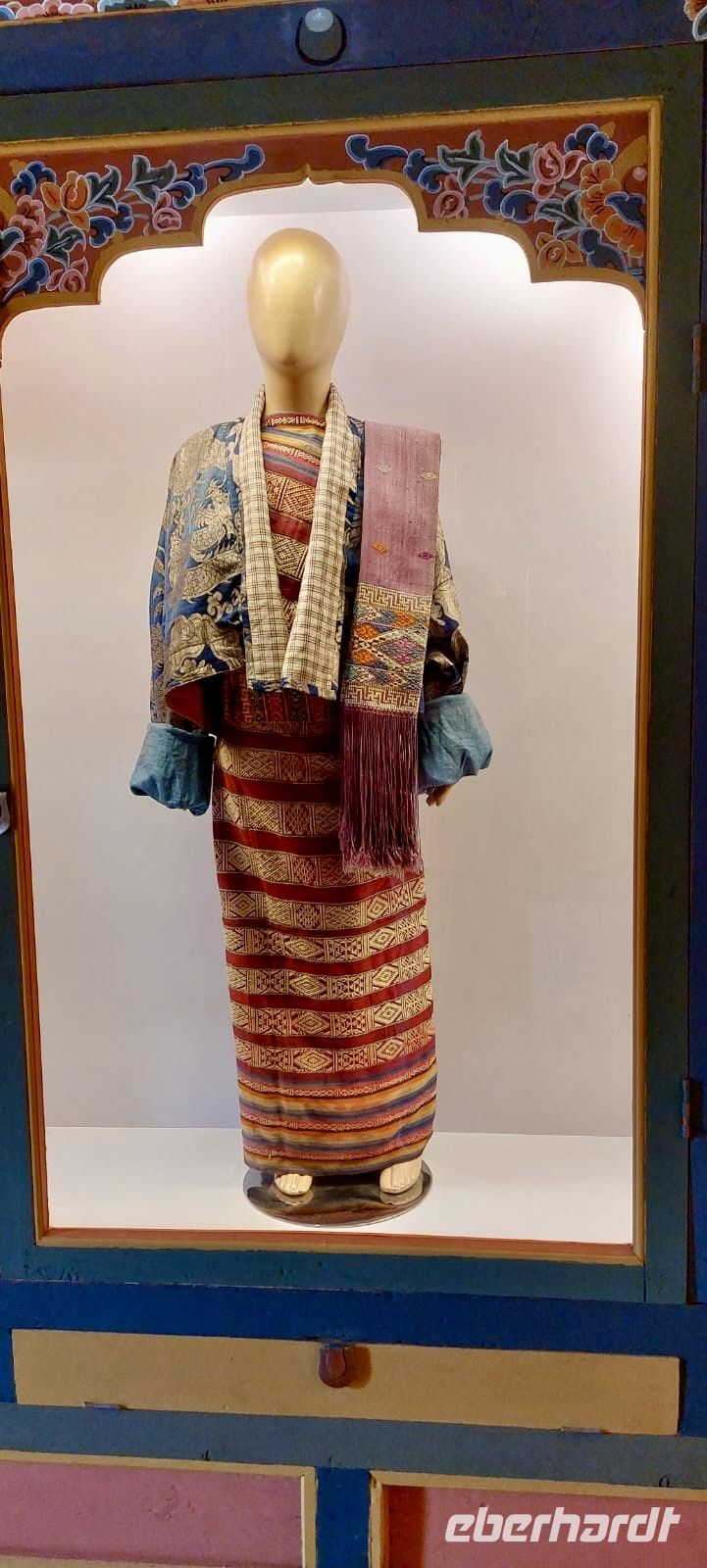 Unser nächstes Ziel war das Textilmuseum, in dem die Besucher alles über die bhutanische Textilkunst erfahren können. Bhutanische Stoffe sind weltberühmt für ihre leuchtenden Farben, feinen Muster und aufwendigen Webtechniken. Besonders beeindruckend war die Ausstellung von traditionellen Kleidungsstücken, Webstühlen und handgefertigten Seidenstoffen, die die Kunstfertigkeit und Kreativität der Handwerker eindrucksvoll demonstrieren.