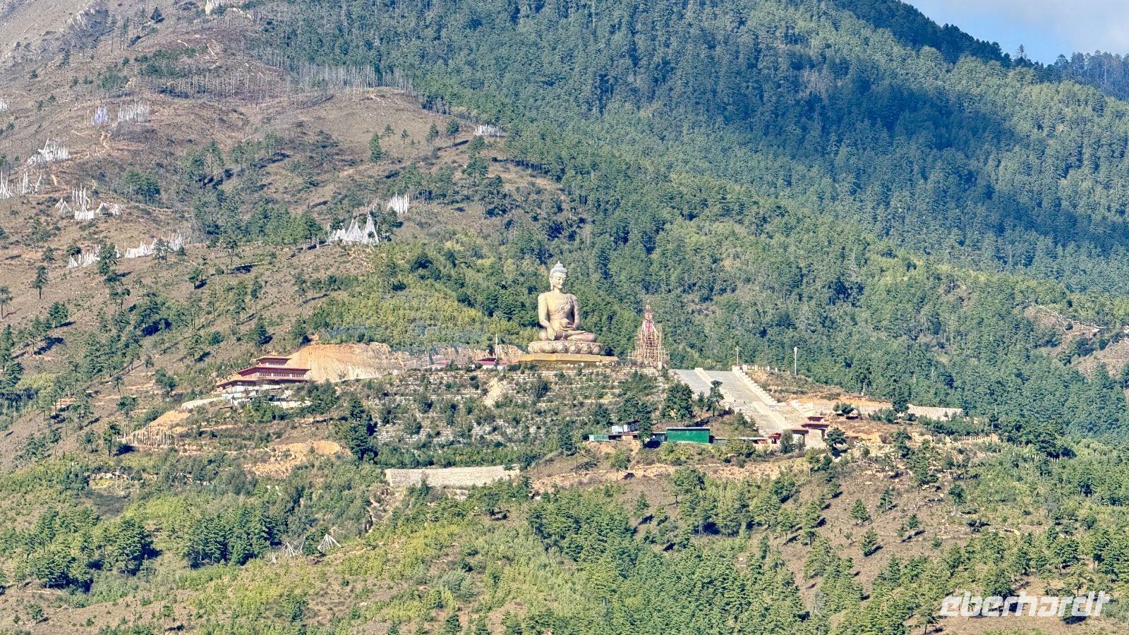 Am heutigen Tag starteten wir unseren Ausflug mit einem Besuch des Buddha Point, auch Kuensel Phodrang genannt, und des angrenzenden Tempels. Der Buddha Point ist eine der bekanntesten Sehenswürdigkeiten von Thimphu. Hier thront eine riesige, goldene Buddha-Statue auf einem Hügel, die über 50 Meter hoch ist und auf das Tal hinabblickt. Umgeben ist sie von einer friedlichen Gartenanlage, die zum Verweilen und Meditieren einlädt. Der Ort vermittelt Ruhe und Spiritualität, und der Blick auf die umliegenden Berge und die Stadt ist schlicht atemberaubend.