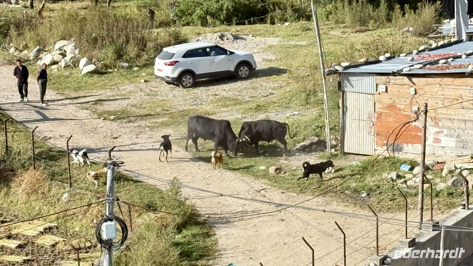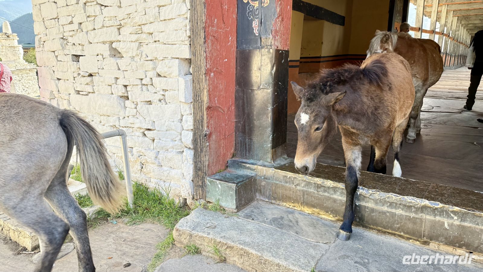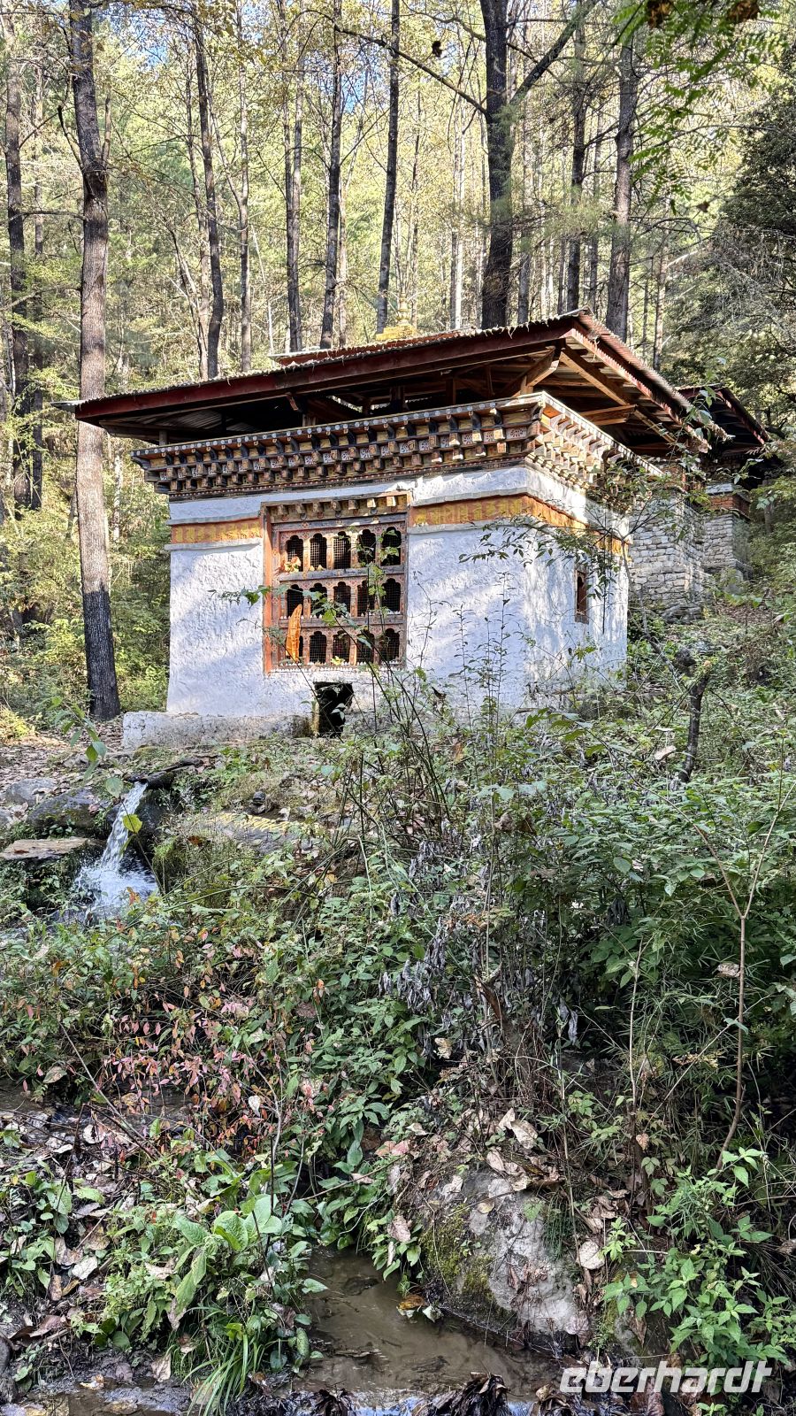 Heute lag noch einmal eine lange Fahrt vor uns, doch unterwegs machten wir immer wieder kurze Stopps, um die Landschaft zu genießen und neue Eindrücke zu sammeln. Unser erster Halt führte uns zum Kharbandi Gompa Kloster, einem historischen buddhistischen Kloster in Bhutan. Das Kloster ist bekannt für seine traditionelle Architektur, die kunstvoll bemalten Wände und die friedliche Atmosphäre. Hier leben Mönche, die täglich ihre Gebete verrichten und die Besucher freundlich empfangen. Wir nutzten die Gelegenheit, um einen kleinen Spaziergang zu machen und die atemberaubende Aussicht über die umliegenden Hügel und Täler zu genießen.