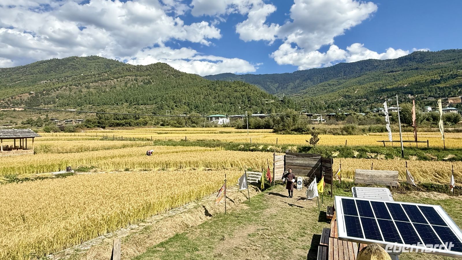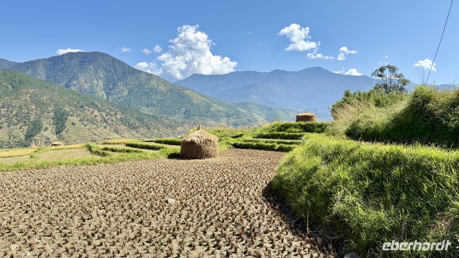 Heute ließen wir Punakha hinter uns und setzten unsere Reise in Richtung Paro fort. Paro liegt in einem der schönsten Täler Bhutans auf etwa 2.200 Metern Höhe und ist bekannt für seine traditionelle Architektur, seine malerische Landschaft und die Nähe zu einem der heiligsten Orte des Landes – dem berühmten Tigernest-Kloster. Das Paro-Tal wird von terrassenförmigen Reisfeldern, Apfelplantagen und Pinienwäldern geprägt und ist von einer besonderen Ruhe und Harmonie erfüllt.