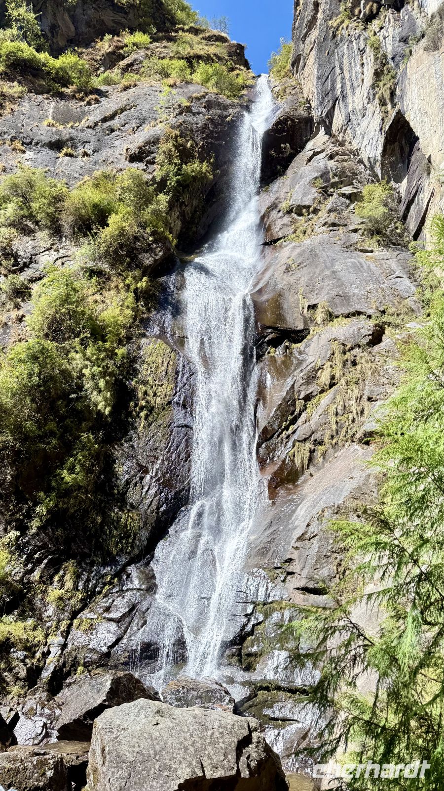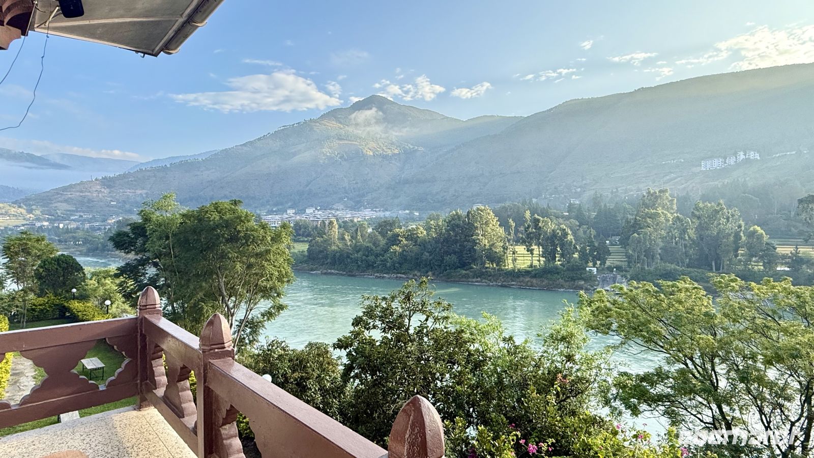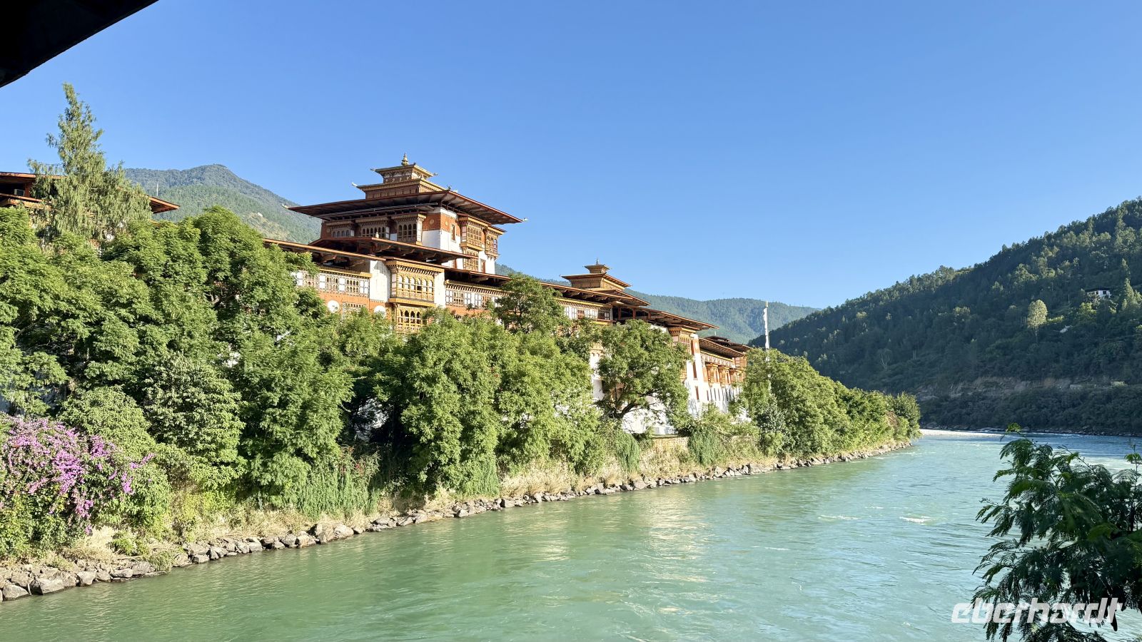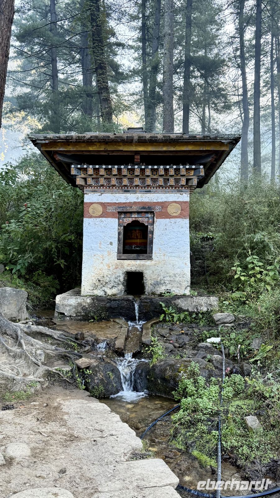 Nach der Besichtigung machten wir einen kurzen Spaziergang über die Brücke des Wangchu-Flusses. Der Wangchu ist einer der wichtigsten Flüsse Bhutans und fließt von den Himalaya-Gletschern bis hinunter in die Täler. Seine klaren, türkisblauen Wasserläufe werden zur Bewässerung der Felder genutzt und verleihen der Landschaft eine besondere Frische und Lebendigkeit.
