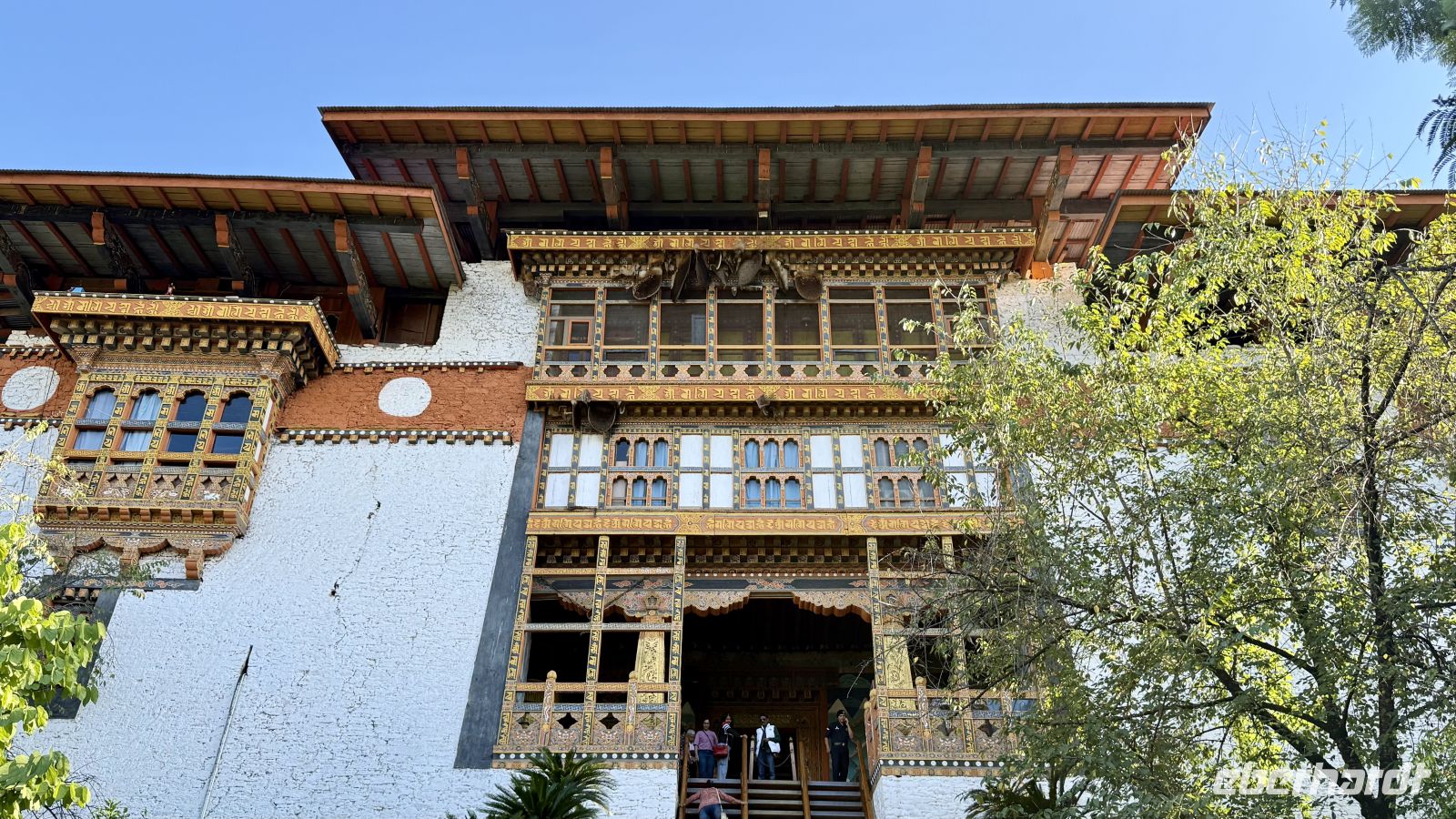 Den Abschluss des Tages bildete der beeindruckende Tashichhodzong, das administrative und religiöse Zentrum von Thimphu. Der Dzong ist eine massive Festung mit weißen Mauern, goldenen Verzierungen und einem traditionellen bhutanischen Dach. Hier residiert der König Bhutans offiziell, und der Dzong beherbergt gleichzeitig die wichtigsten Regierungsbüros sowie Mönche, die dort leben und beten. Besonders am Abend, als die untergehende Sonne die Mauern in warmes Licht tauchte, wirkte der Dzong noch majestätischer und eindrucksvoller als ohnehin schon.