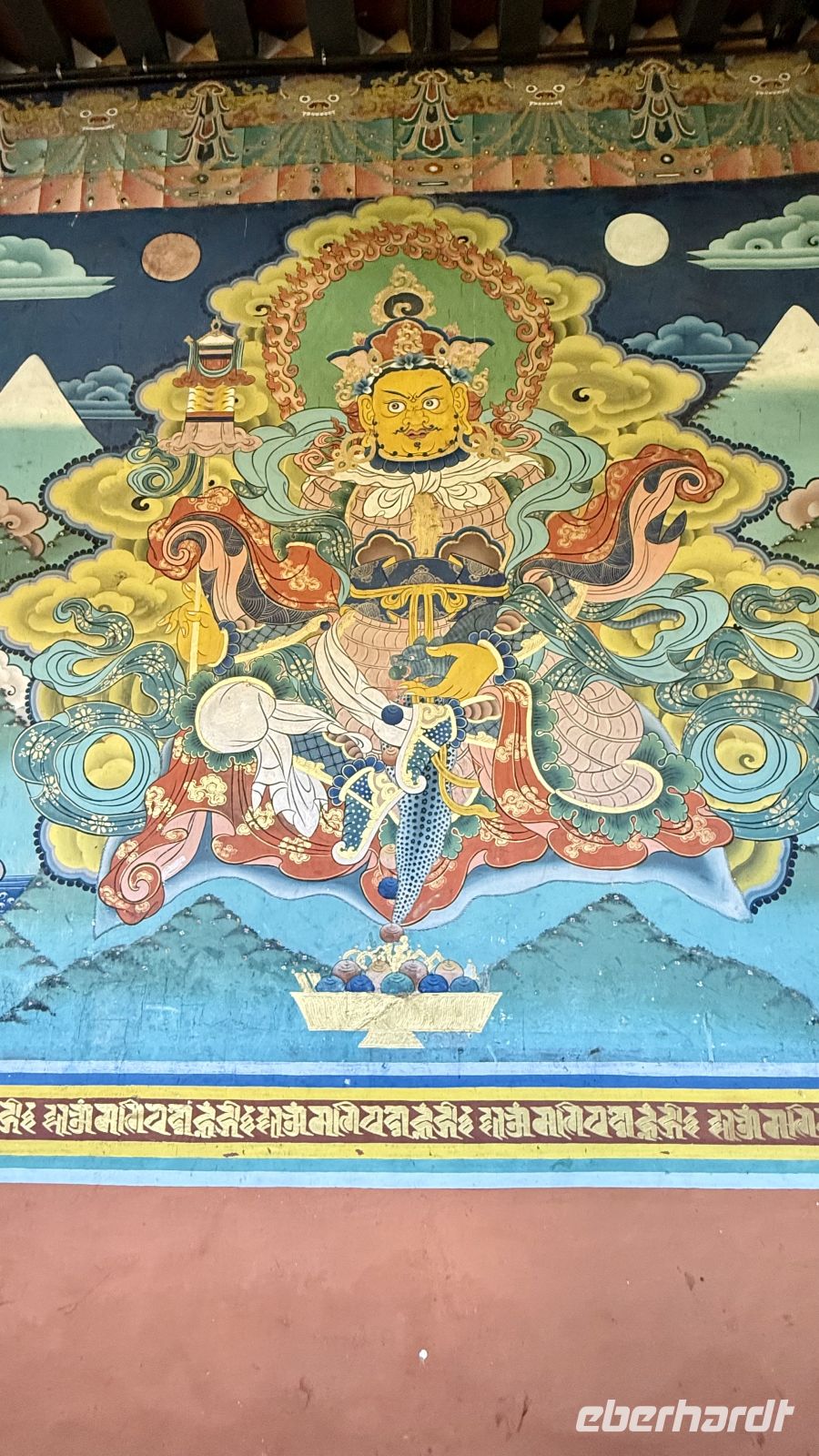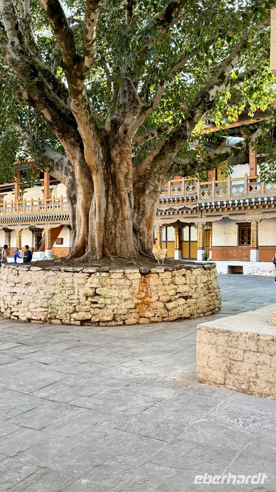 Am Nachmittag besuchten wir das Kyichu Lhakhang, eines der ältesten und bedeutendsten Klöster Bhutans. Es wurde im 7. Jahrhundert vom tibetischen König Songtsen Gampo erbaut, um böse Geister zu bannen und den Buddhismus in Bhutan zu festigen. Der Legende nach gehört es zu 108 Tempeln, die der König in einer einzigen Nacht errichten ließ, um eine Dämonin zu besänftigen, die sich über den Himalaya erstreckte. Das Kloster ist wunderschön erhalten, mit vergoldeten Statuen, alten Wandmalereien und einem heiligen Feigenbaum, der – so heißt es – vom Guru Rinpoche selbst gepflanzt wurde.