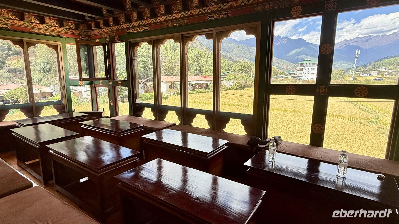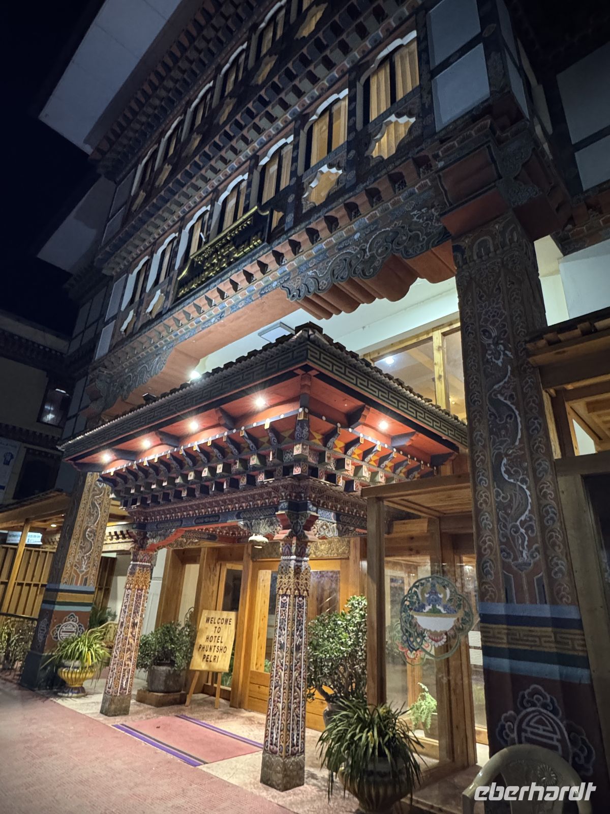 Am Abend kehrten wir schließlich in unser Hotel in Paro zurück, wo uns ein leckeres Abendessen erwartete. Wir ließen den Tag in gemütlicher Runde ausklingen und freuten uns schon auf den kommenden Tag.