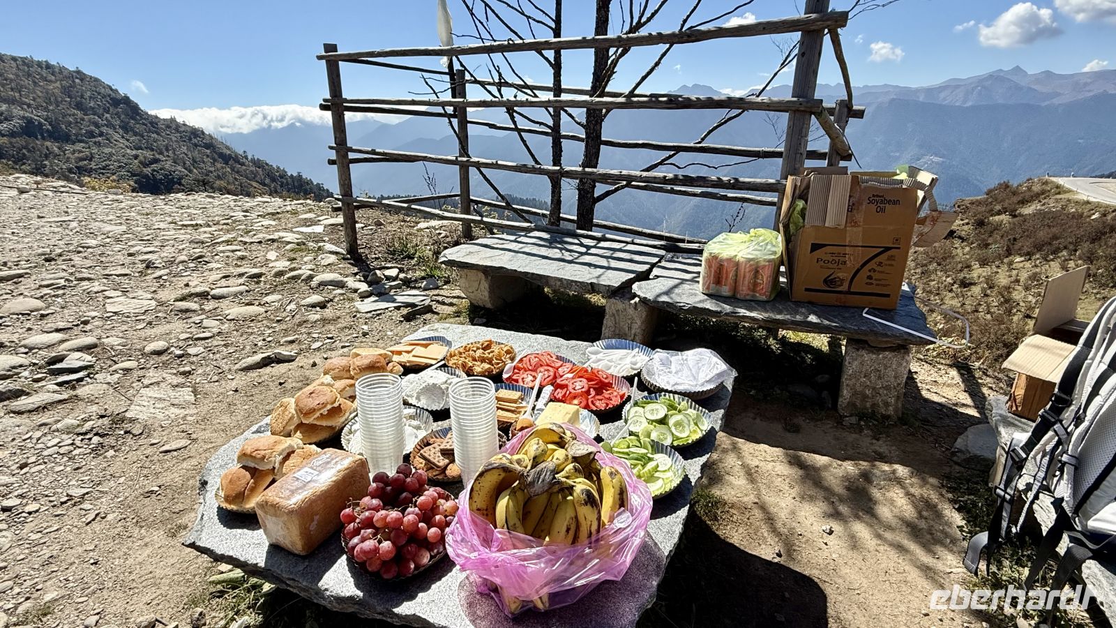 Nach der Wanderung erwartete die Gäste ein liebevoll vorbereitetes Picknick, das für alle ein echtes Highlight war. Mit frischem Obst und Gemüse vom Markt und anderen landestypischen Leckereien genossen wir unser Mahl mitten in der Natur – umgeben von Bergen, kühler Luft und einer fast mystischen Stille.