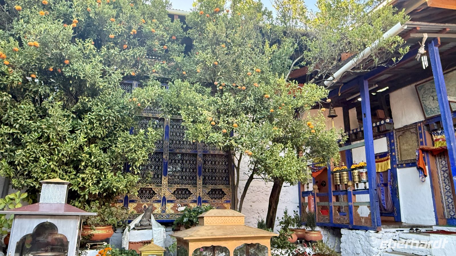 Im Anschluss machten wir uns auf den Weg, um das Kloster des Gelbmützenordens zu besichtigen. Der Gelbmützenorden, auch Gelugpa-Schule genannt, ist eine der bedeutendsten Richtungen des tibetischen Buddhismus und wurde im 15. Jahrhundert von Tsongkhapa gegründet. Der bekannteste Vertreter dieses Ordens ist der Dalai Lama. Das Kloster, das wir besuchten, beeindruckte uns durch seine bunten Gebetsfahnen, kunstvollen Wandmalereien und die friedliche, meditative Atmosphäre. Mönche in safrangelben Roben murmelten ihre Gebete, während der Duft von Räucherwerk durch die Hallen zog – ein Moment der Stille und inneren Ruhe.