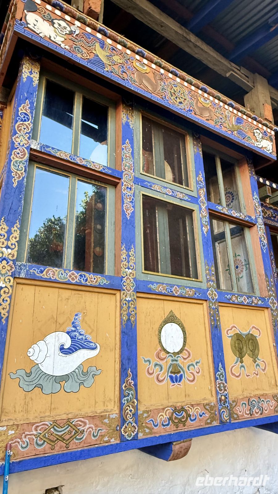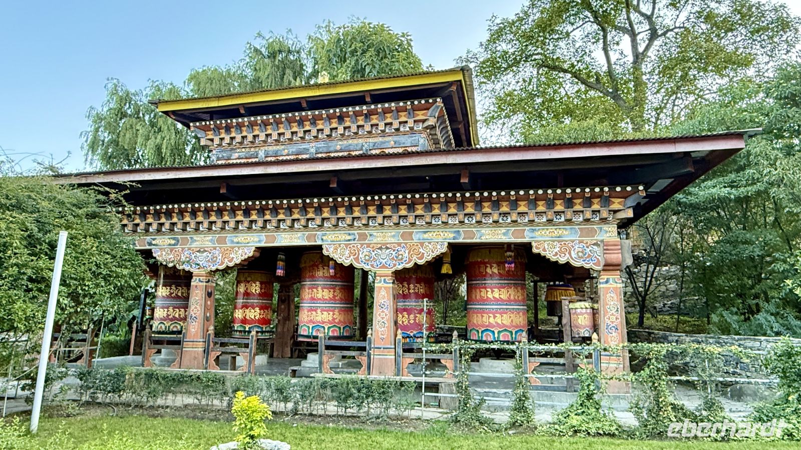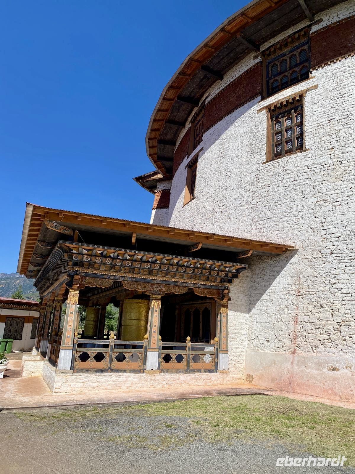 Bevor wir zu Bett gingen, unternahmen wir noch einen kleinen Spaziergang zum Tempel Zangtho Pelri Lhakhang, den wir von außen besichtigten. Dieser Tempel ist ein typisches Beispiel bhutanischer Klosterarchitektur, mit farbenfrohen Verzierungen, geschnitzten Holzelementen und einem kleinen Gebetsrad vor dem Eingang. Er gilt als spirituelles Symbol und Ort des Gebets, an dem Gläubige Schutz und Segen suchen.