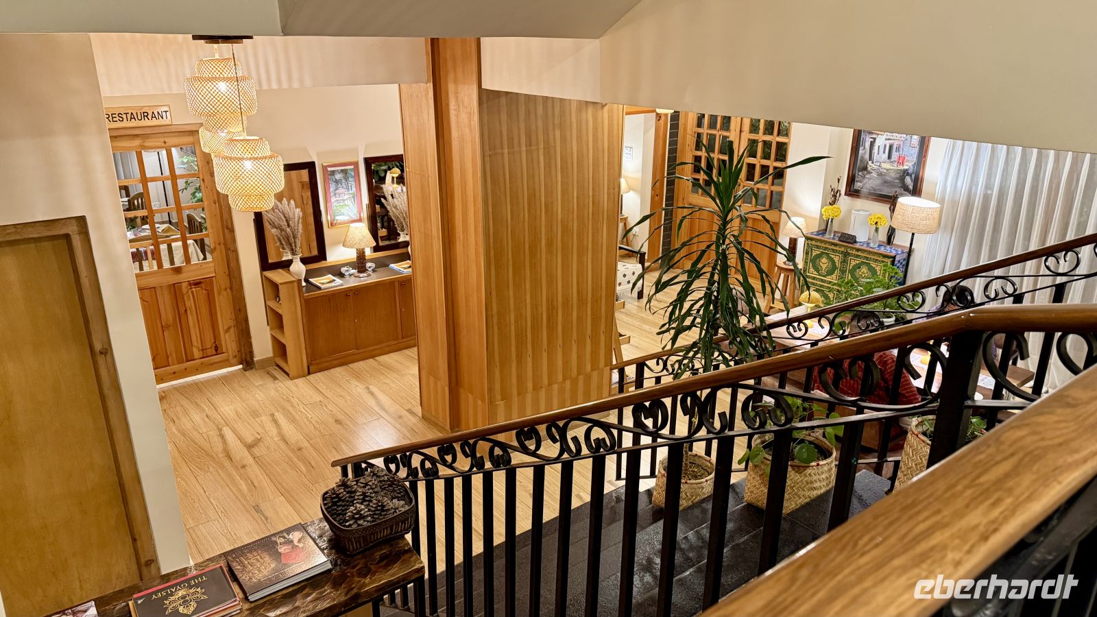 Am Abend erreichten wir schließlich unser wunderschön gelegenes Hotel mit Blick auf die umliegenden Hügel. Nach einem köstlichen Abendessen wurden wir sogar persönlich vom Hotelchef begrüßt, der uns erzählte, dass er dem Buddhismus angehört. Seine ruhige und freundliche Art spiegelte die spirituelle Gelassenheit dieser Religion wider.