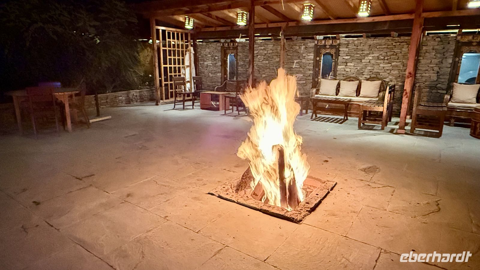 Am Abend genossen wir im Hotel ein köstliches Abendessen. Danach erwartete uns noch eine kleine Überraschung: Im Hotel wurde ein Lagerfeuer entzündet. In geselliger Runde saßen wir unter dem klaren Sternenhimmel, tranken einheimische Getränke und ließen den Tag voller schöner Eindrücke in gemütlicher Atmosphäre ausklingen. Es war ein Abend voller Wärme, Lachen und wunderbarer Gespräche – ein perfekter Abschluss vor dem großen Abenteuer, das uns am nächsten Tag erwartete.